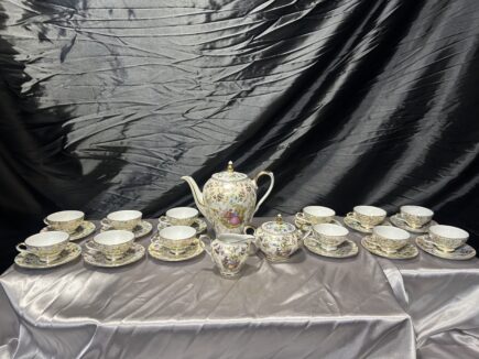 Zestaw porcelany Bavaria Germany – 12 filiżanek z podstawkami, dzbanek, cukiernica i mlecznik – złocona dekoracja, styl klasyczny
