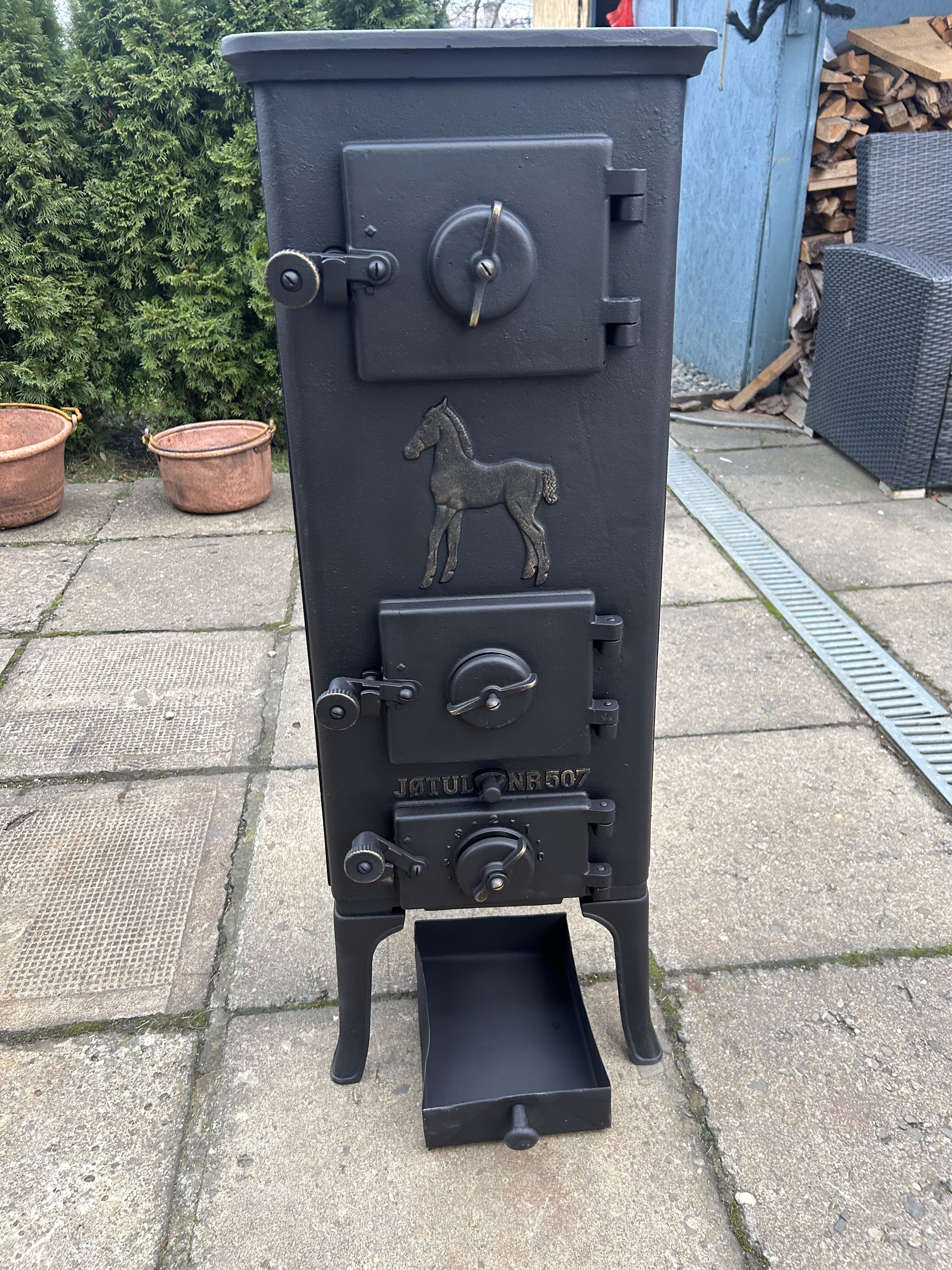 Piec żeliwny Jotul Drammens Jernstøberi nr 153 – klasyczny norweski model w stylu secesyjnym