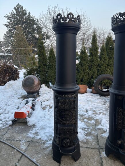 Piec żeliwny Jotul Bærums Verk nr 157 – majestatyczny norweski model z dekoracyjną koroną