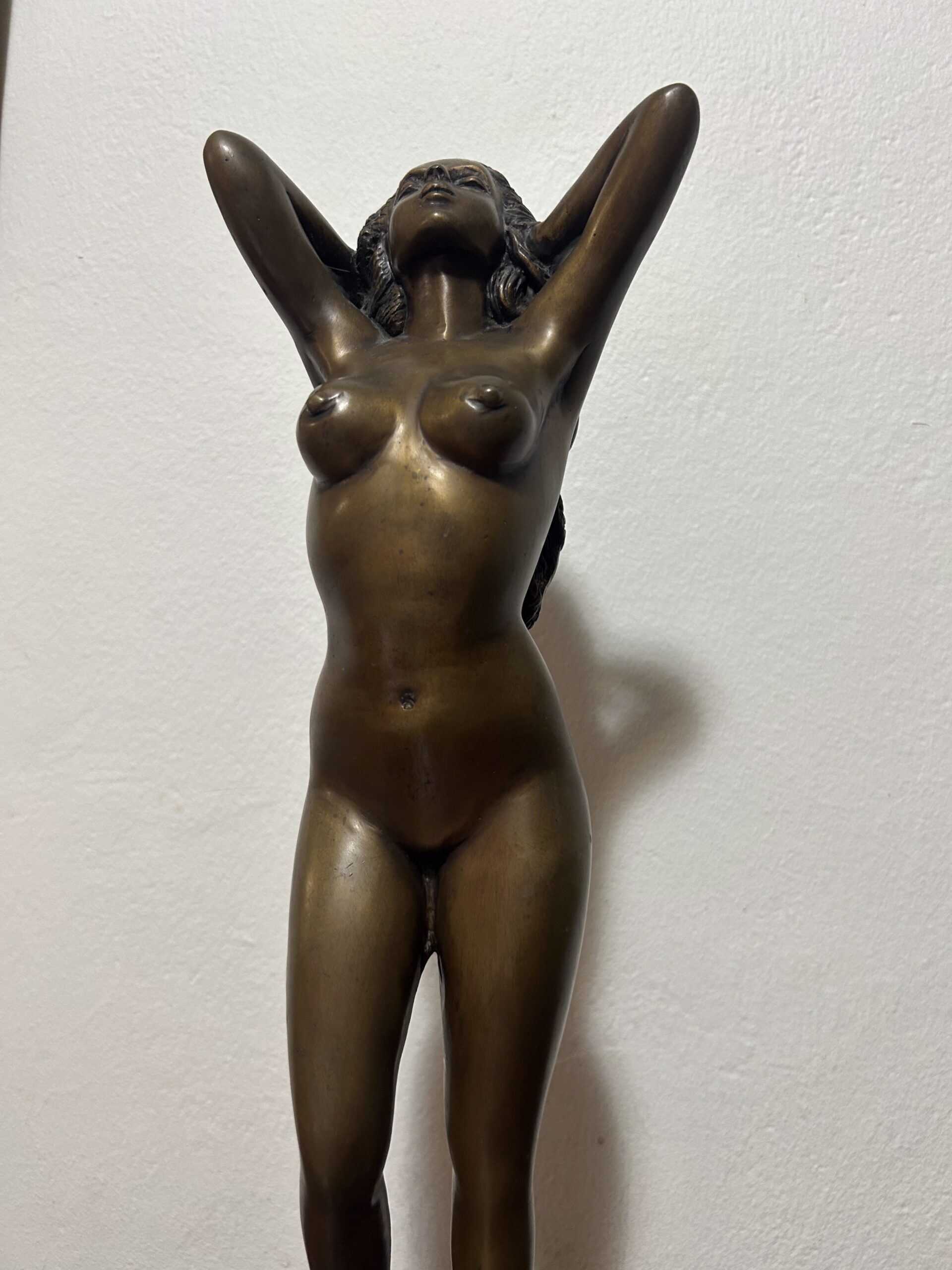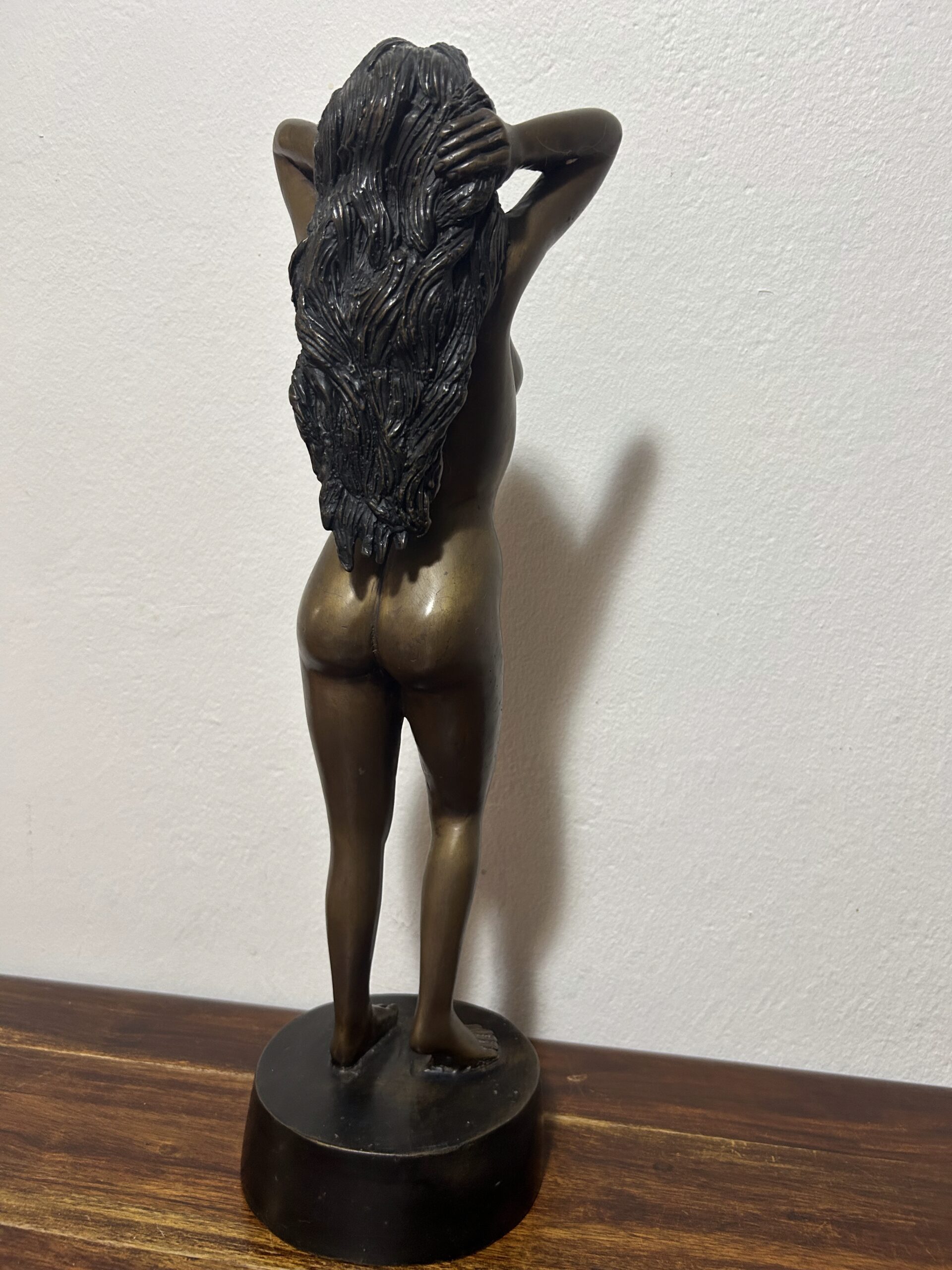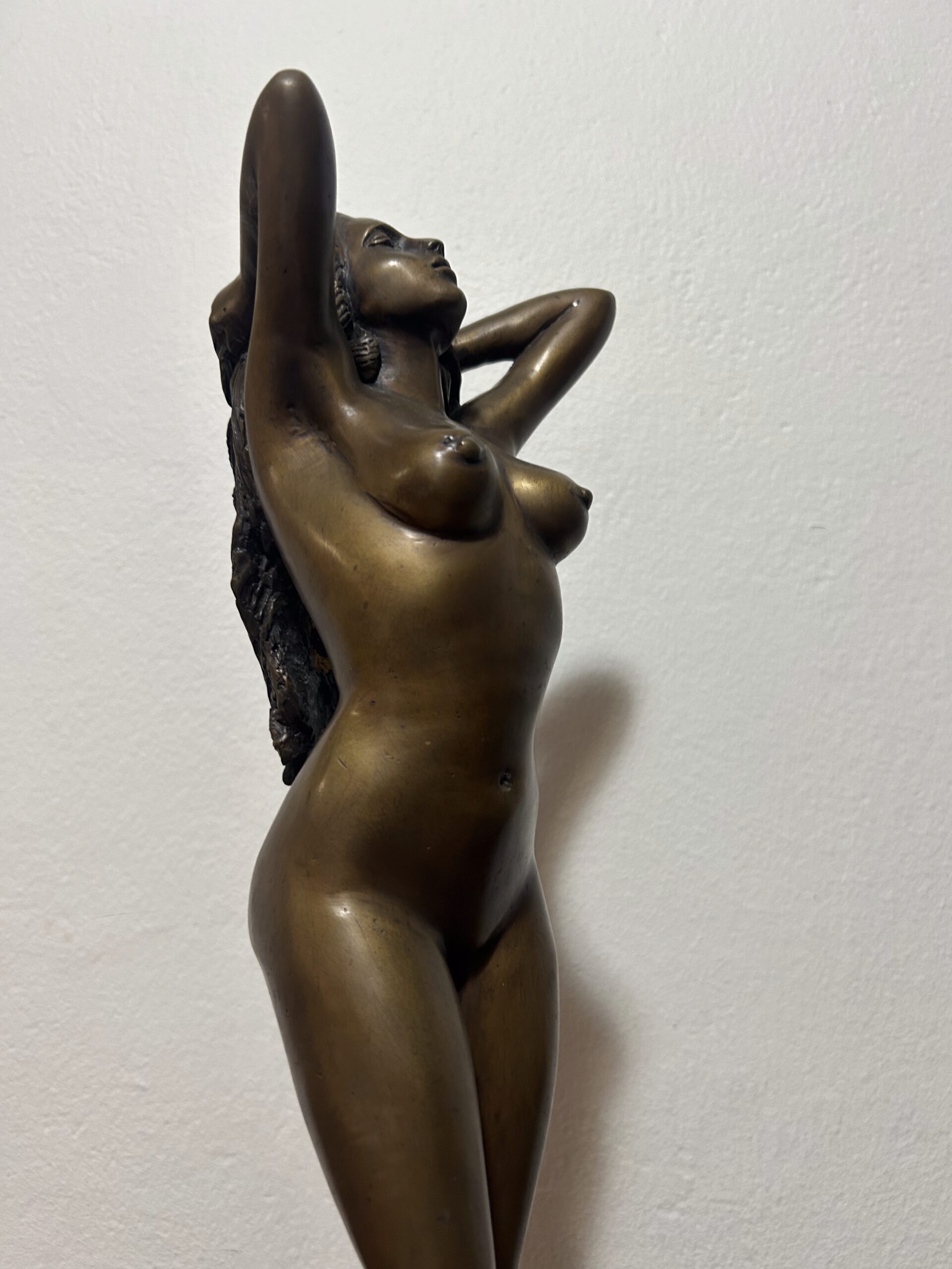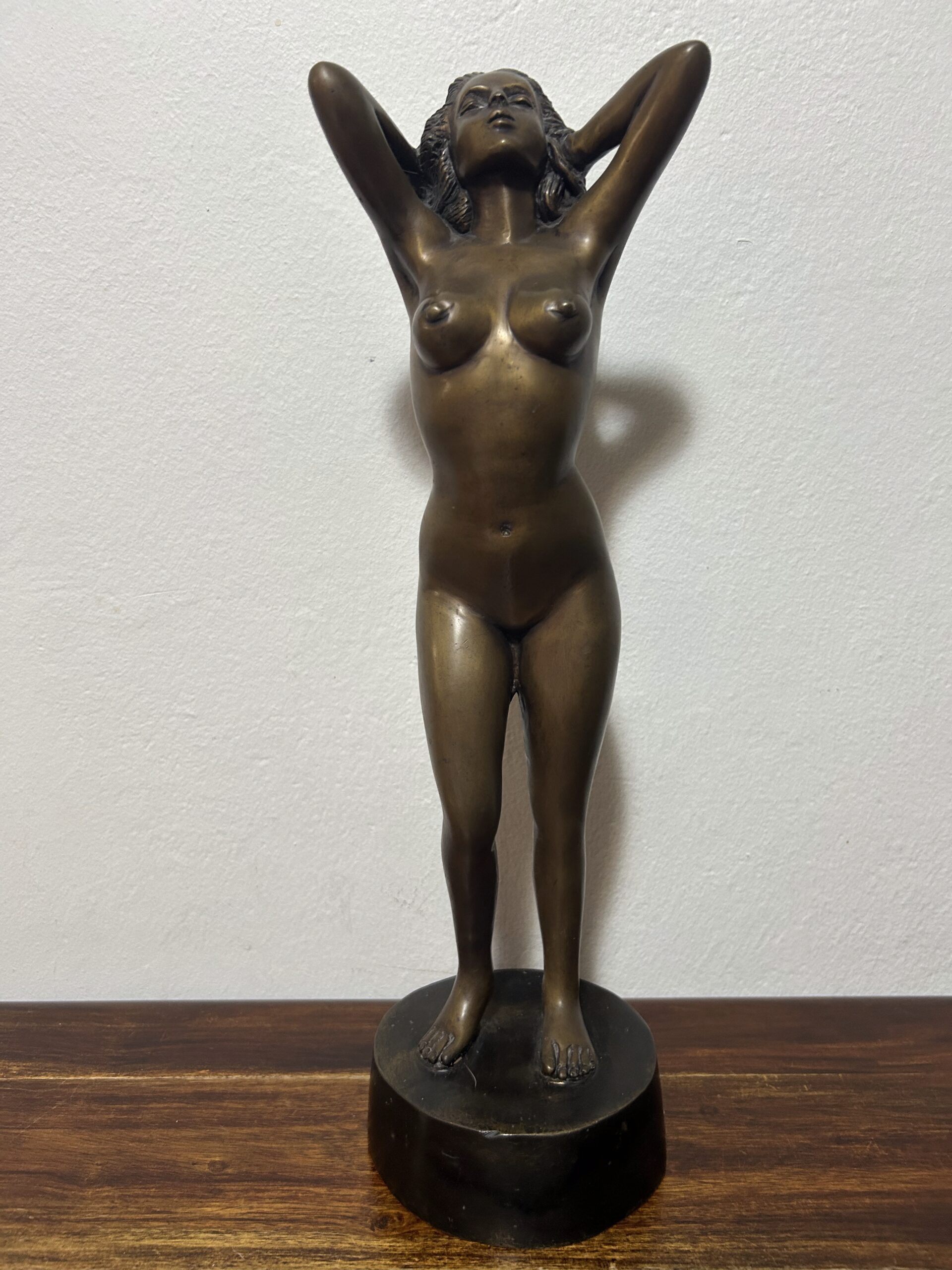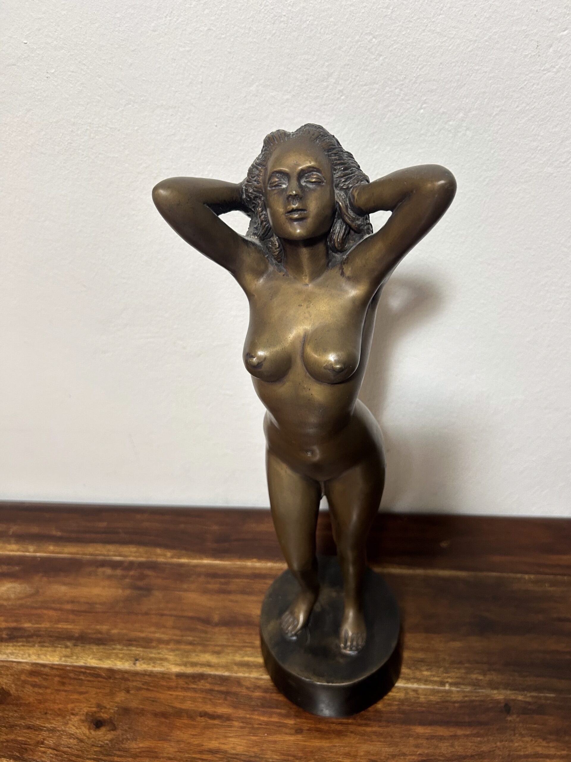 Piękna i wyjątkowa rzeźba z brązu przedstawiająca nagą kobietę, będąca hołdem dla klasycznego piękna i wyrafinowanego kunsztu artystycznego. Według informacji od poprzedniego właściciela dzieło ma ponad 100 lat, co czyni je nie tylko dekoracyjnym przedmiotem, ale także cennym zabytkiem o historycznym znaczeniu.