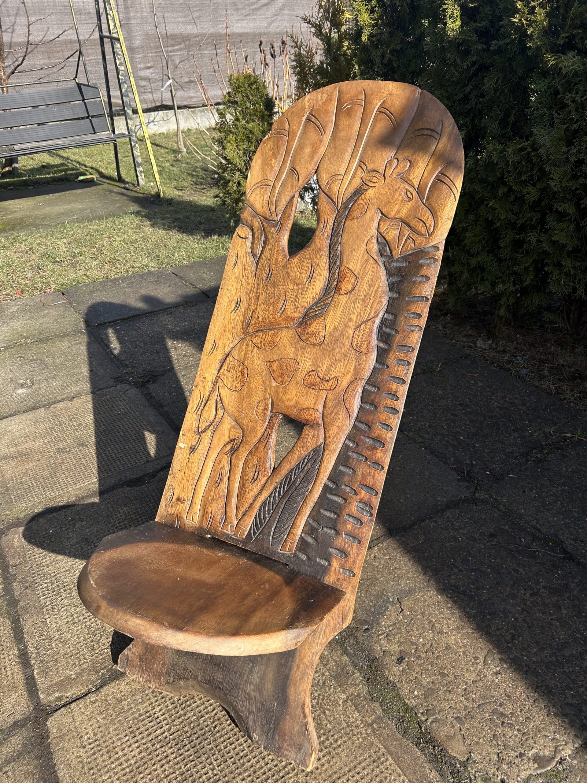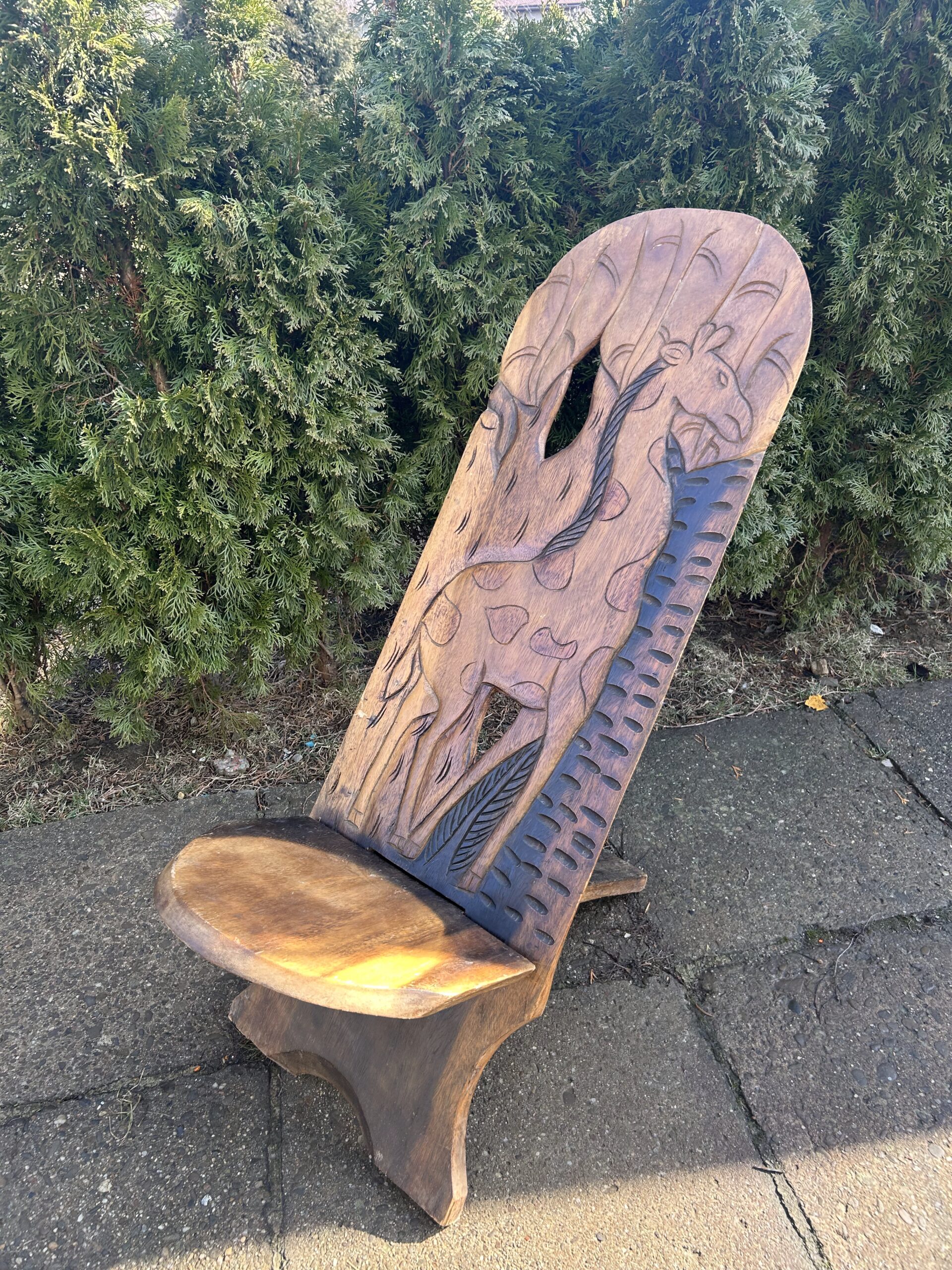 Typ: afrykańskie krzesło wartownika z rzeźbioną żyrafą