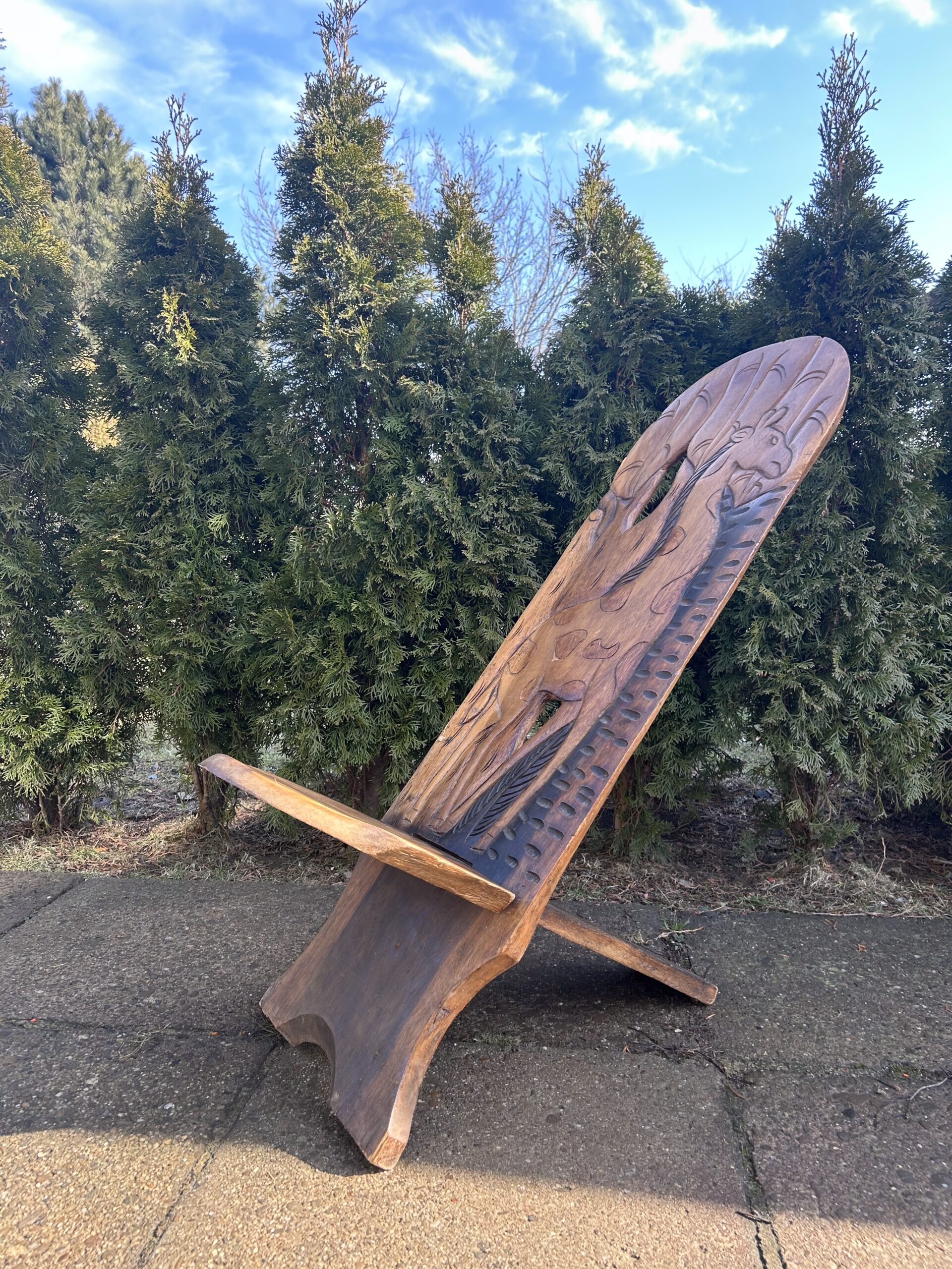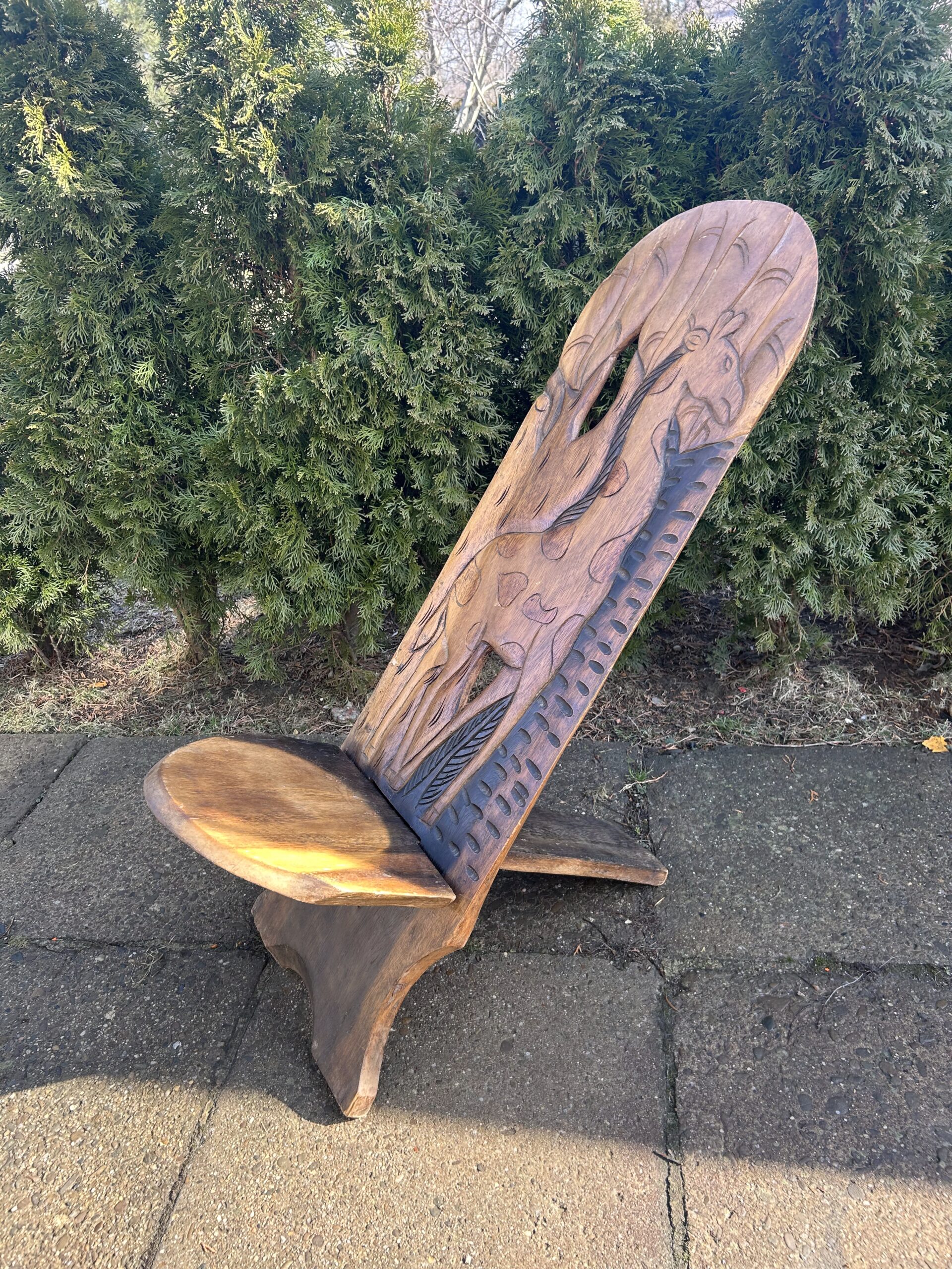 Afrykańskie Krzesło Wartownika z Rzeźbioną Żyrafą