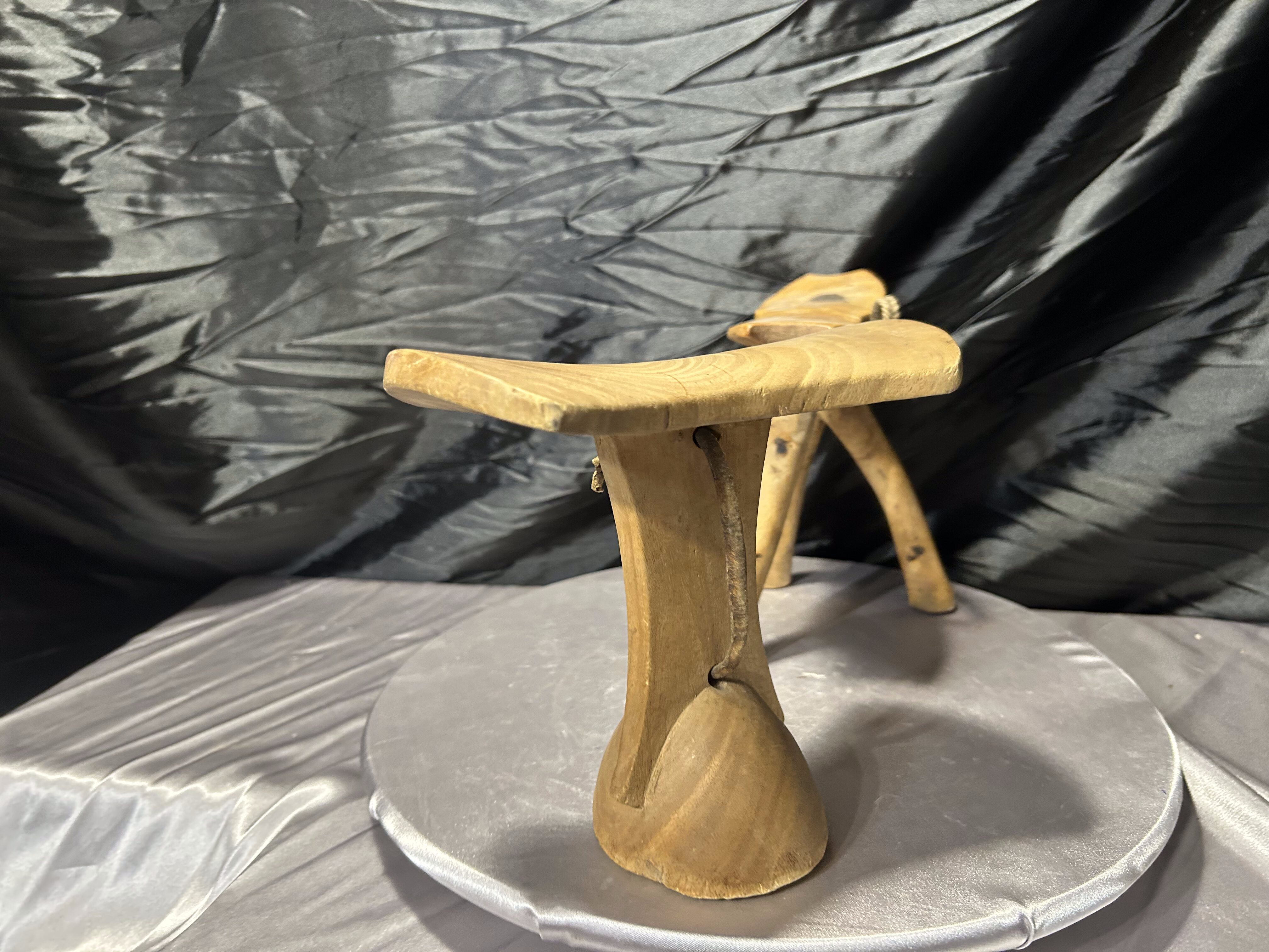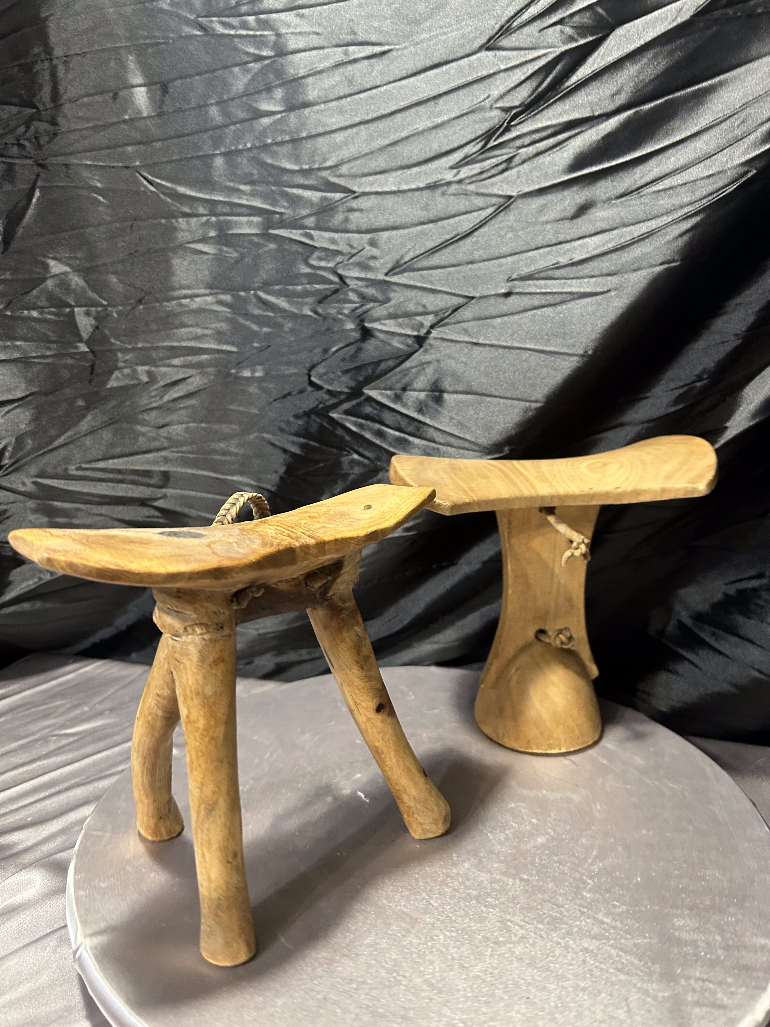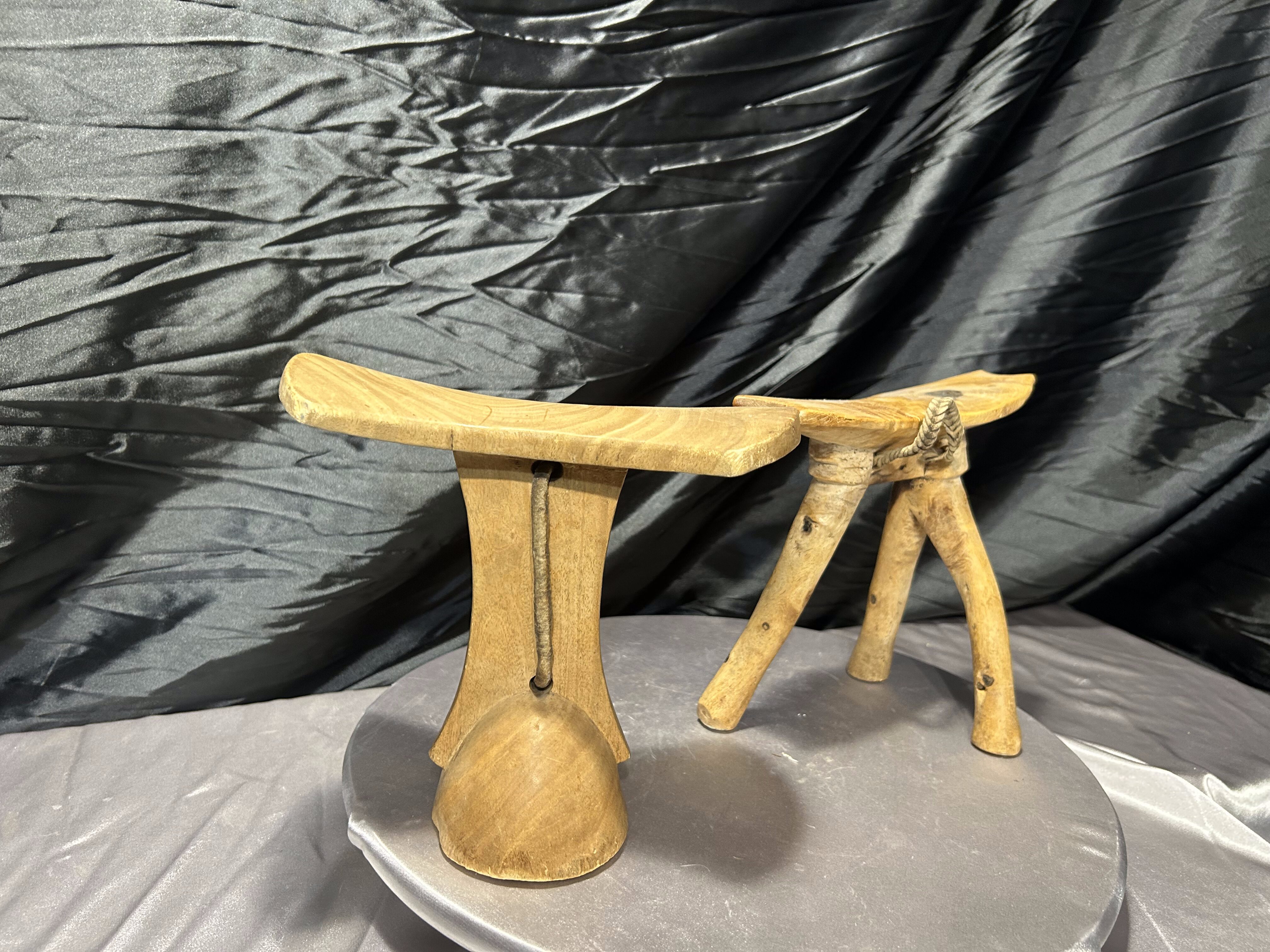 Unikatowy zestaw dwóch afrykańskich podgłówków, wykonanych ręcznie z litego drewna. Każdy z nich reprezentuje tradycyjne rzemiosło ludów Afryki Wschodniej – przedmiot o głębokiej symbolice, używany od setek lat. Podgłówki pełniły funkcję ochrony misternie upiętych fryzur podczas snu, a jednocześnie stanowiły osobisty, często rytualny element codzienności.