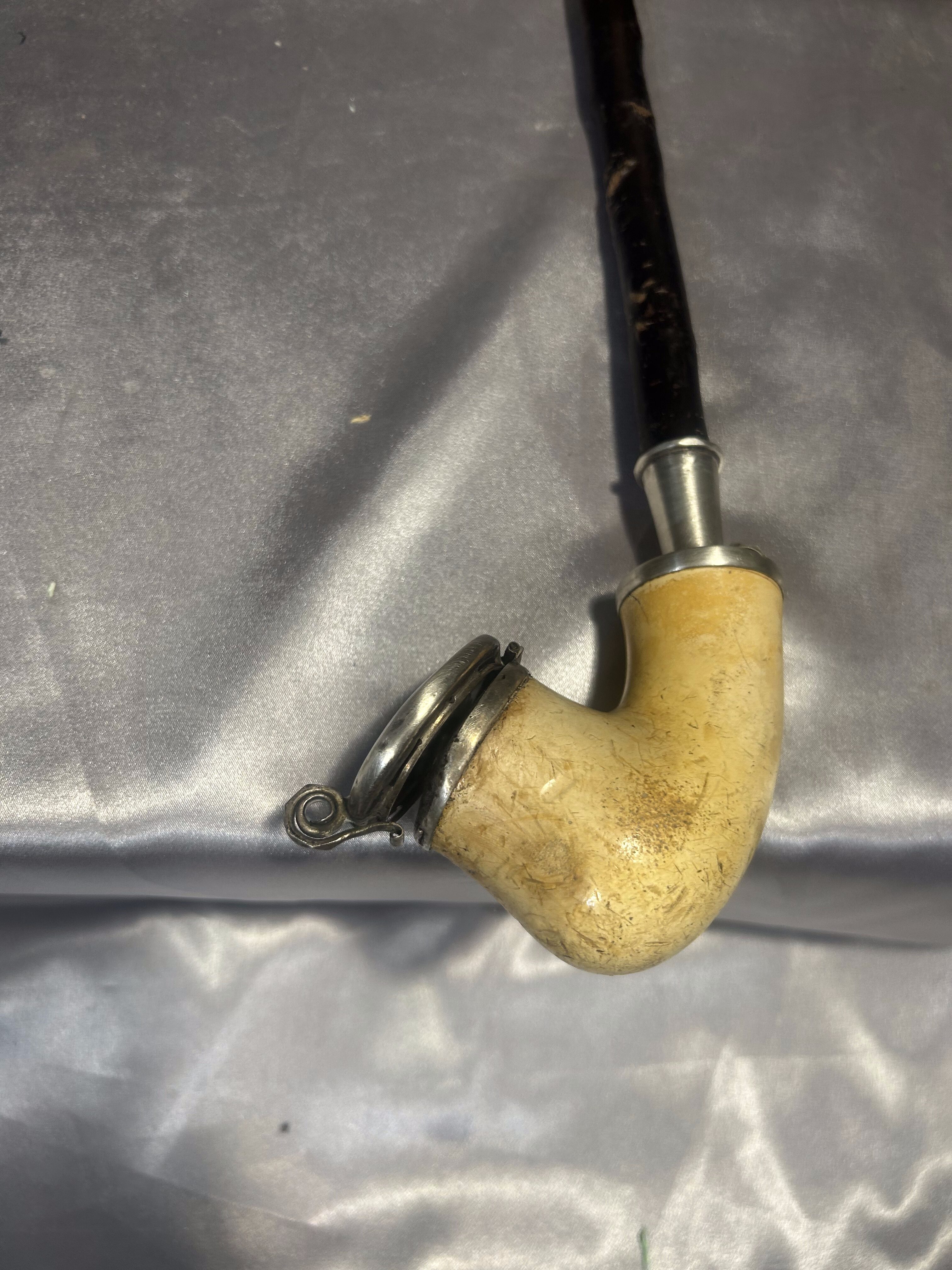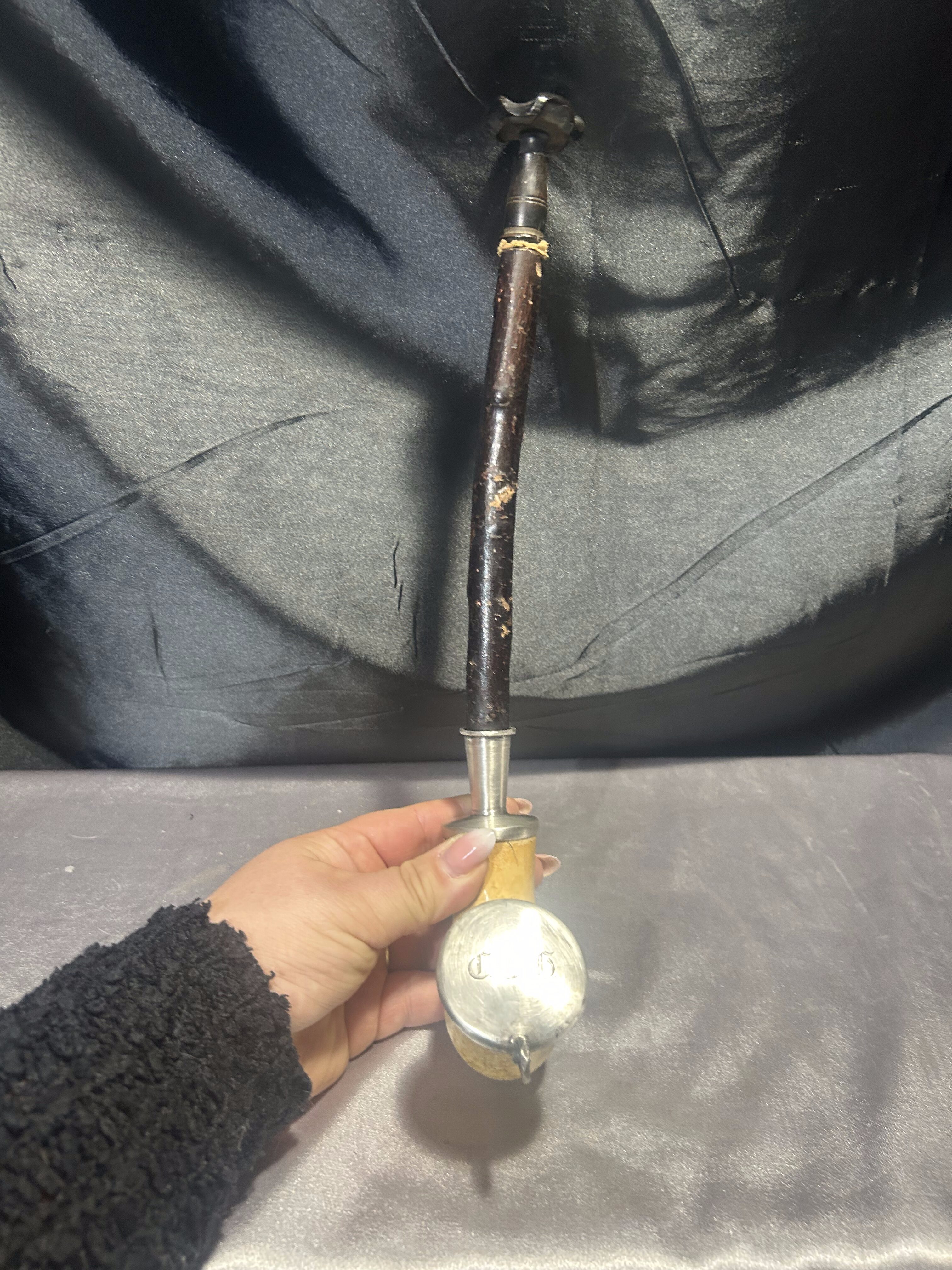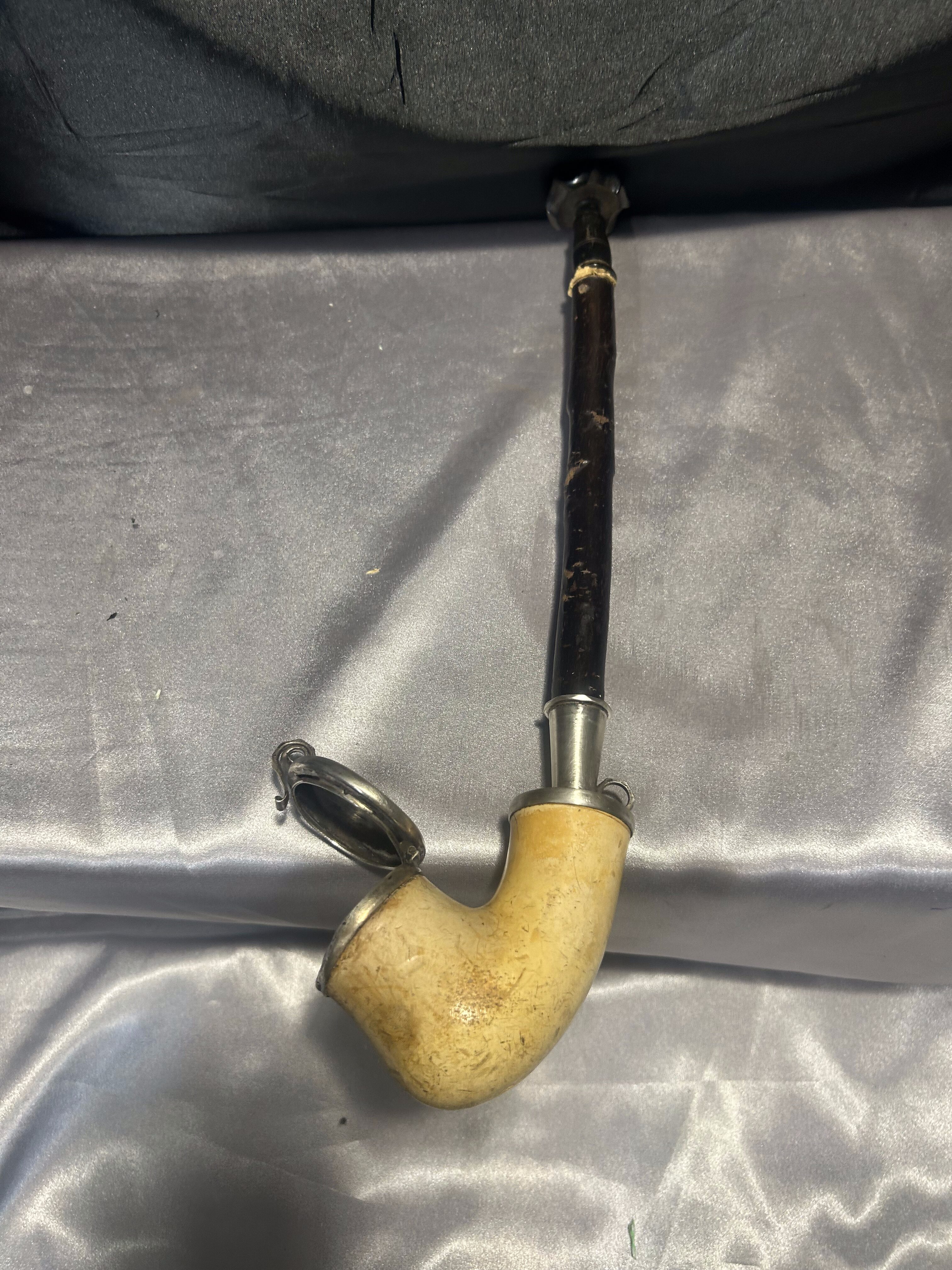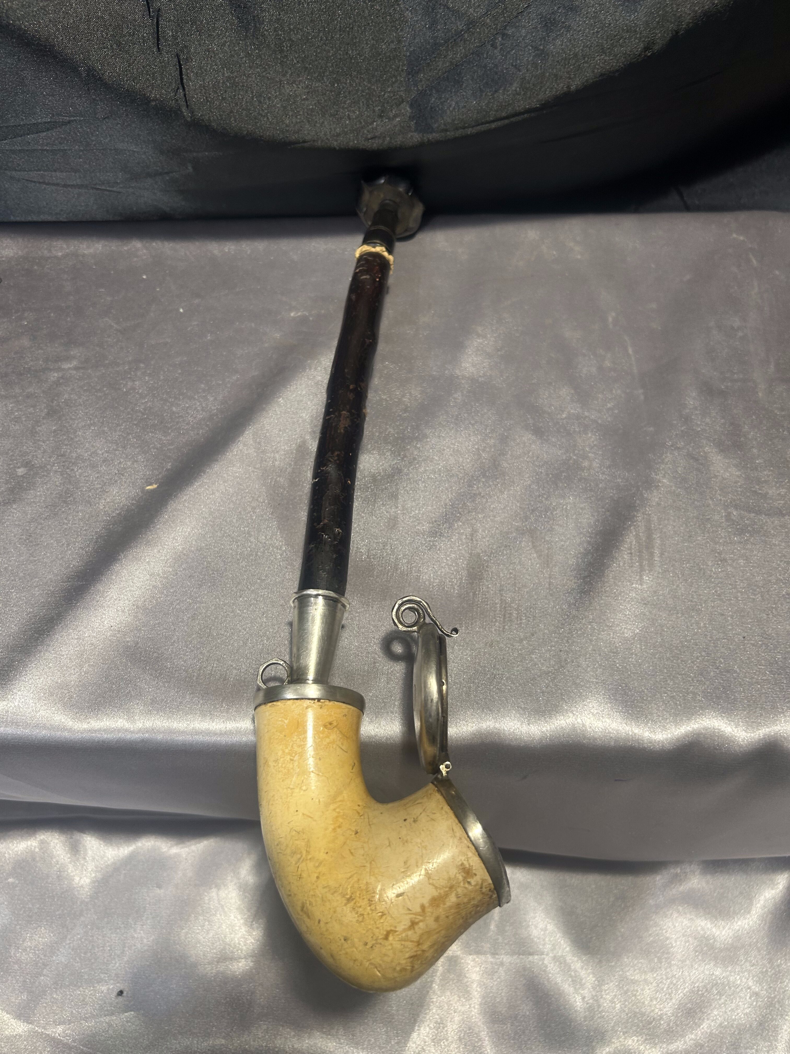 Wyjątkowa, antyczna fajka wykonana z pianki morskiej (meerschaum), z eleganckim, długim ustnikiem z drewna owocowego oraz srebrnymi okuciami, będąca prawdziwą perełką dla kolekcjonerów i pasjonatów dawnego rzemiosła. Ta niezwykła fajka zachwyca zarówno jakością wykonania, jak i bogatą historią, widoczną w każdym detalu.