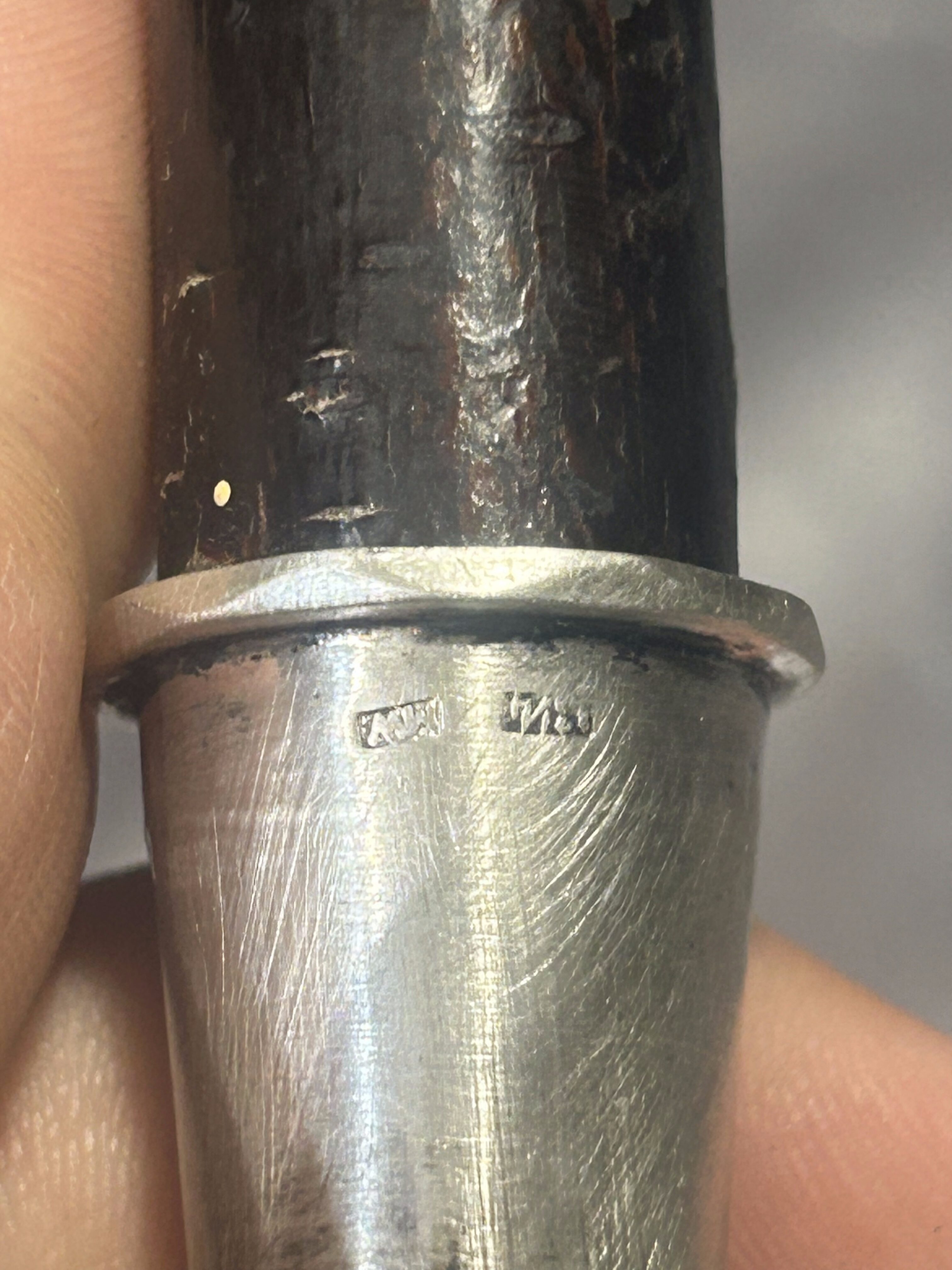 Dodatkowo, czpień (łączenie ustnika z cybuchem) również opatrzony wybitymi próbami srebra, co potwierdza autentyczność materiału i wartość przedmiotu.