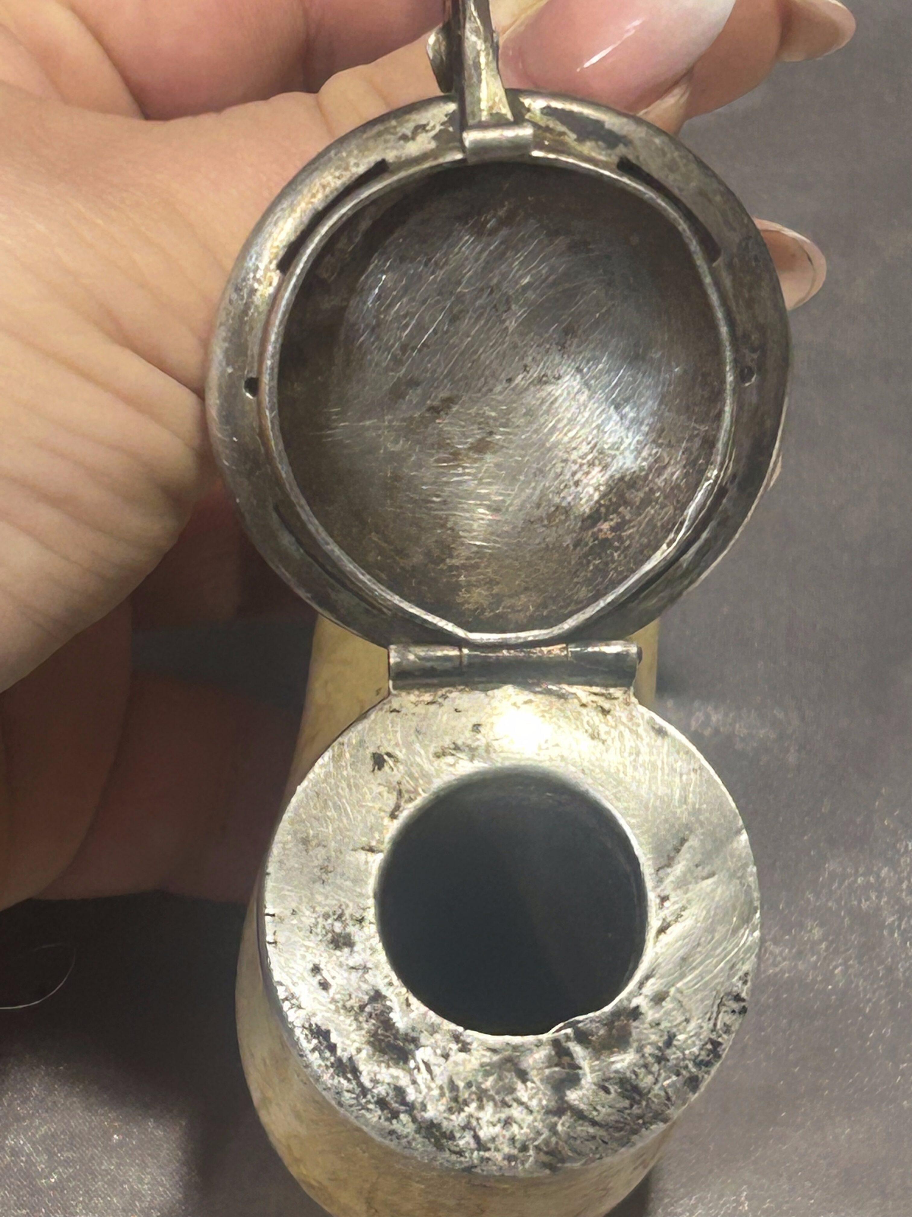 Typ: antyczna fajka z pianki morskiej ze srebrnym wieczkiem