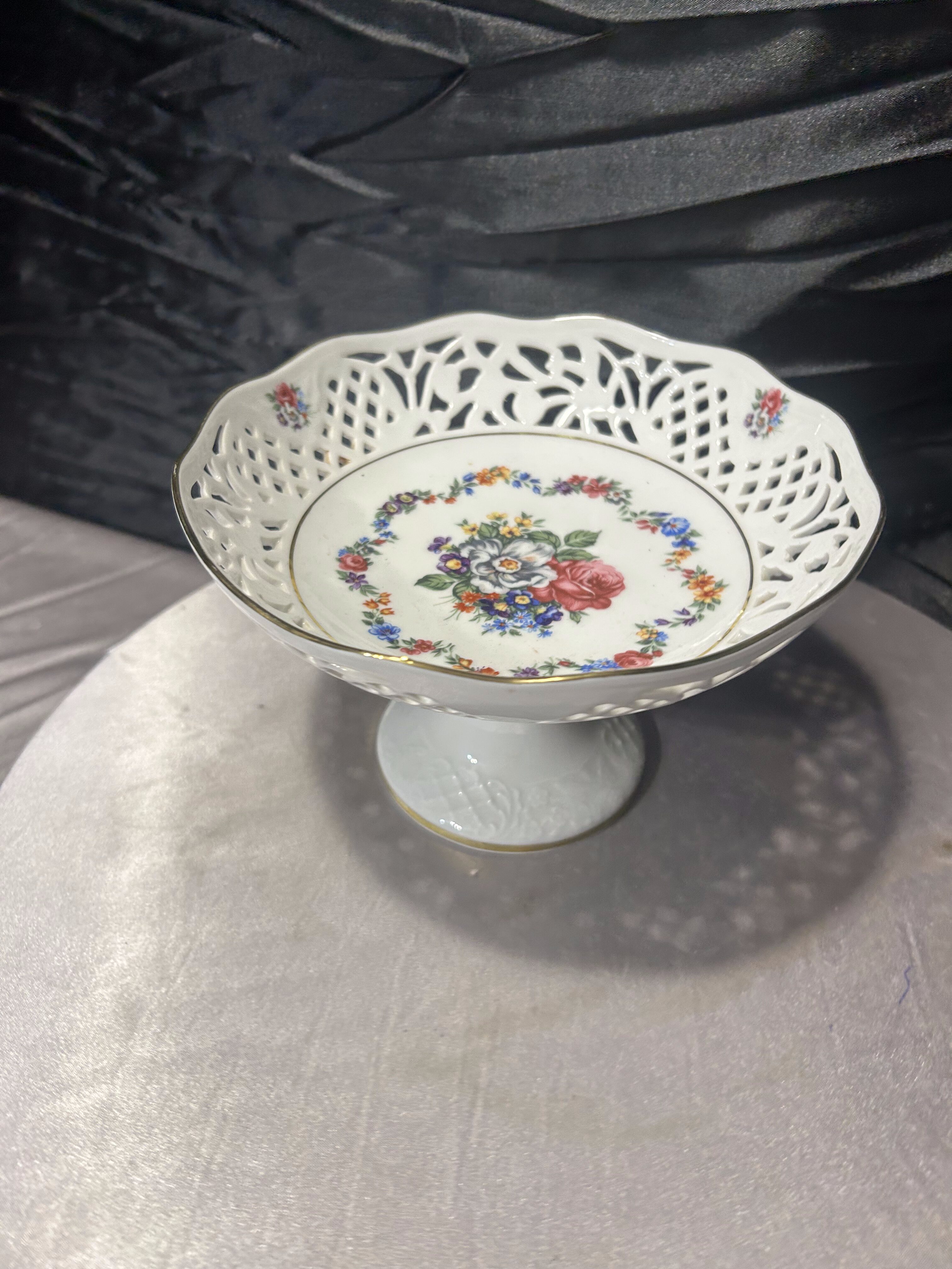 - Ażurowa patera na nodze Schumann Arzberg Bavaria – porcelana niemiecka z motywem kwiatowym