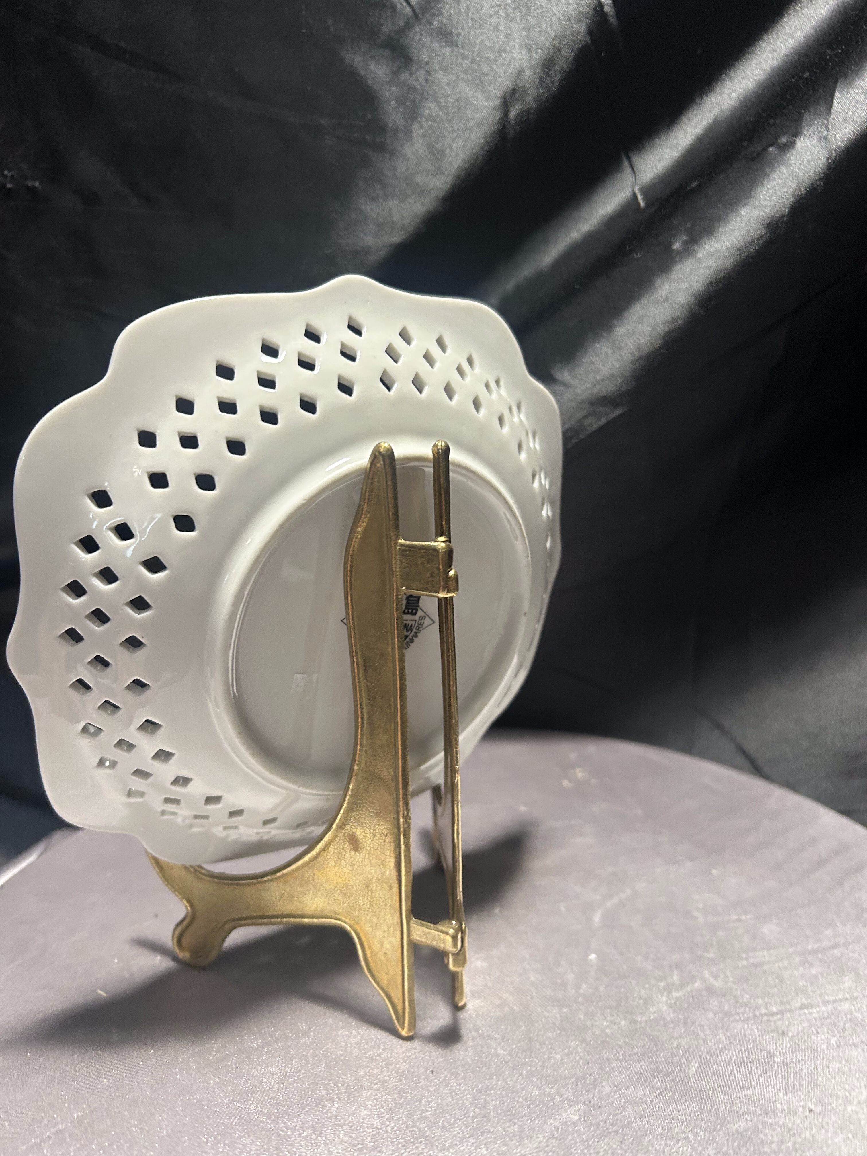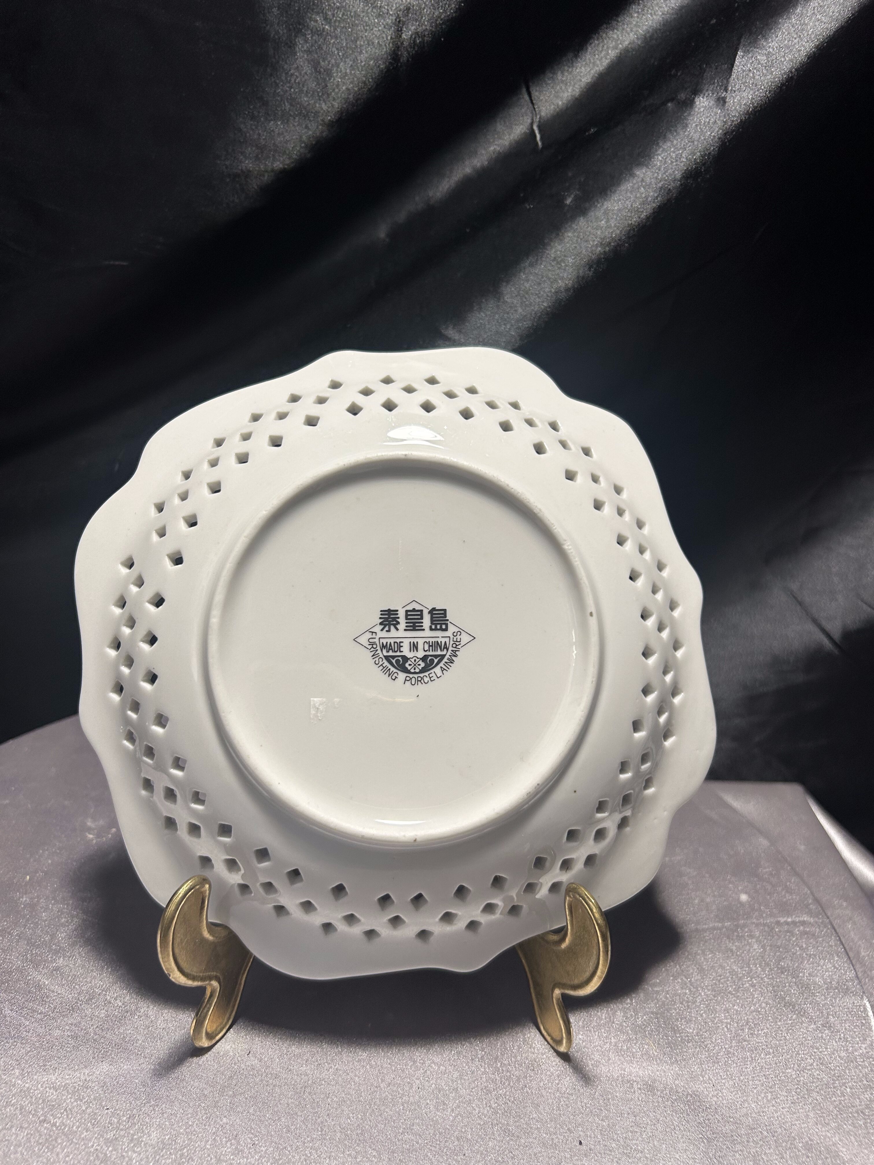 - Ażurowa porcelanowa patera – Furnishing Porcelainwares – Chiny – motyw kwiatowy