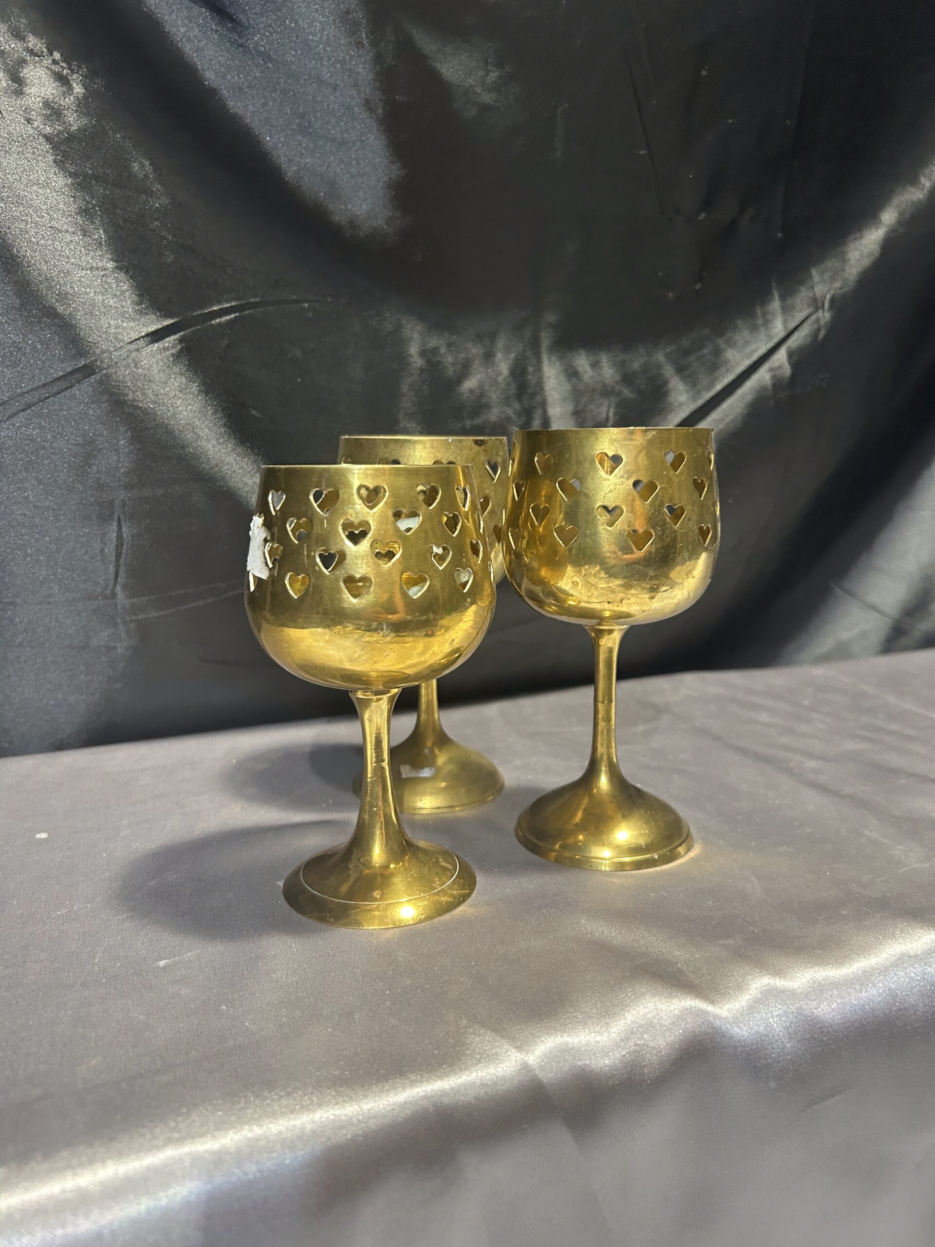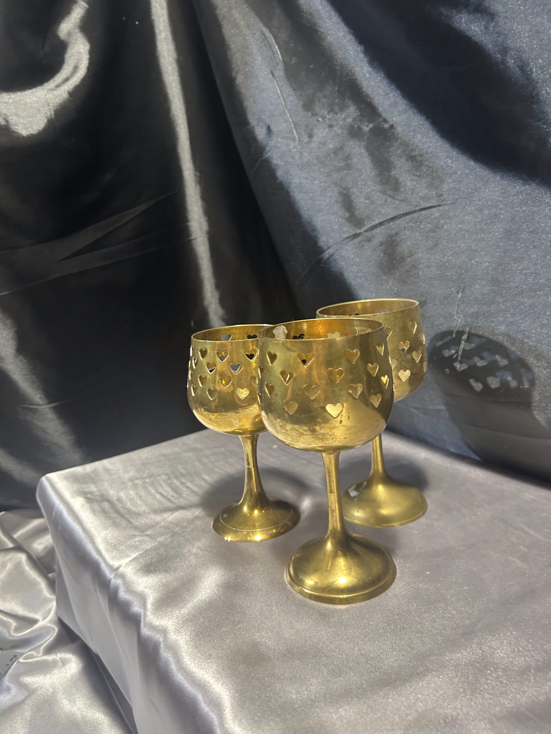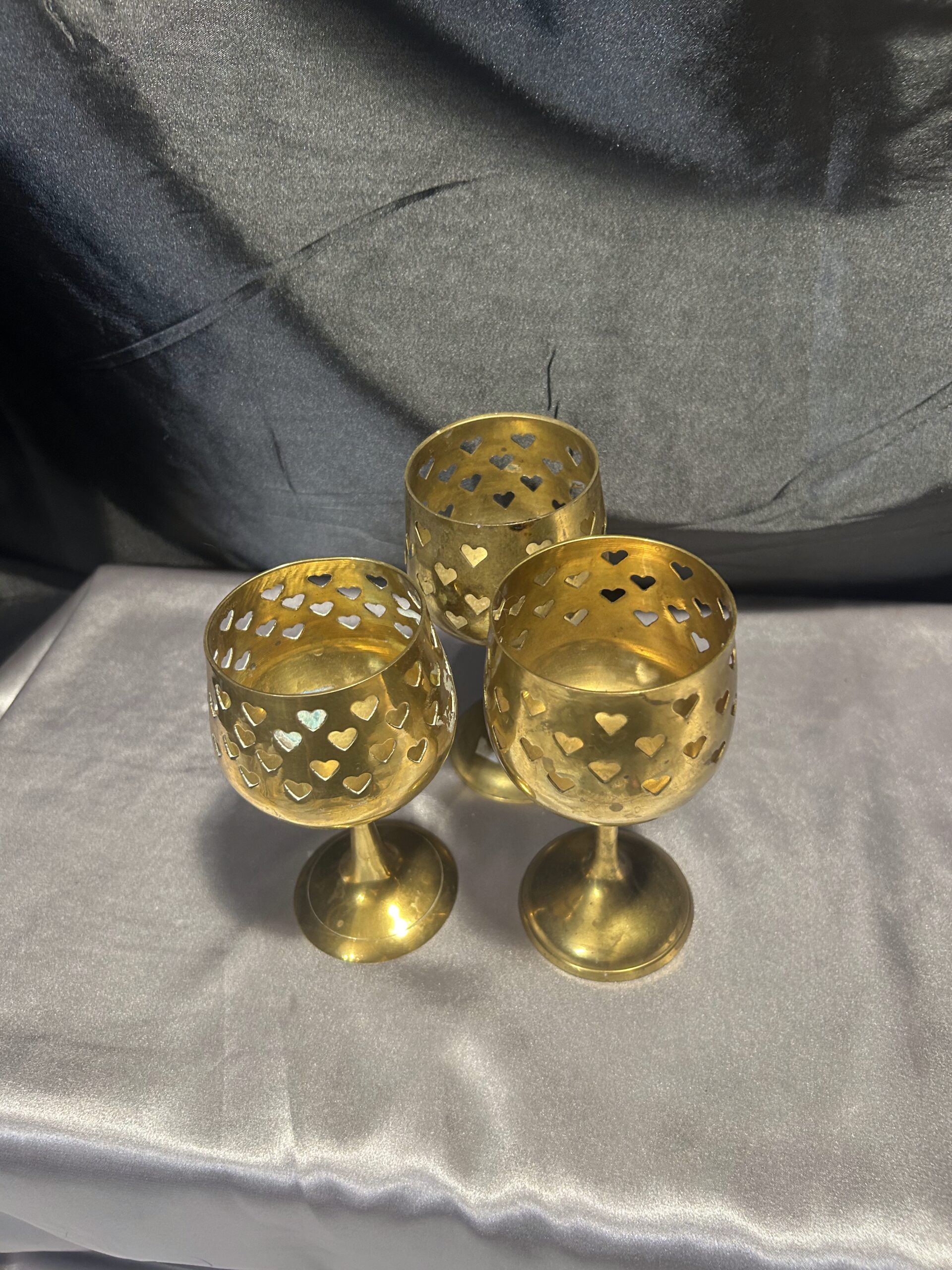 Ażurowe świeczniki kieliszki z mosiądzu – zestaw trzech sztuk
