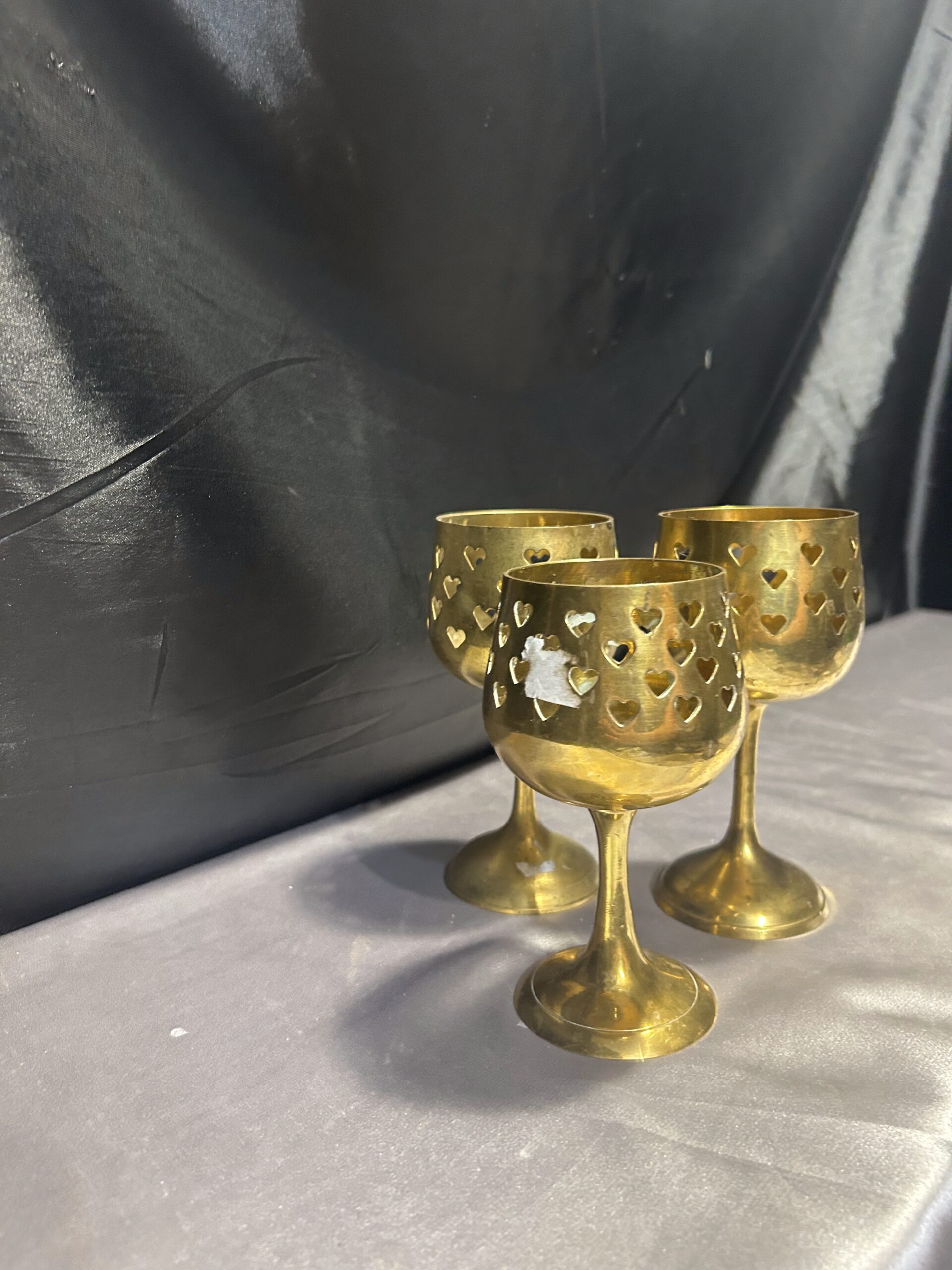 - Ażurowe świeczniki kieliszki z mosiądzu – zestaw trzech sztuk