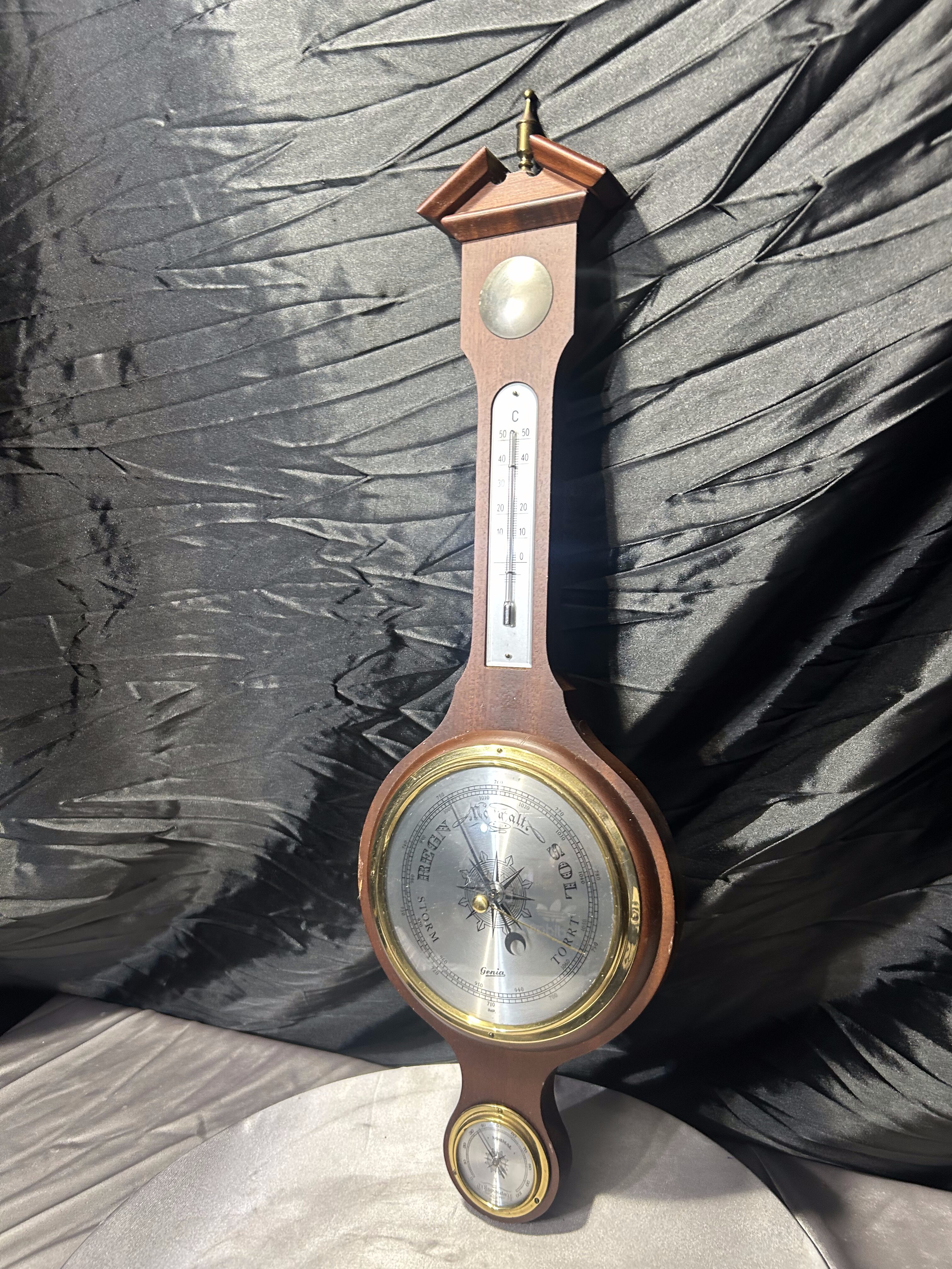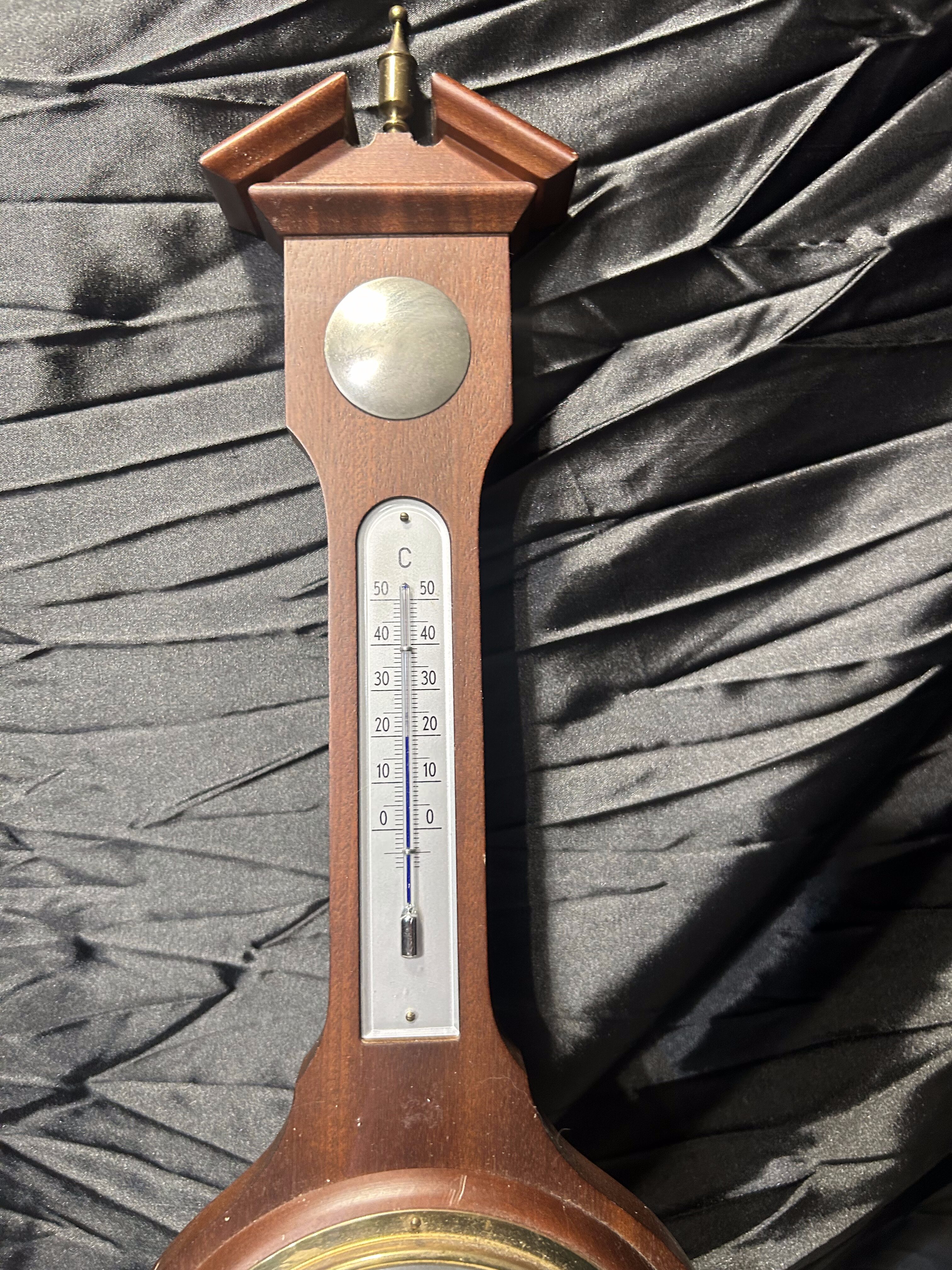 Metaliczne tarcze z dekoracyjnymi oznaczeniami nadają całości elegancji, a wyraźne wskazania ułatwiają codzienny odczyt warunków atmosferycznych. Idealny dodatek do salonu, biura, gabinetu lub jako prezent dla miłośnika klasycznego stylu.