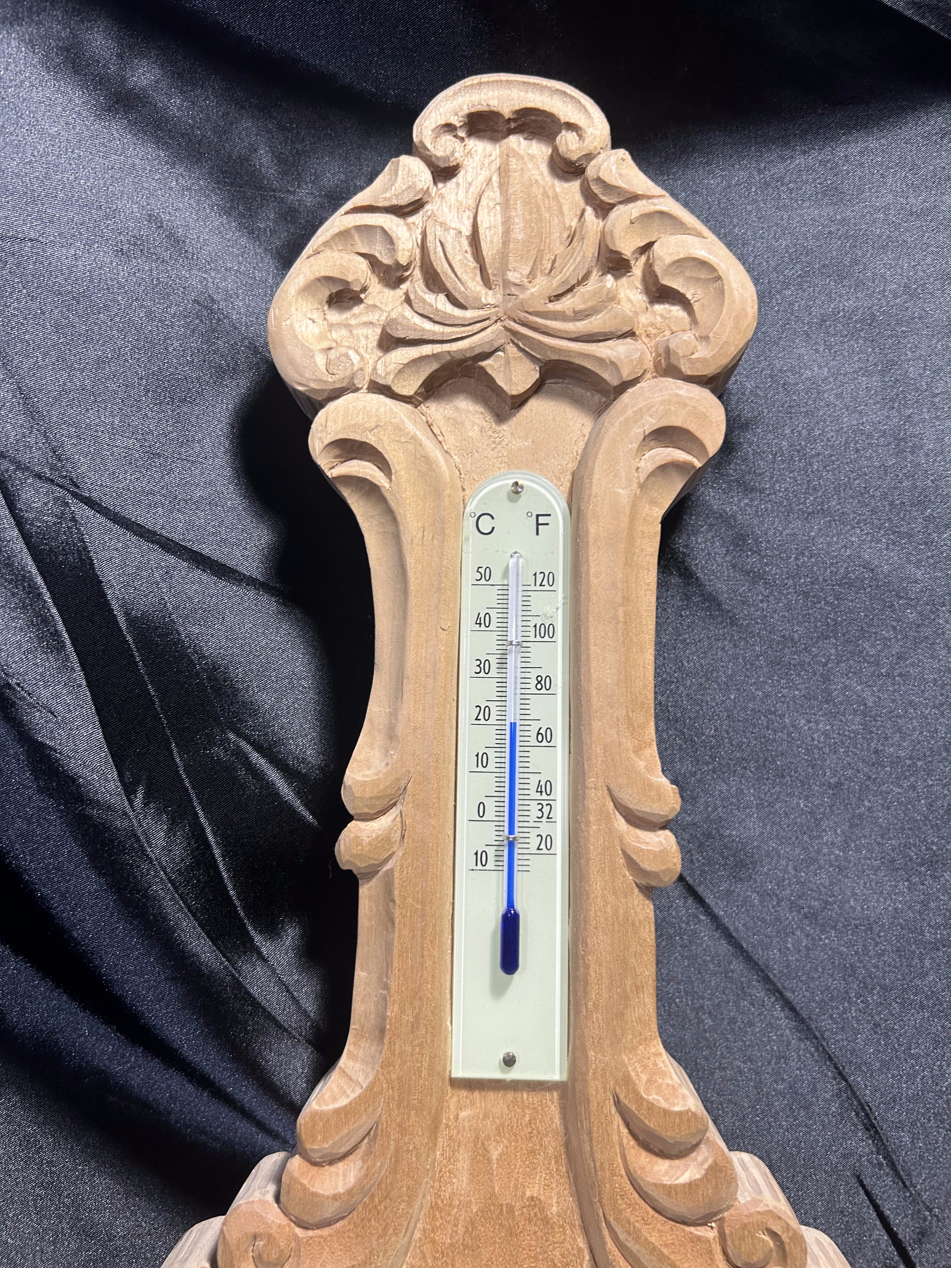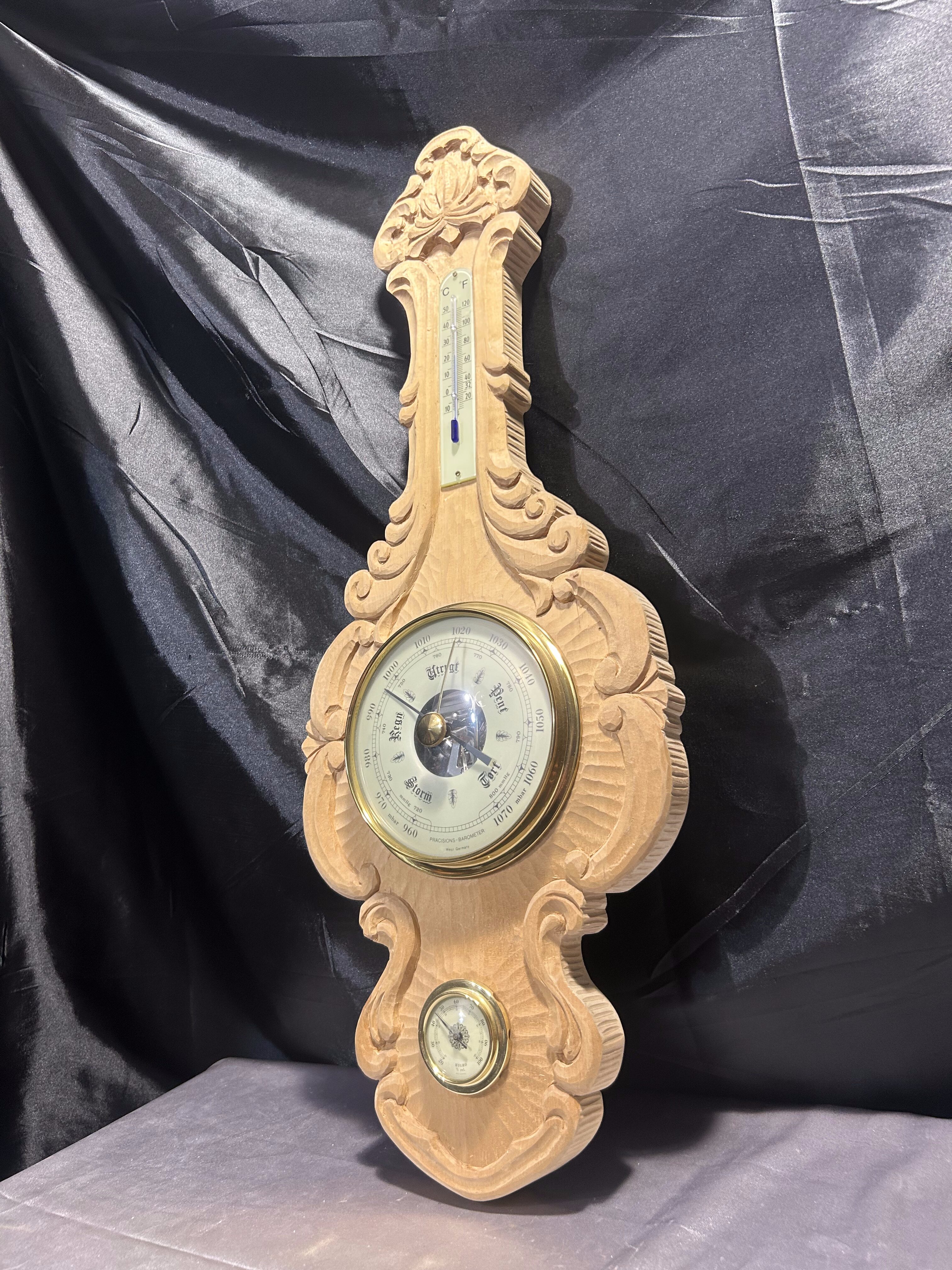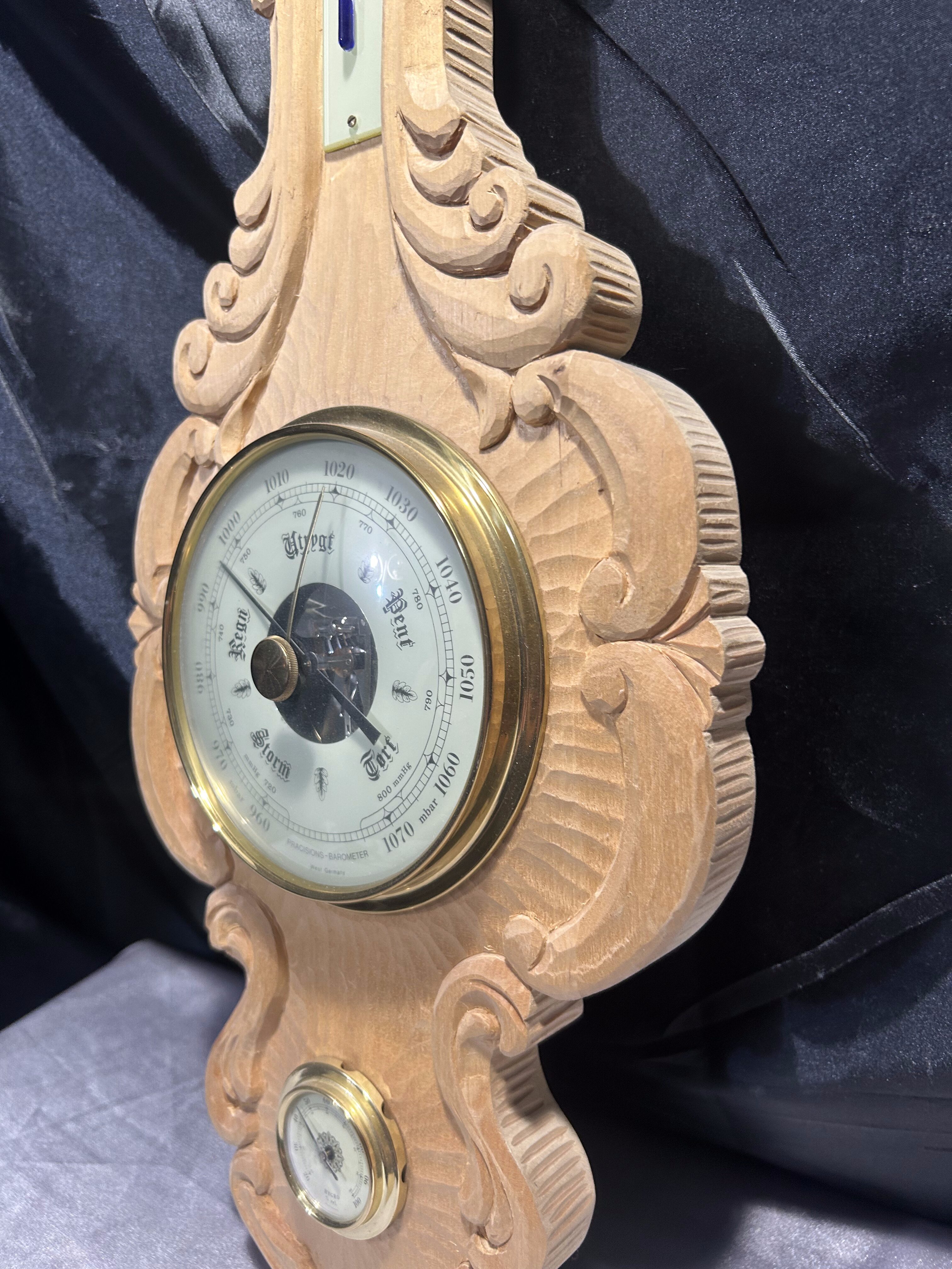 Barometr z termometrem – Drewniany, rzeźbiony – Styl klasyczny