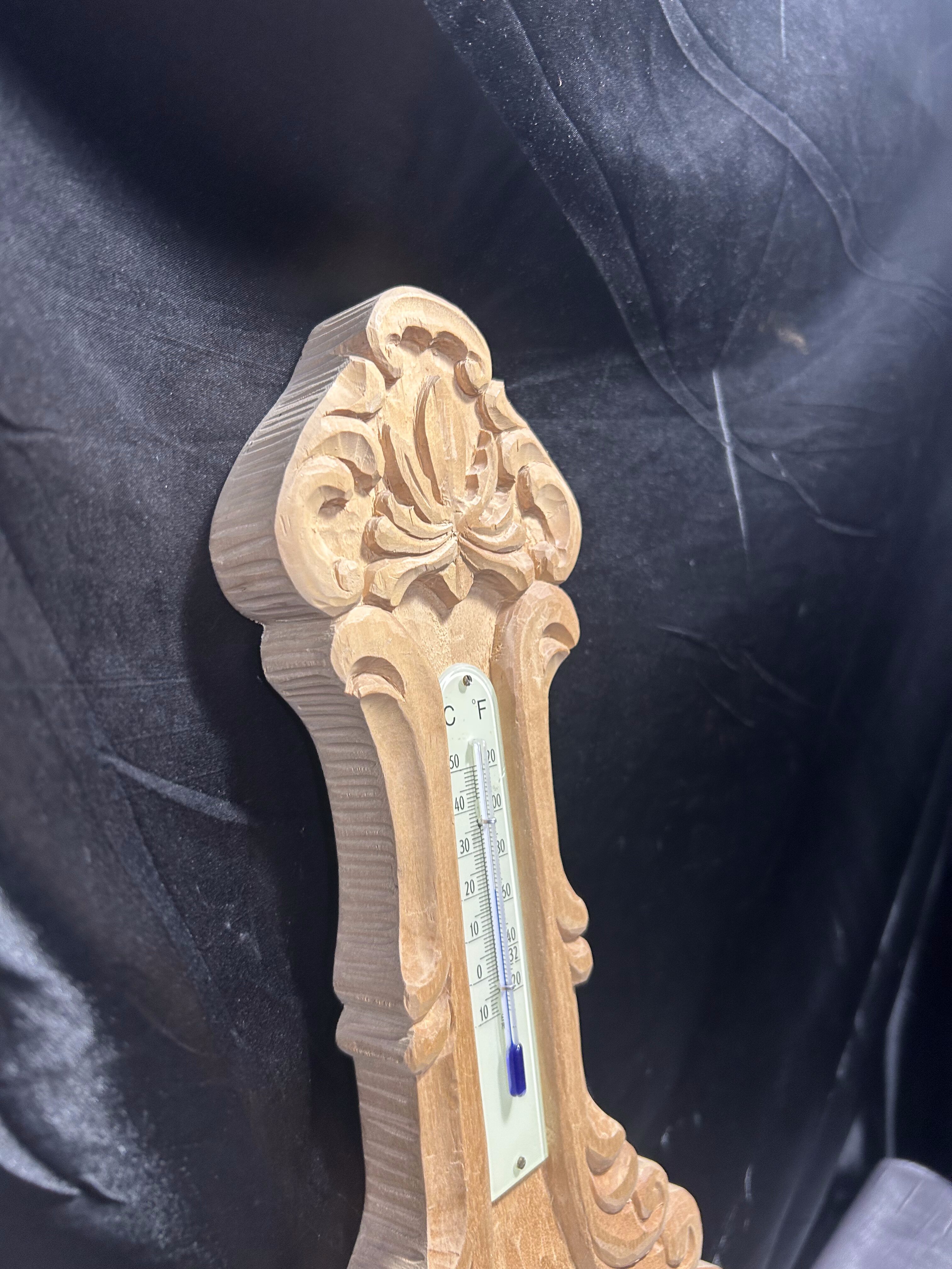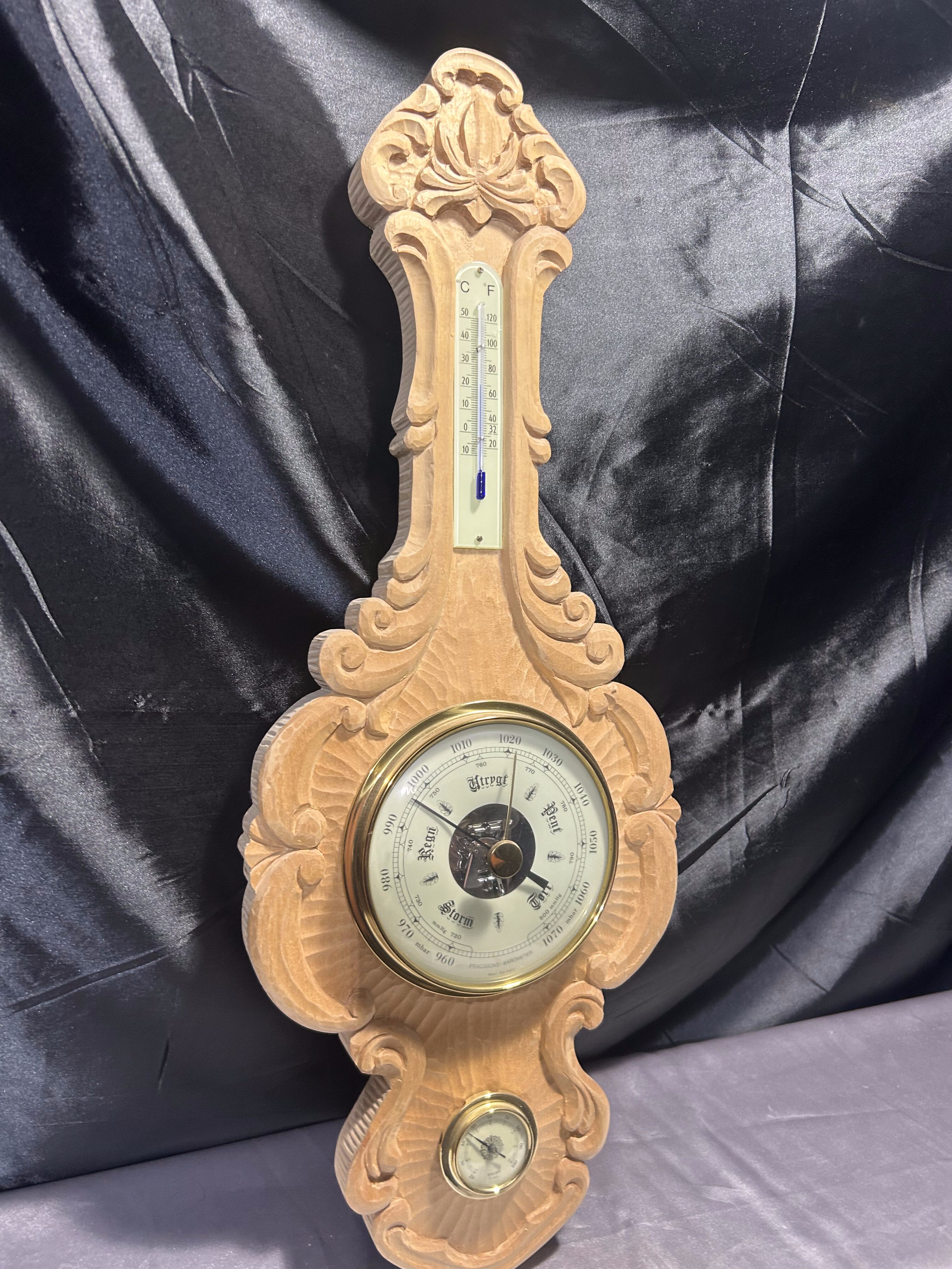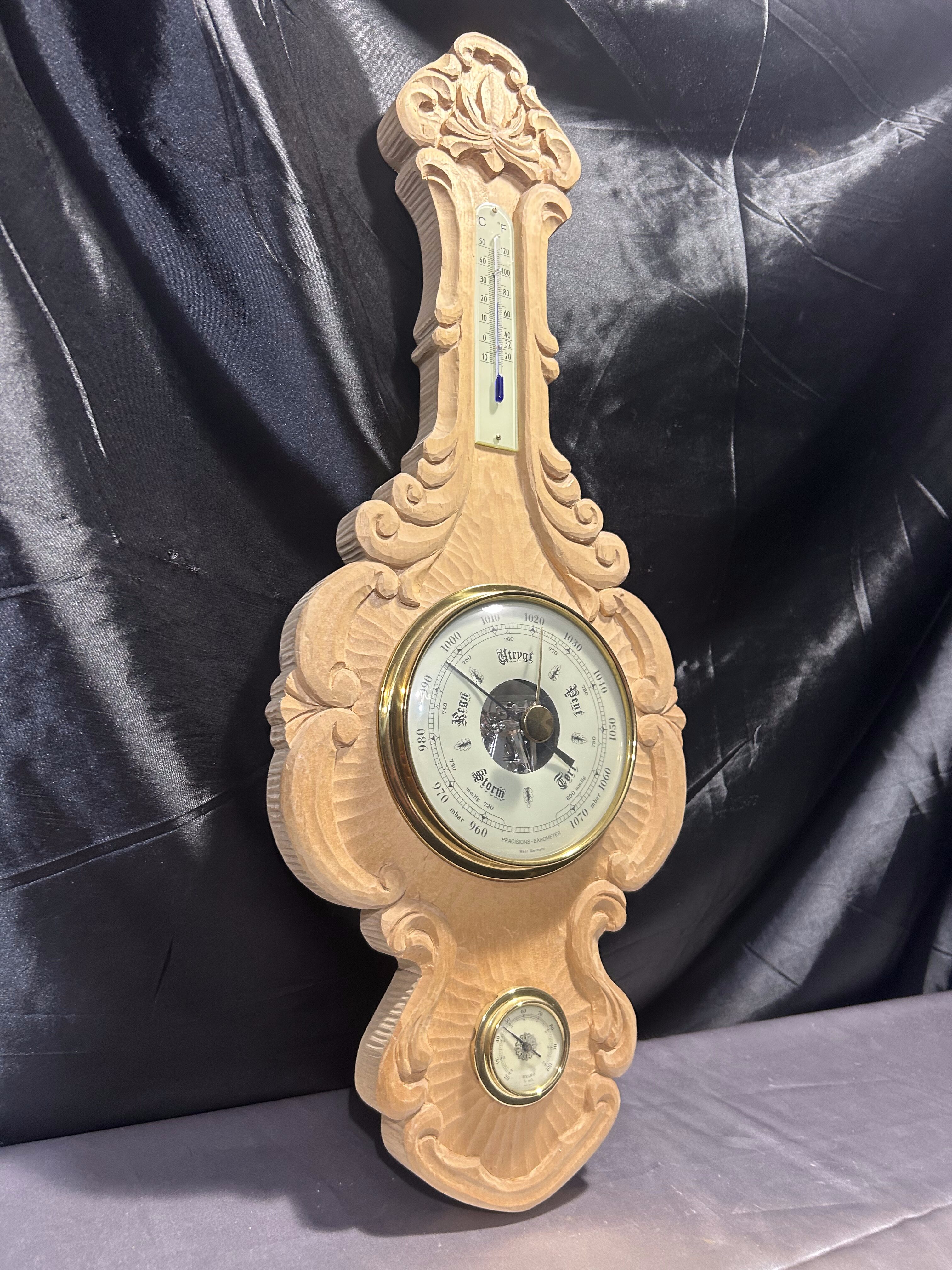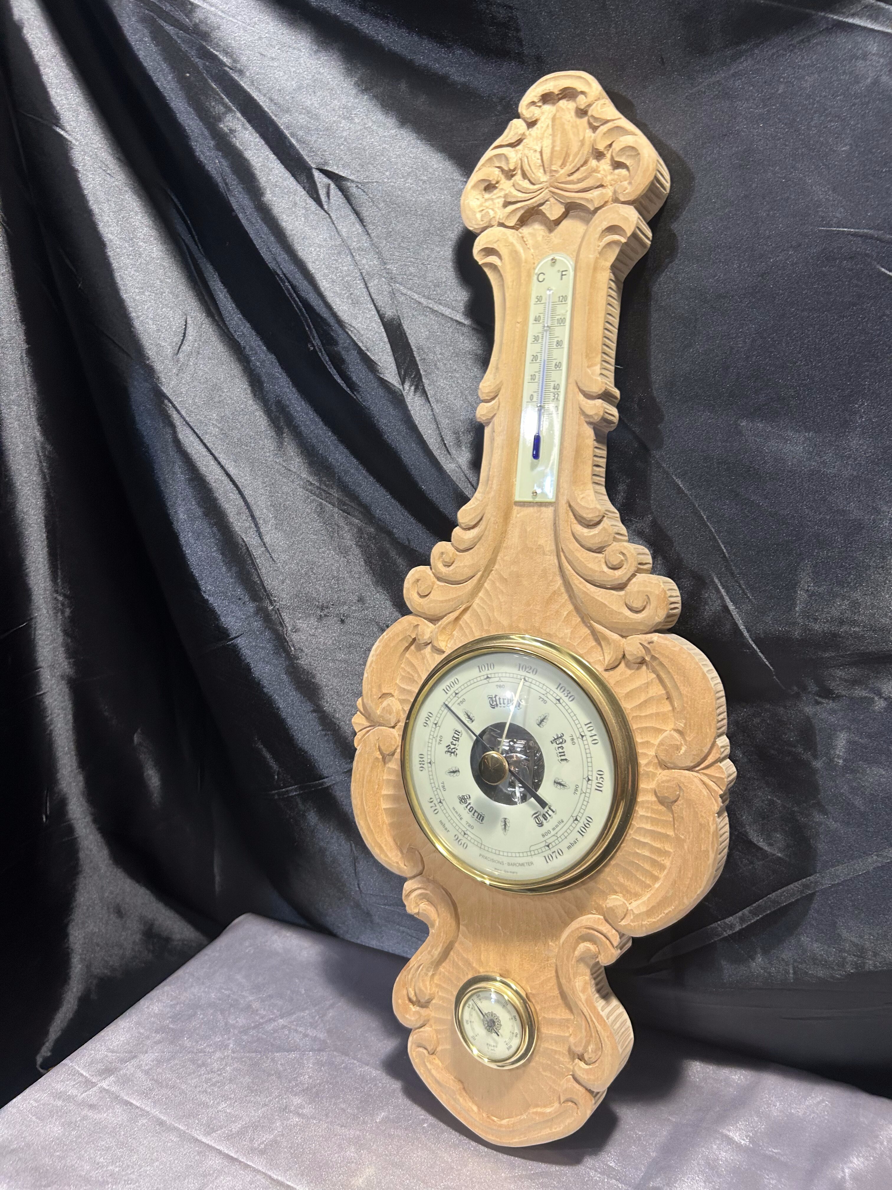 Barometr z termometrem – Drewniany, rzeźbiony – Styl klasyczny