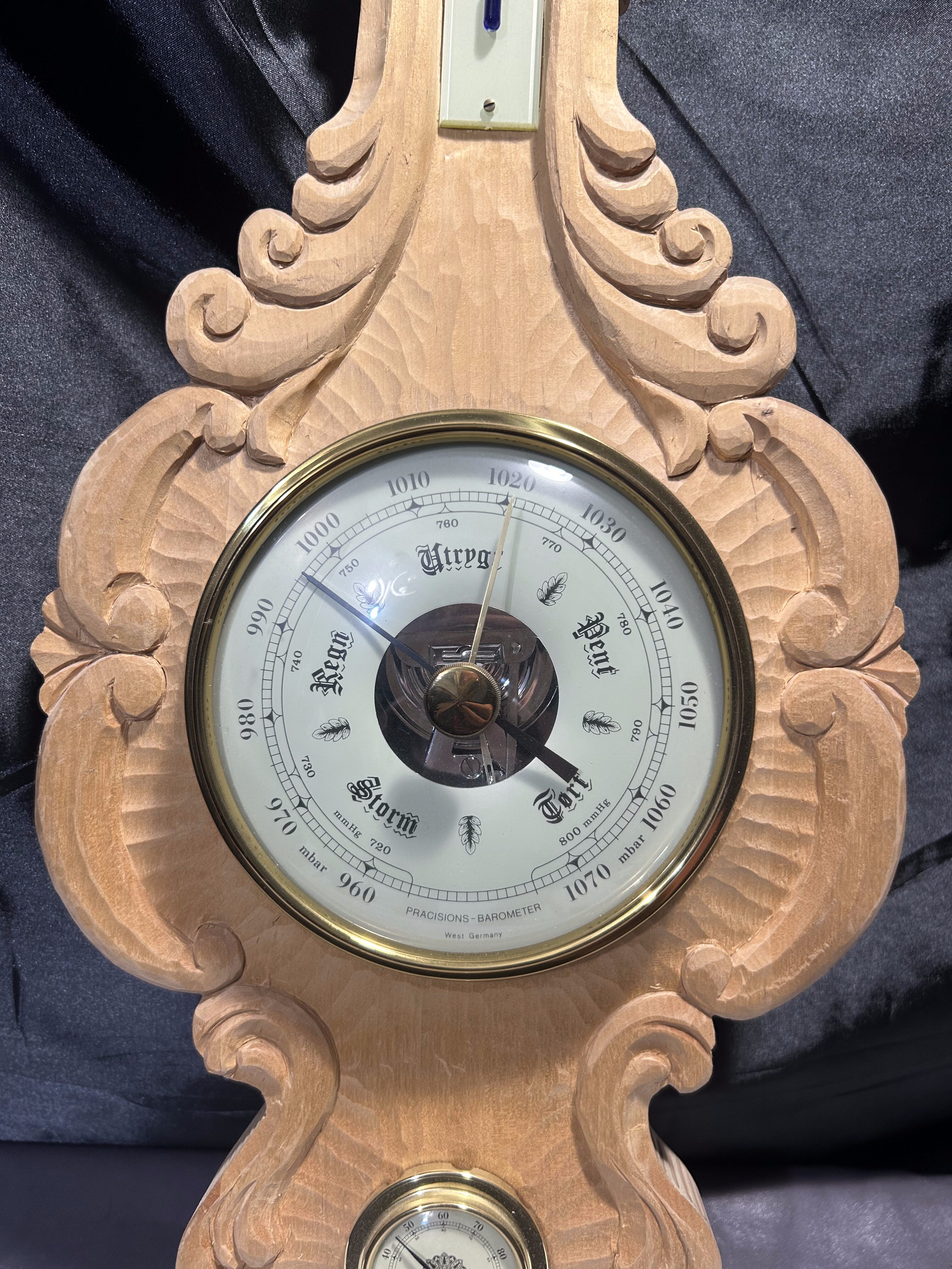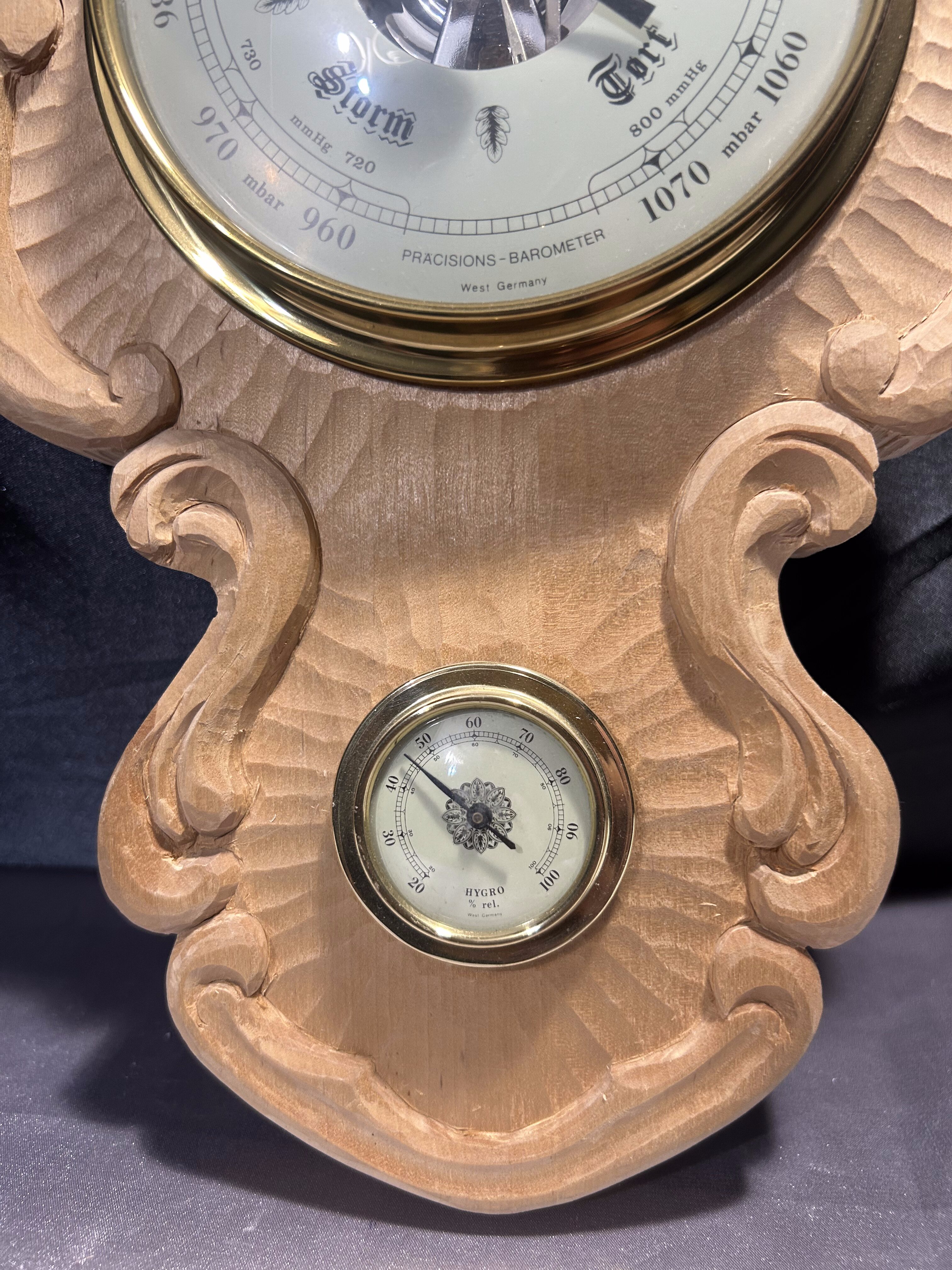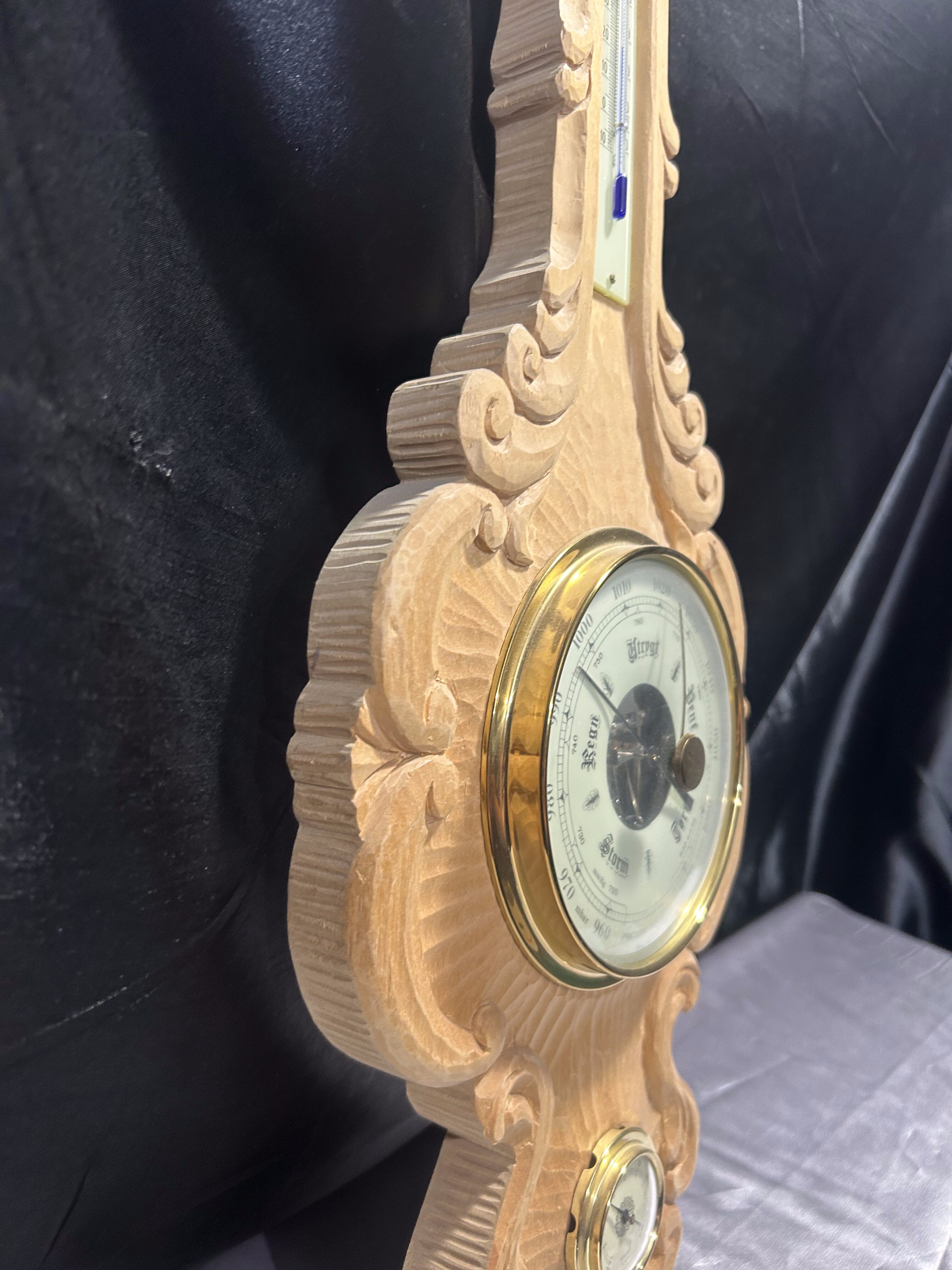 Barometr, higrometr, termometr – Rzeźbiona drewniana oprawa – Sygnowany HMH 1994