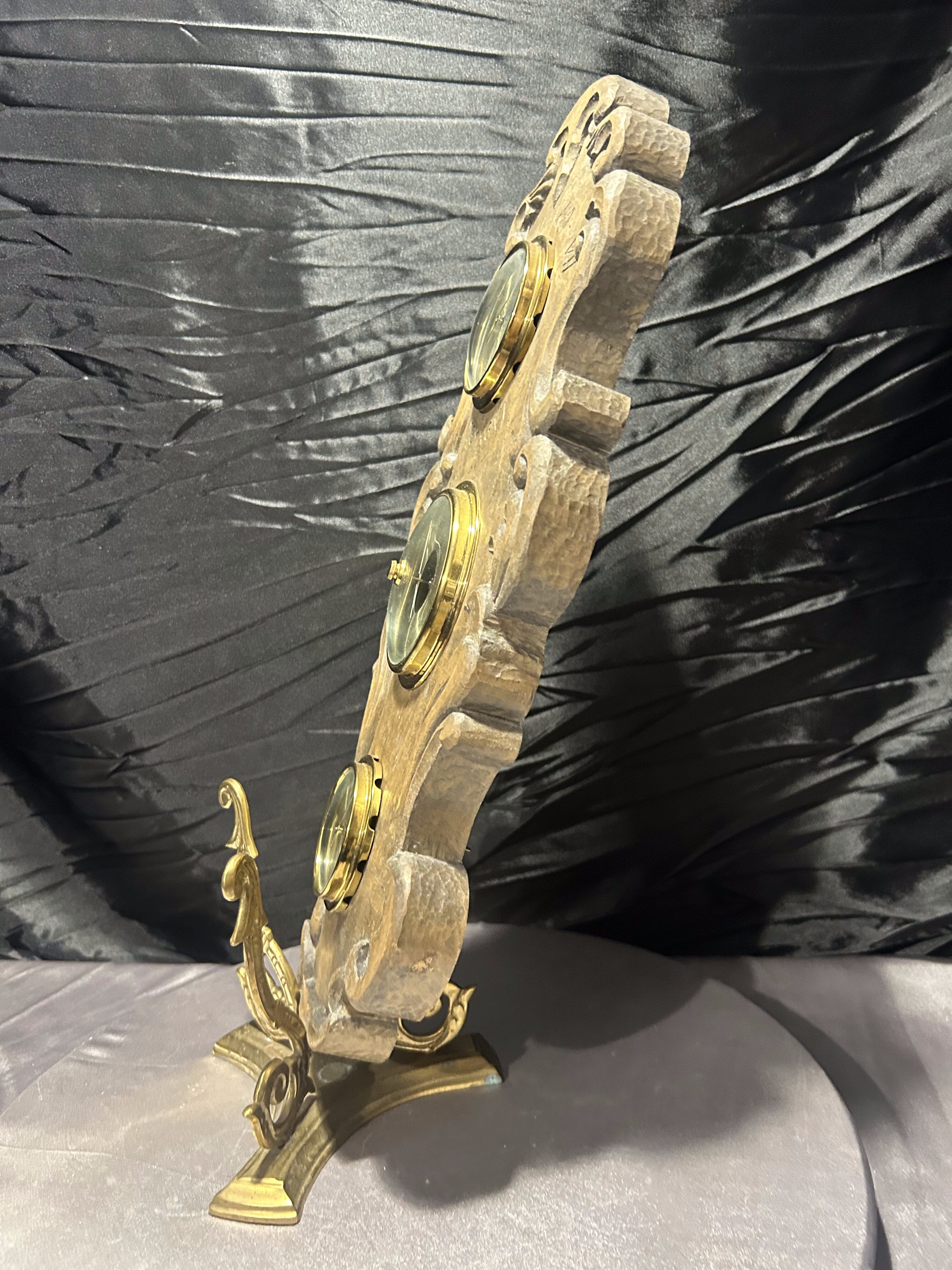 Mosiężne tarcze instrumentów w odcieniu starego złota pięknie kontrastują z ciepłym kolorem drewna, tworząc elegancką kompozycję o ponadczasowym uroku. Model ten stanowi zarówno precyzyjny przyrząd pomiarowy, jak i wyjątkową dekorację ścienną.