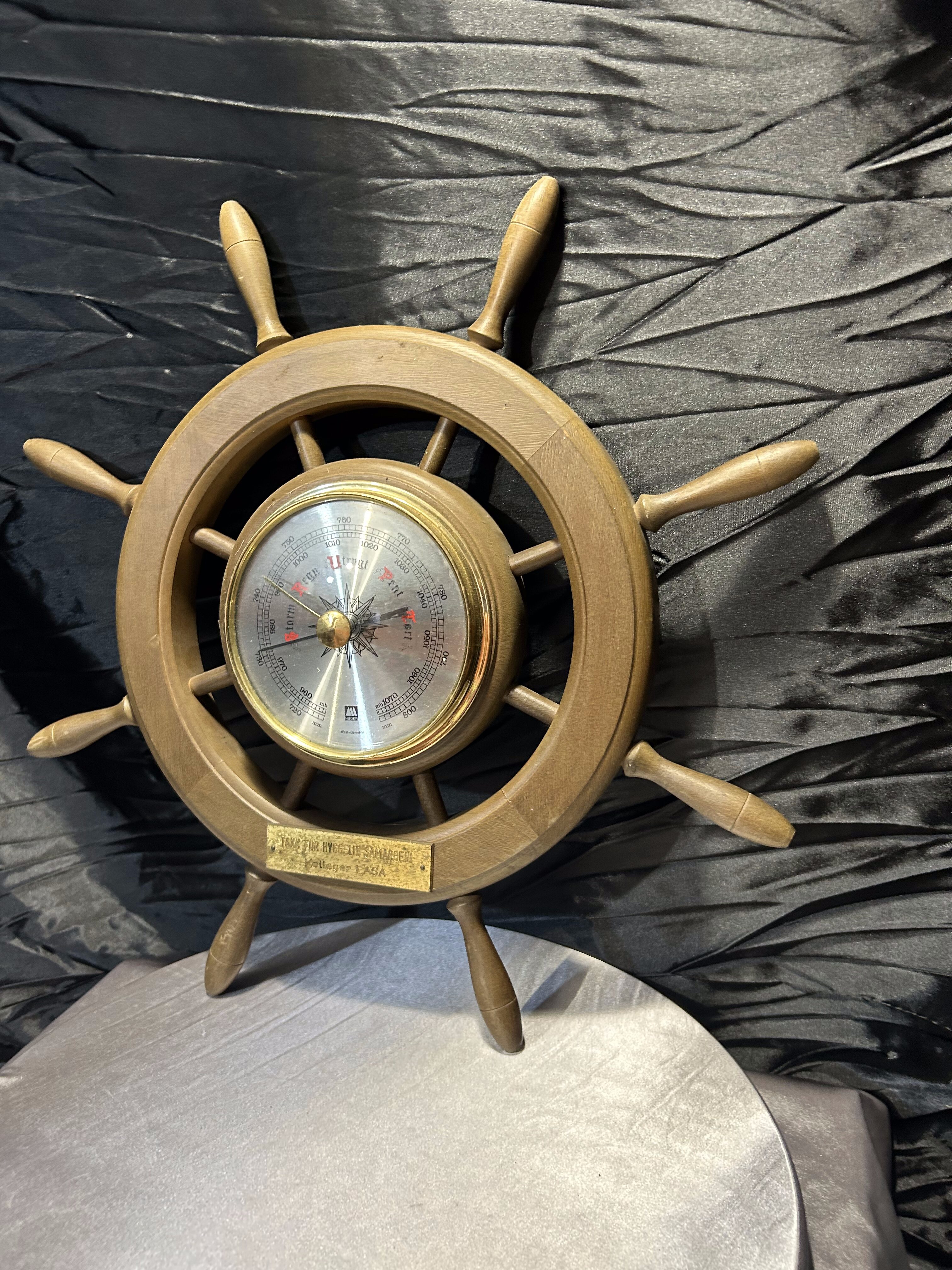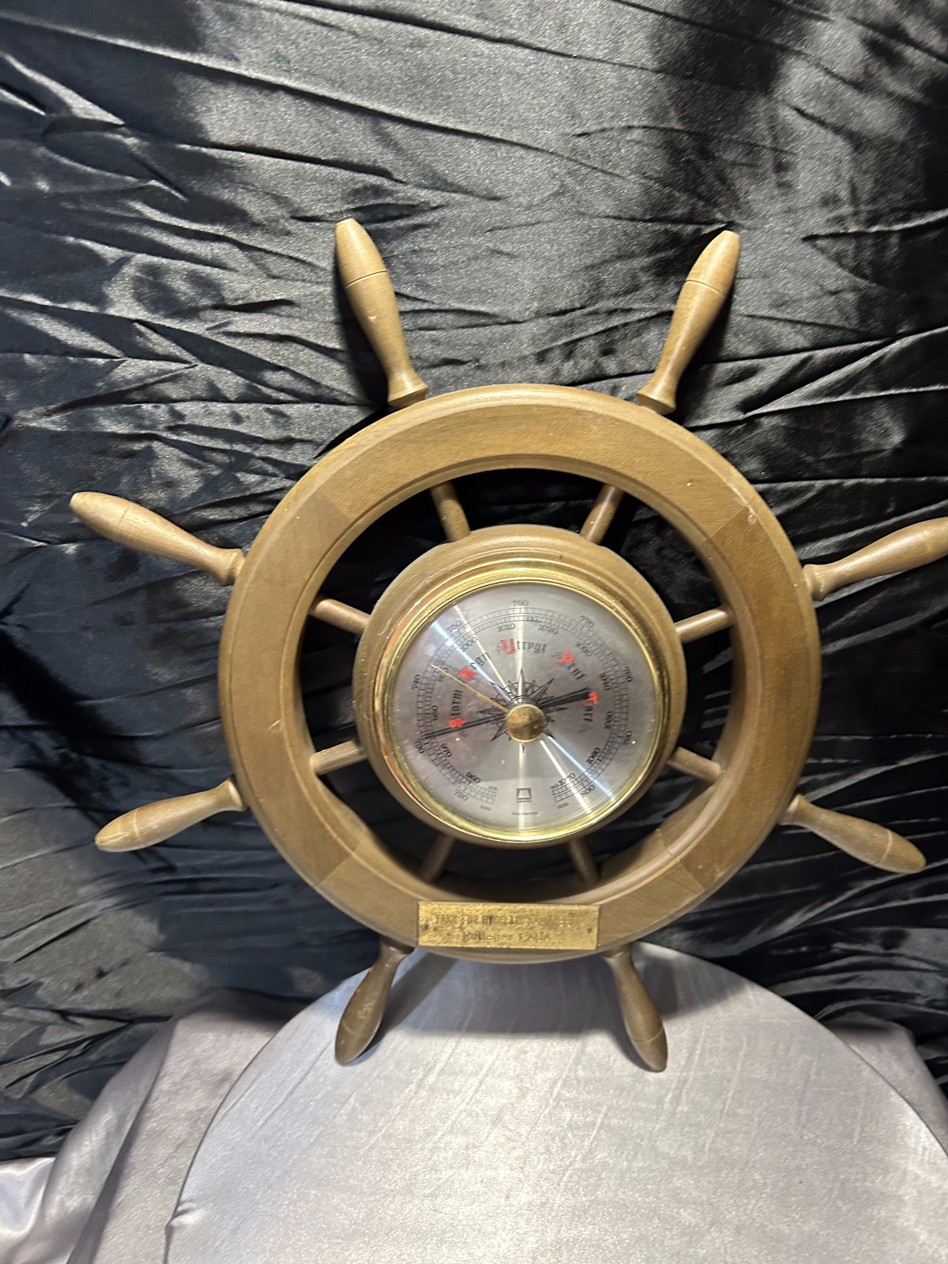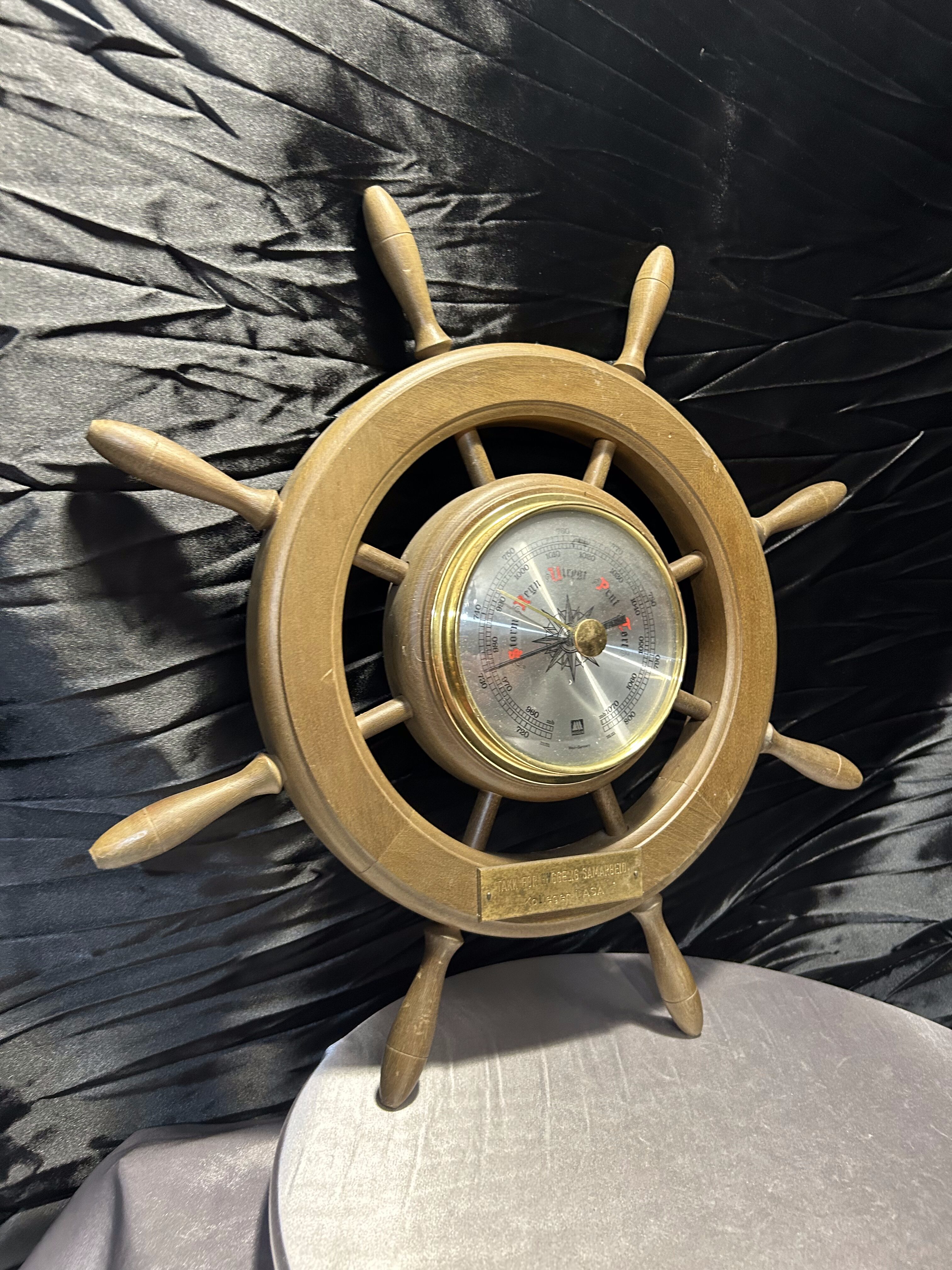 Ten barometr w drewnianej oprawie w kształcie koła sterniczego to nie tylko precyzyjne narzędzie pomiarowe, ale także wspaniała ozdoba wprowadzająca morską atmosferę do wnętrza. Idealny dla miłośników żeglarstwa i dekoracji inspirowanych morzem.