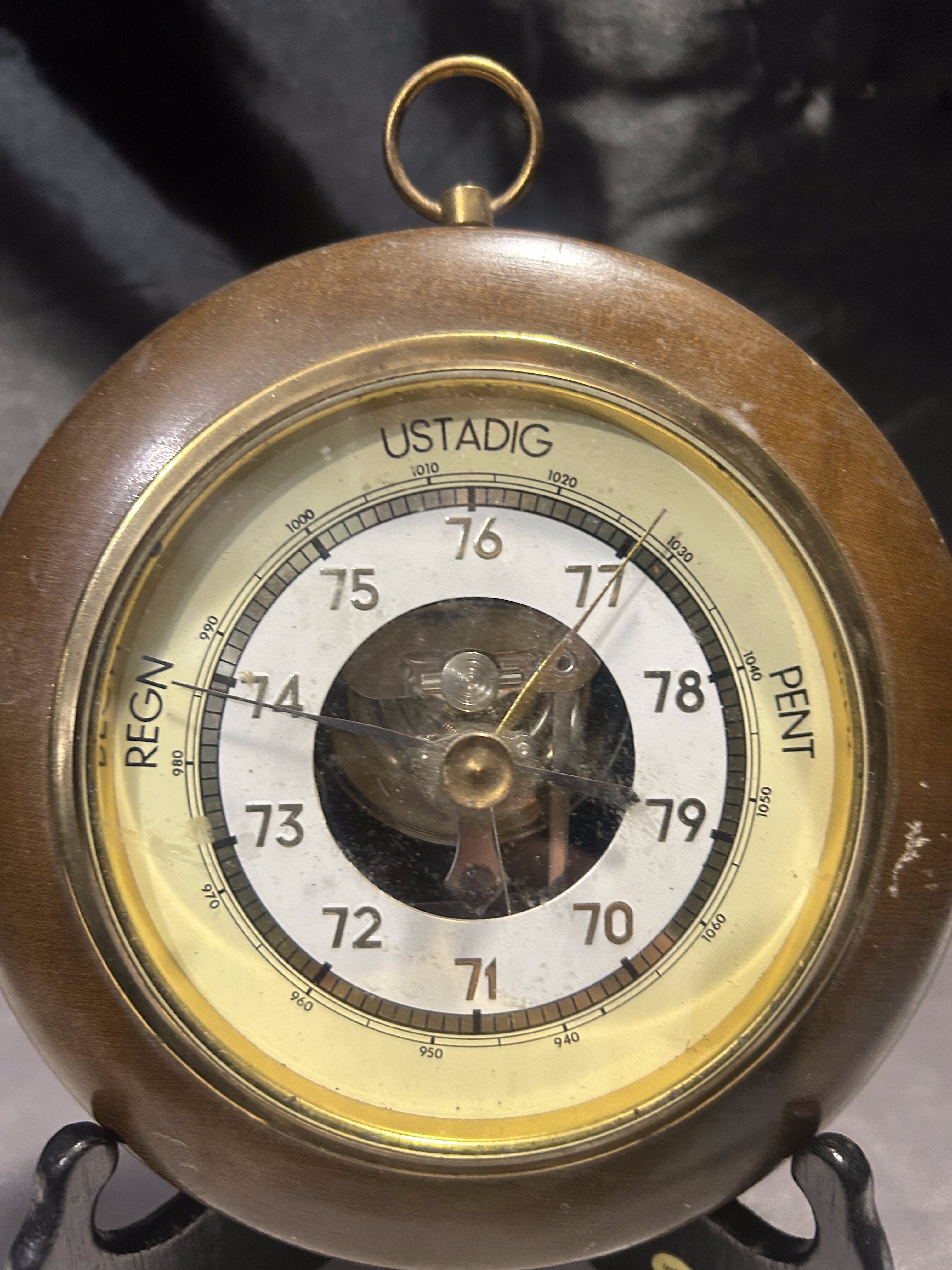 Barometr okrągły z mosiężną trąbką – Kolekcjonerski egzemplarz – Unikat