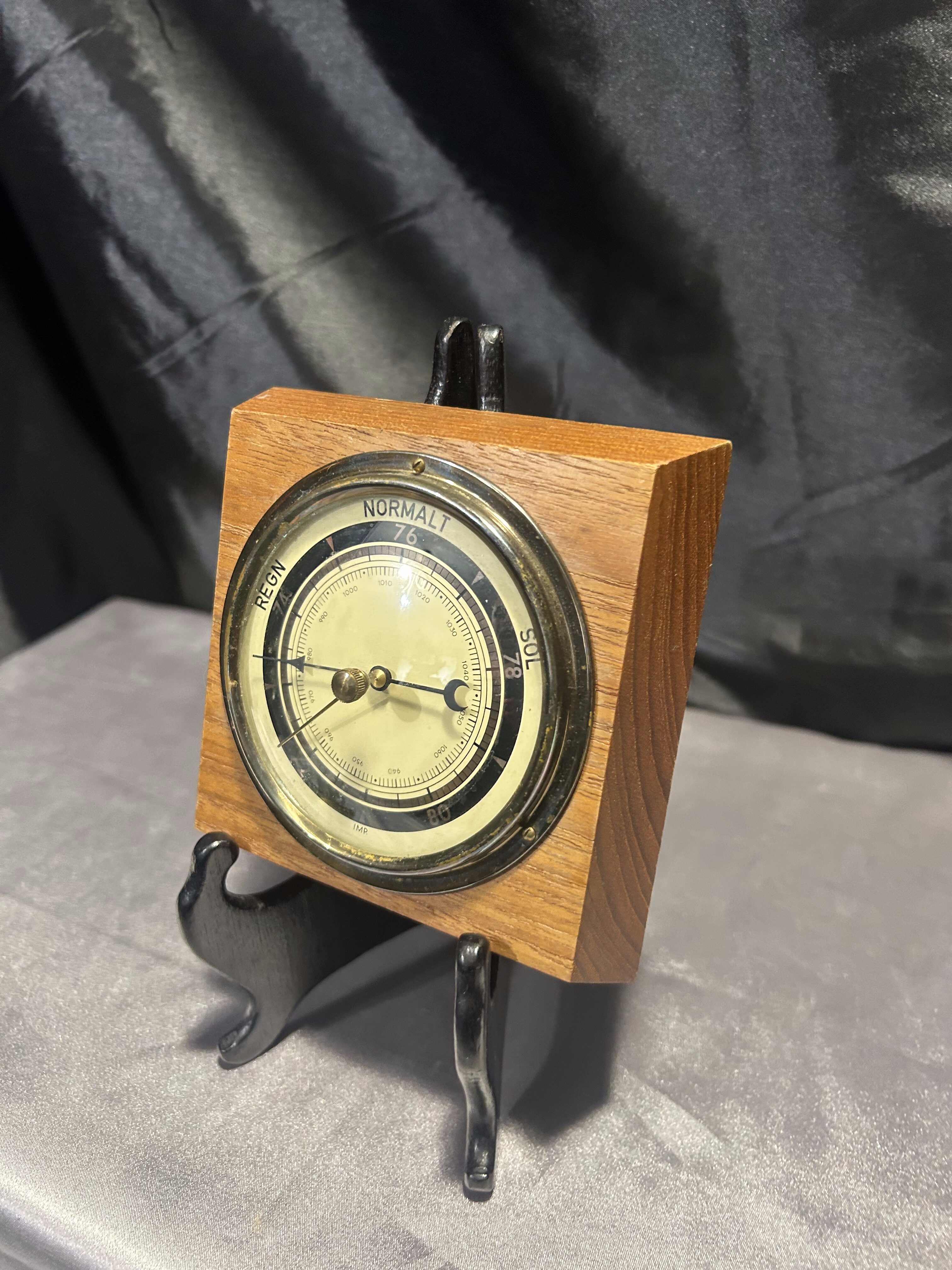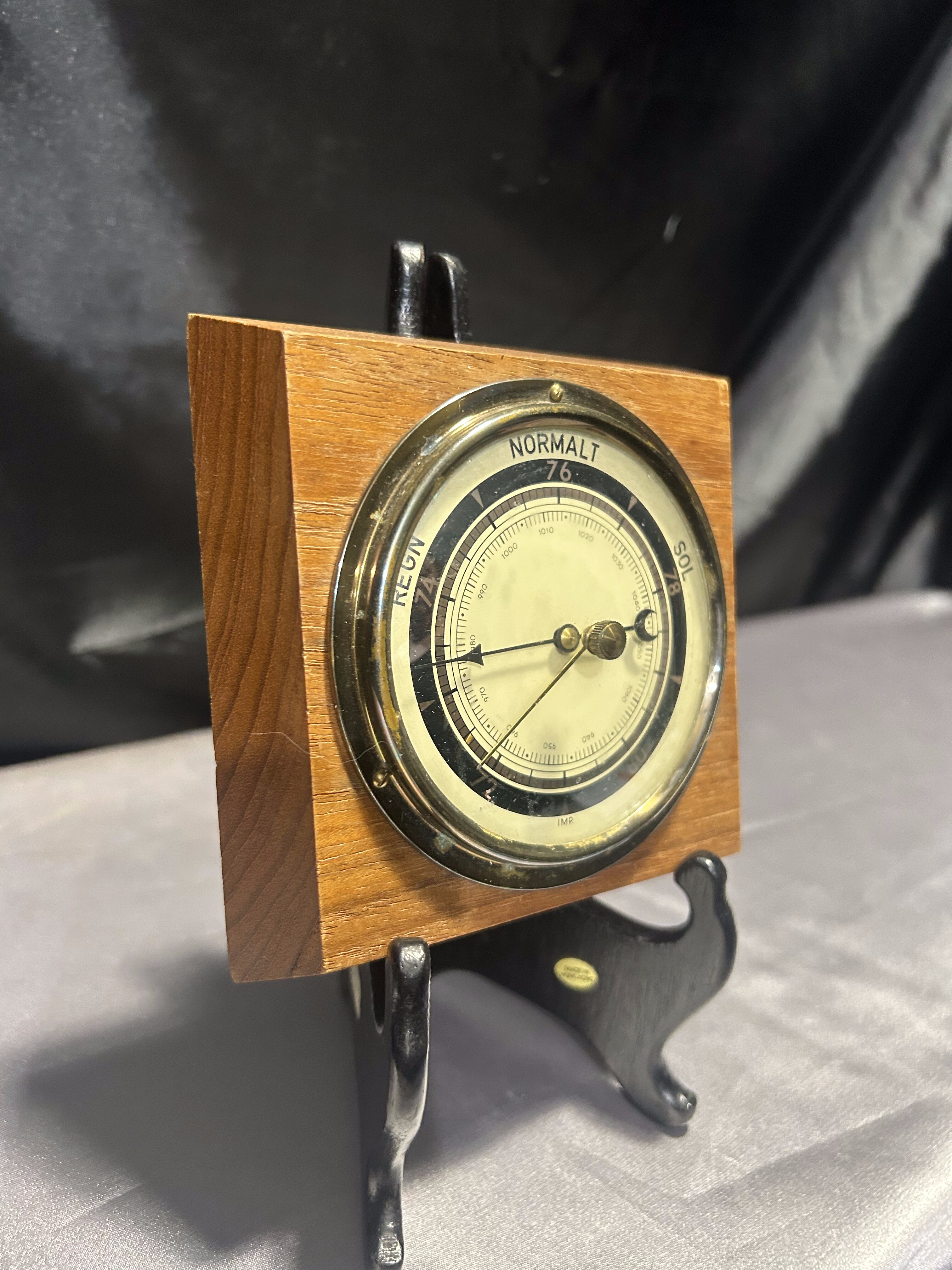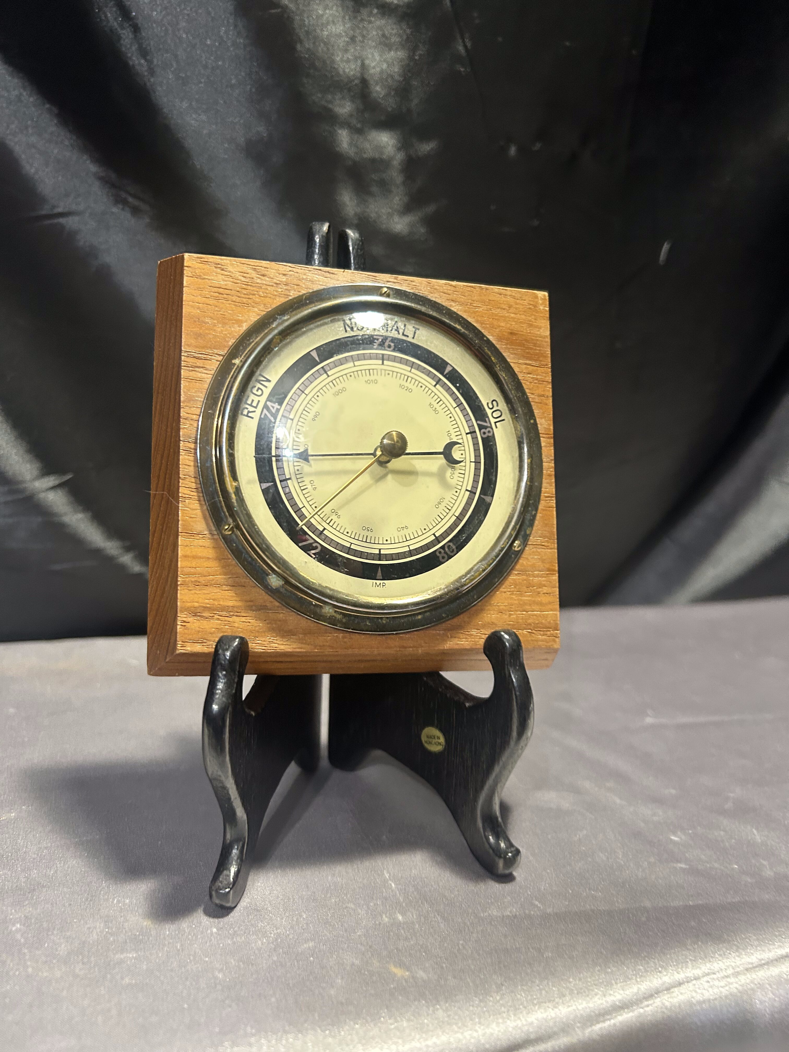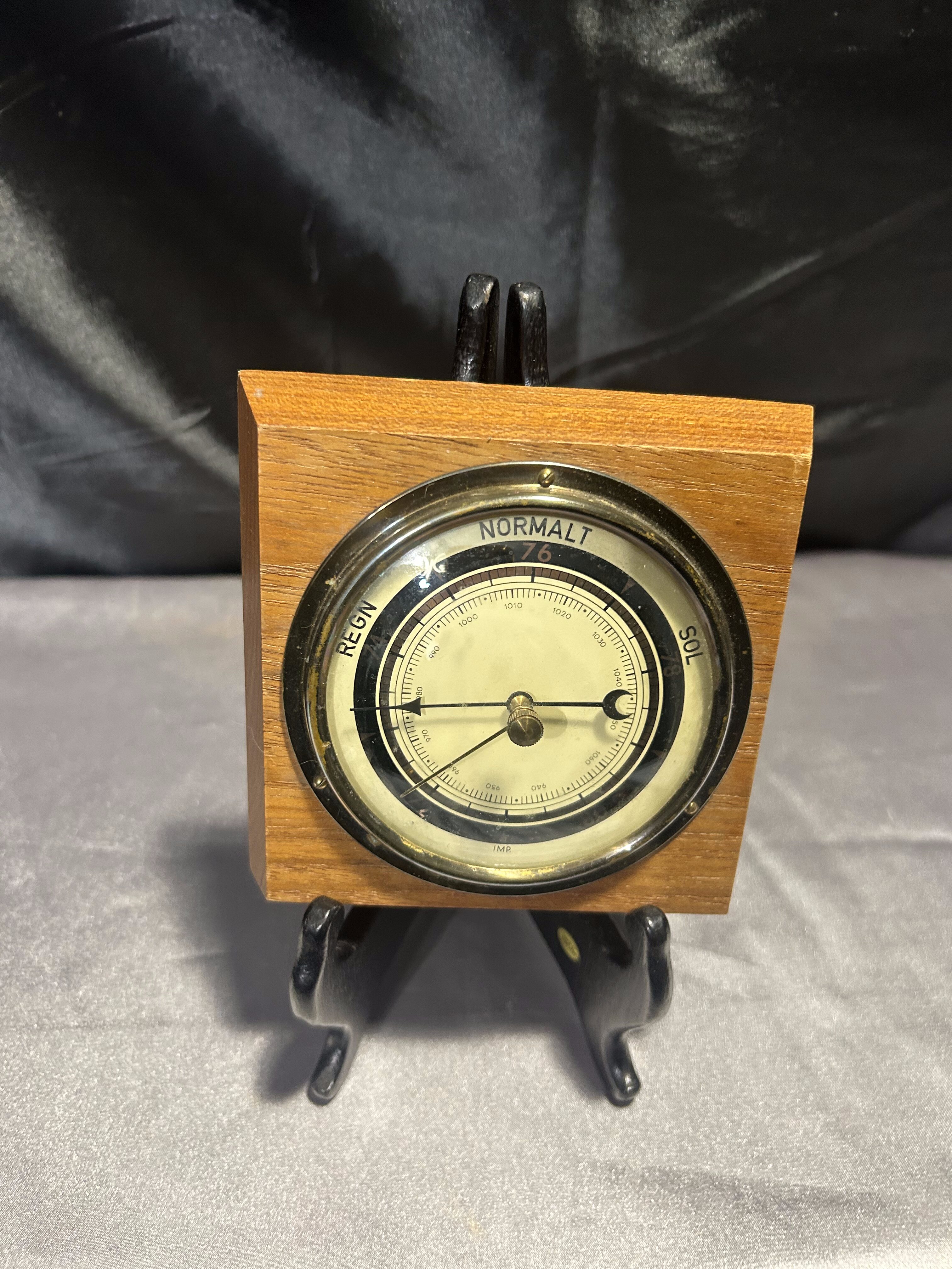 Barometr okrągły – W kwadratowej drewnianej oprawie – Klasyczna forma