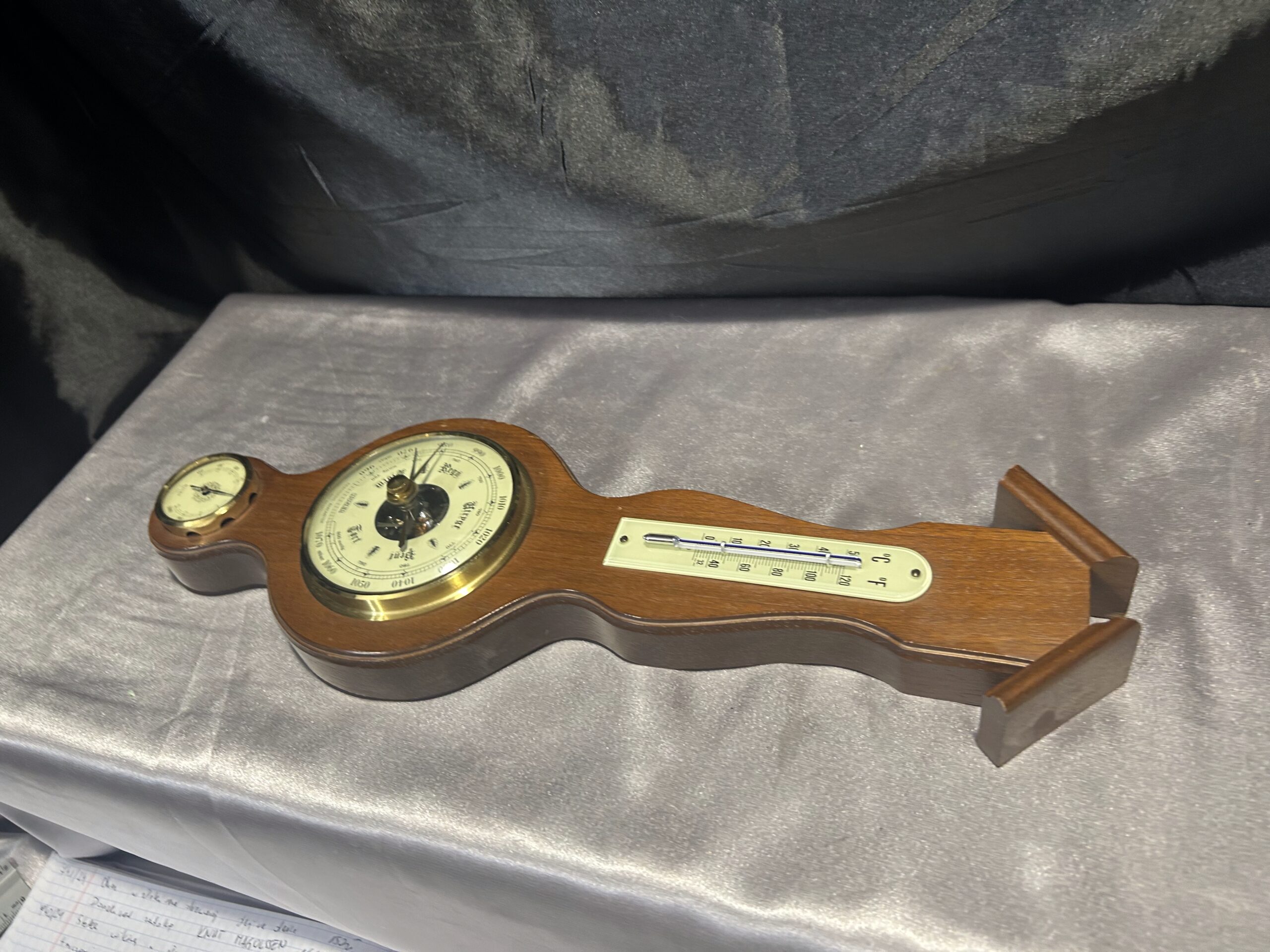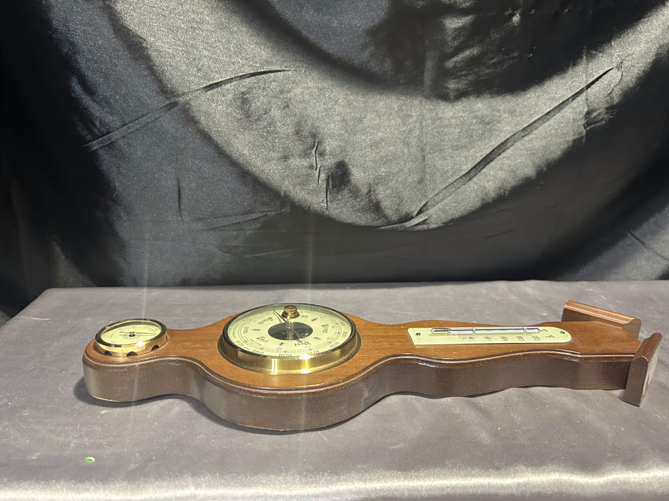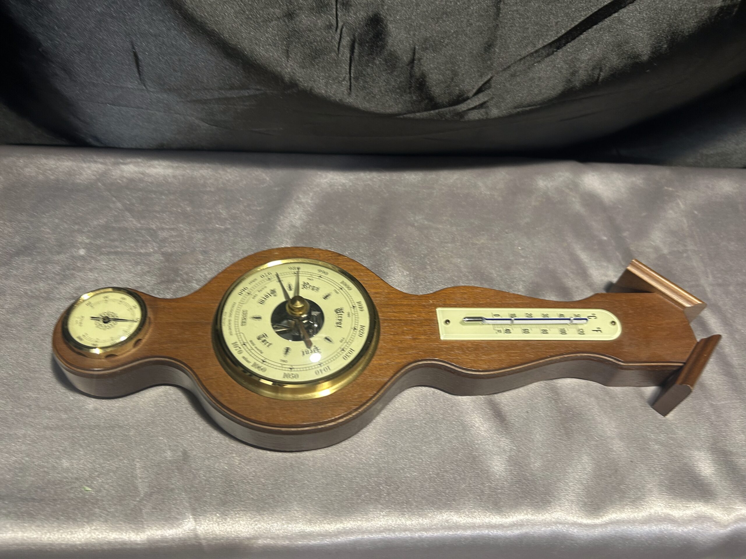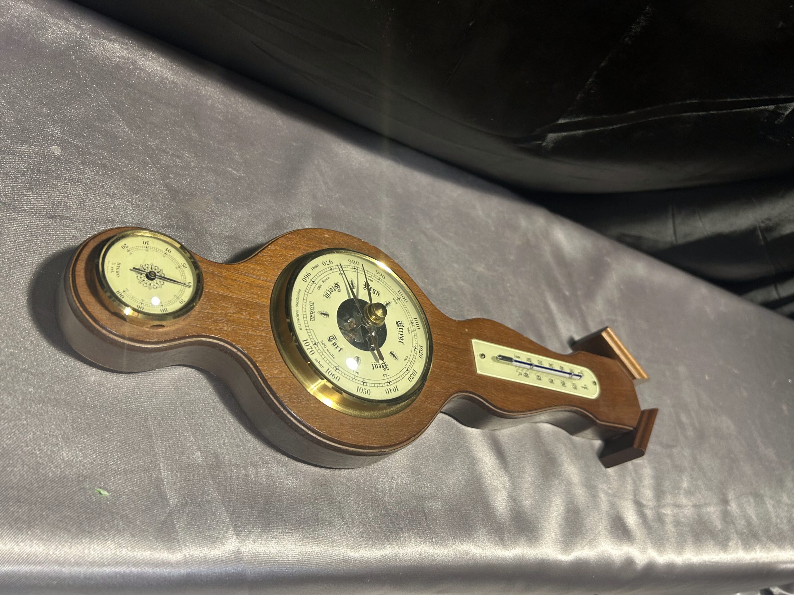 Przedmiotem oferty jest domowa stacja pogodowa 3w1, wyposażona w barometr, termometr i higrometr, osadzona w drewnianej ramie. To elegancki i funkcjonalny dodatek do wnętrza, który pozwala na monitorowanie warunków atmosferycznych.