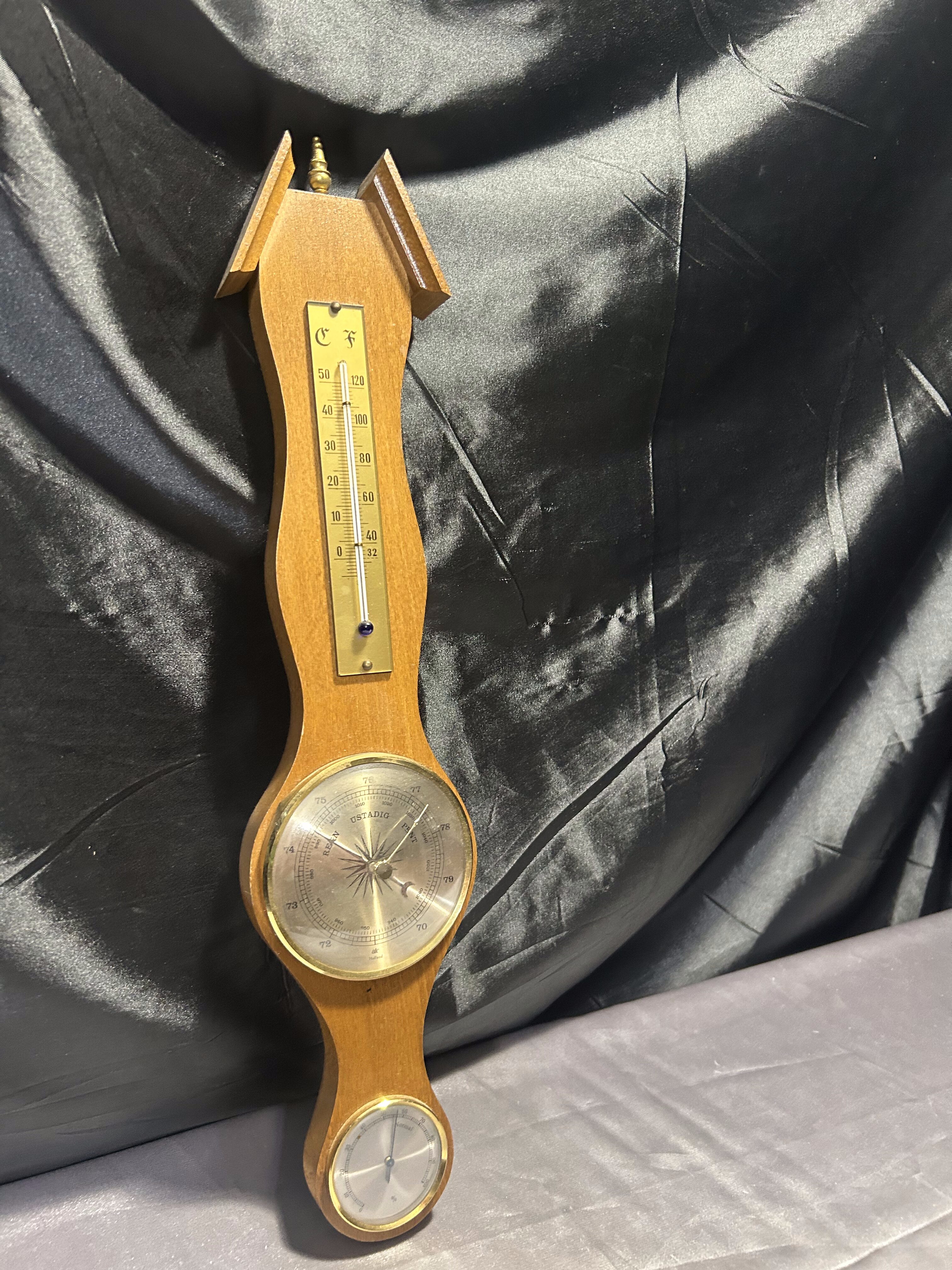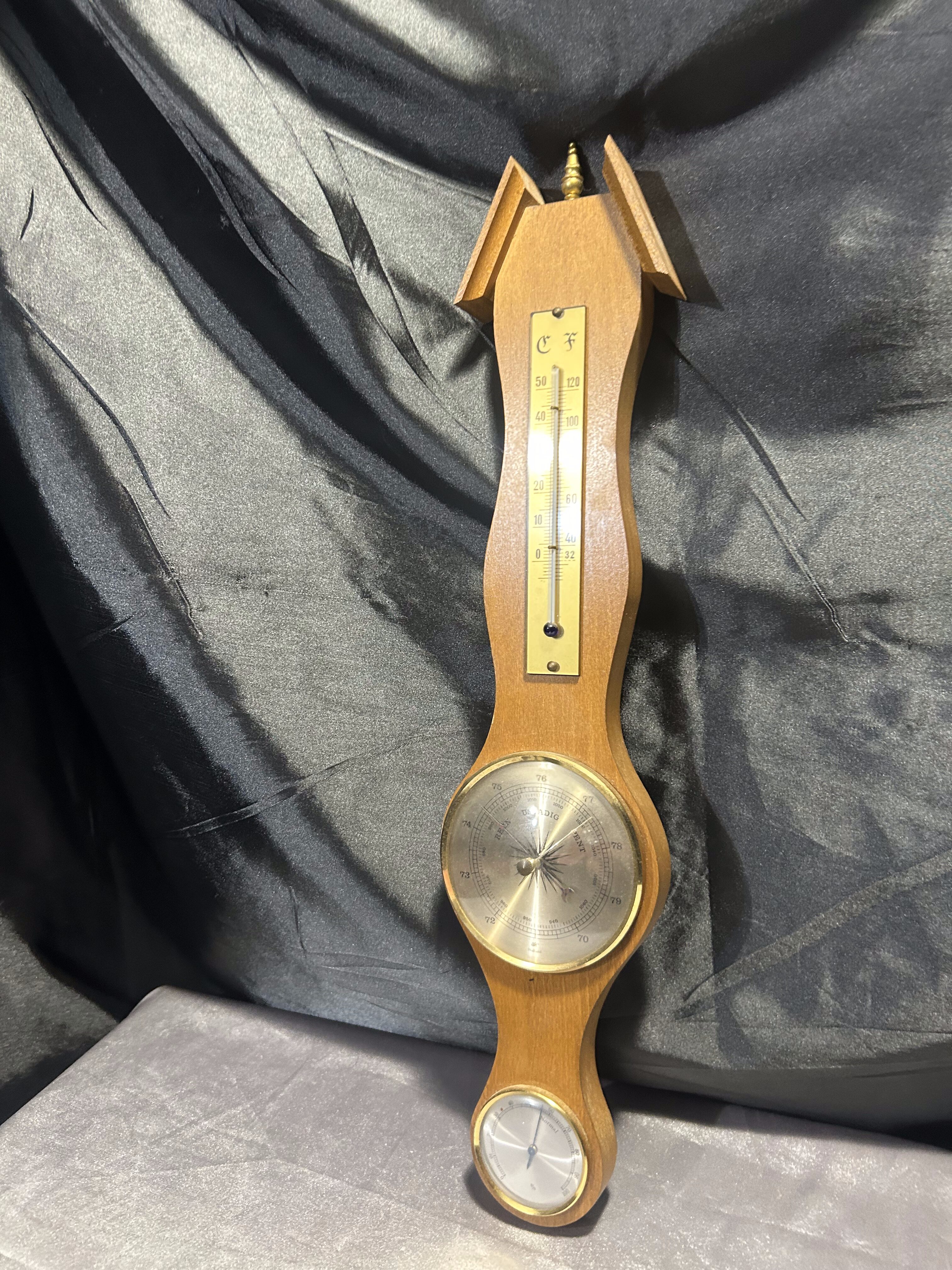 Barometr z termometrem i higrometrem – domowa stacja pogody 3 w 1 – drewniana oprawa