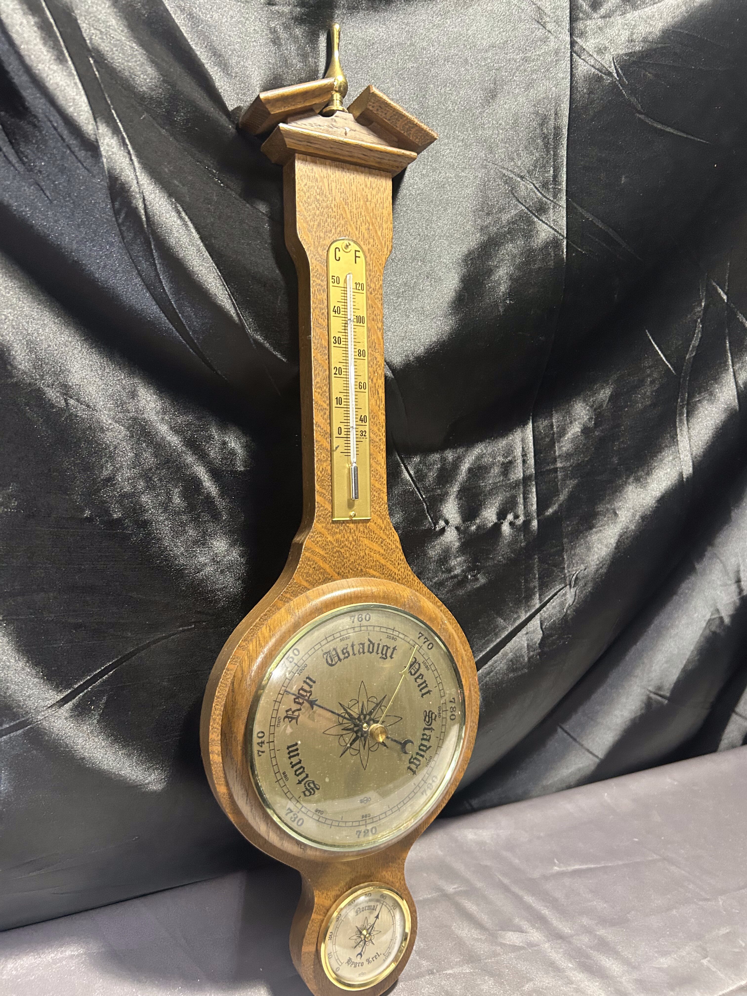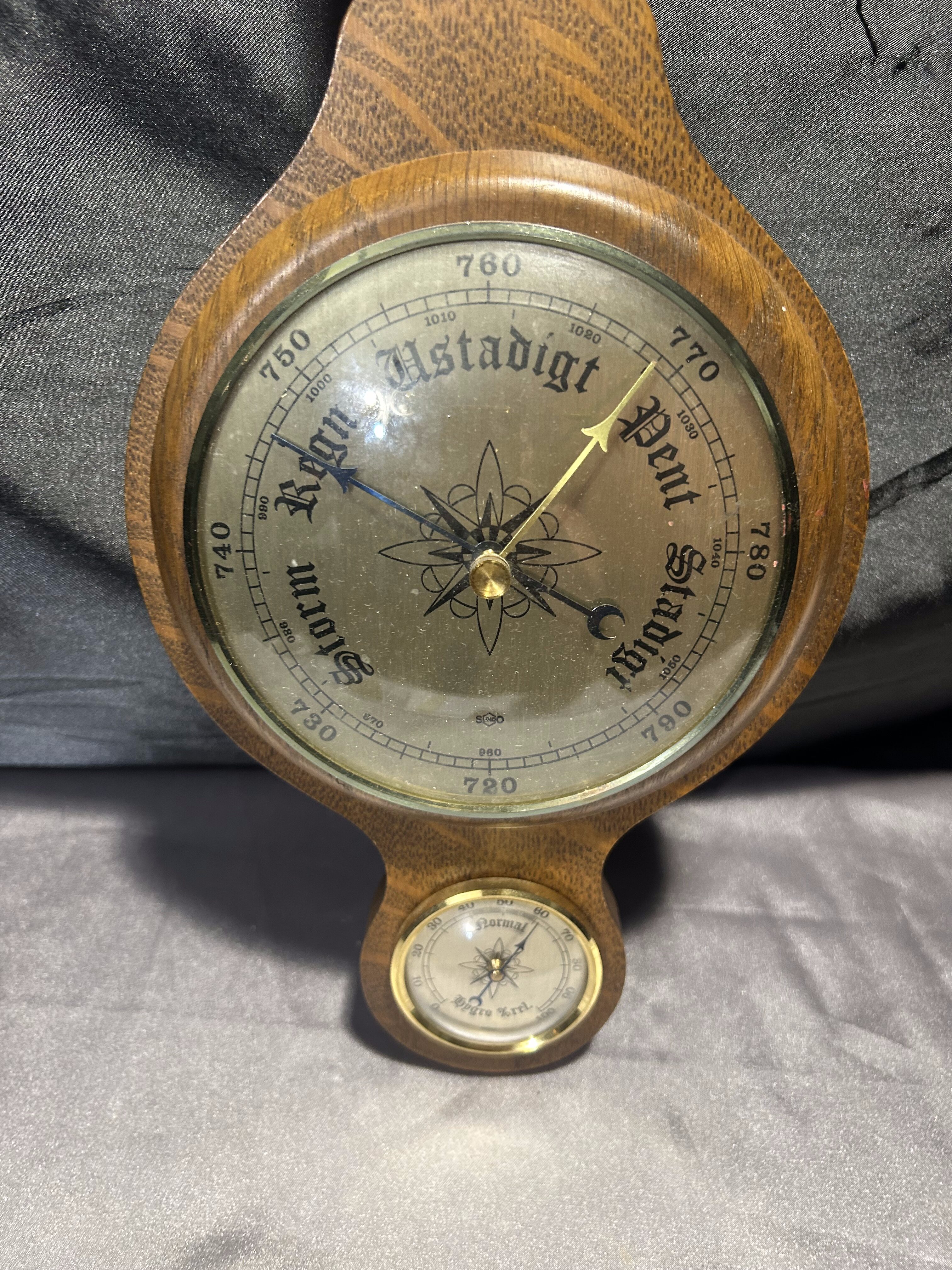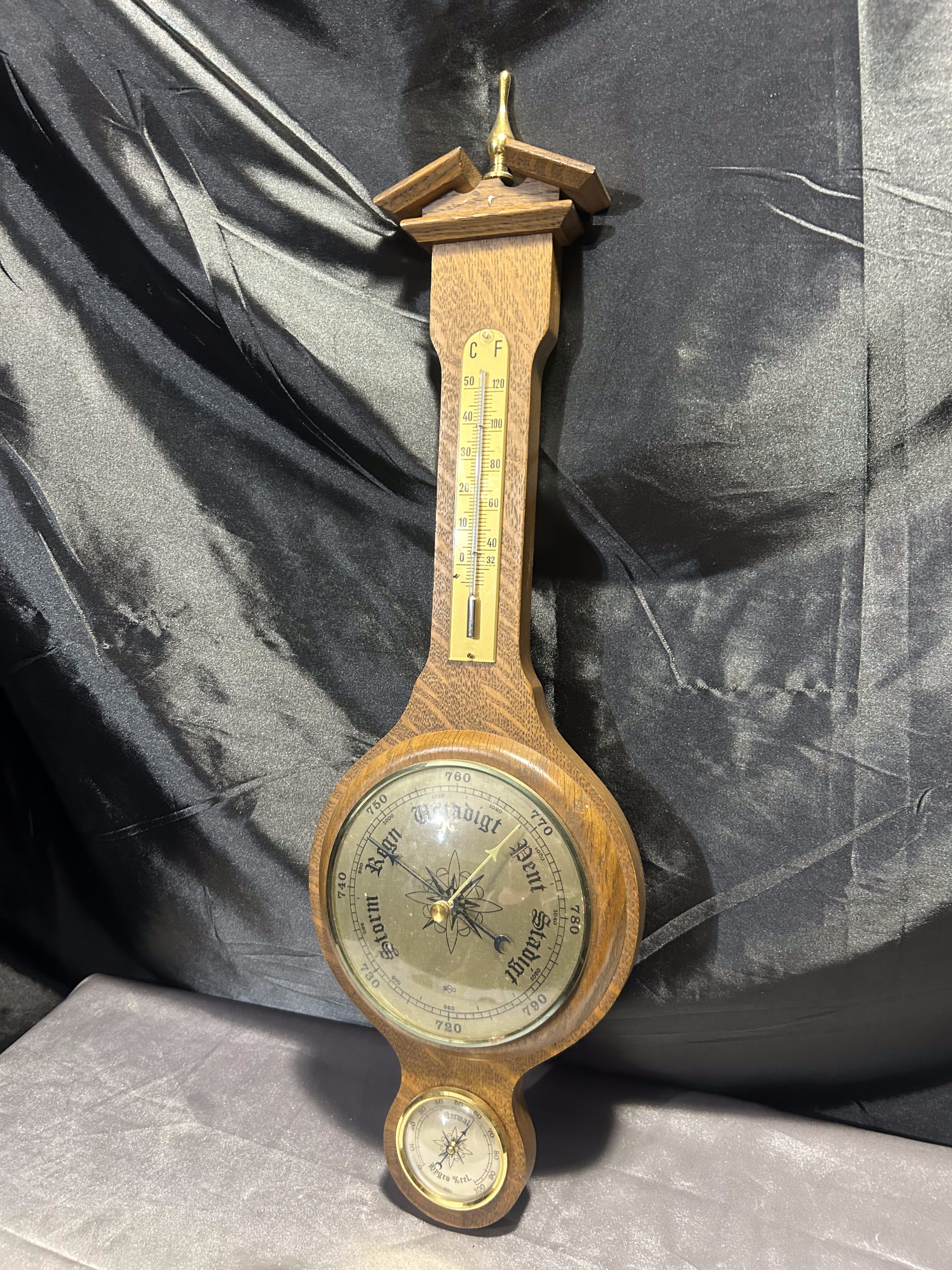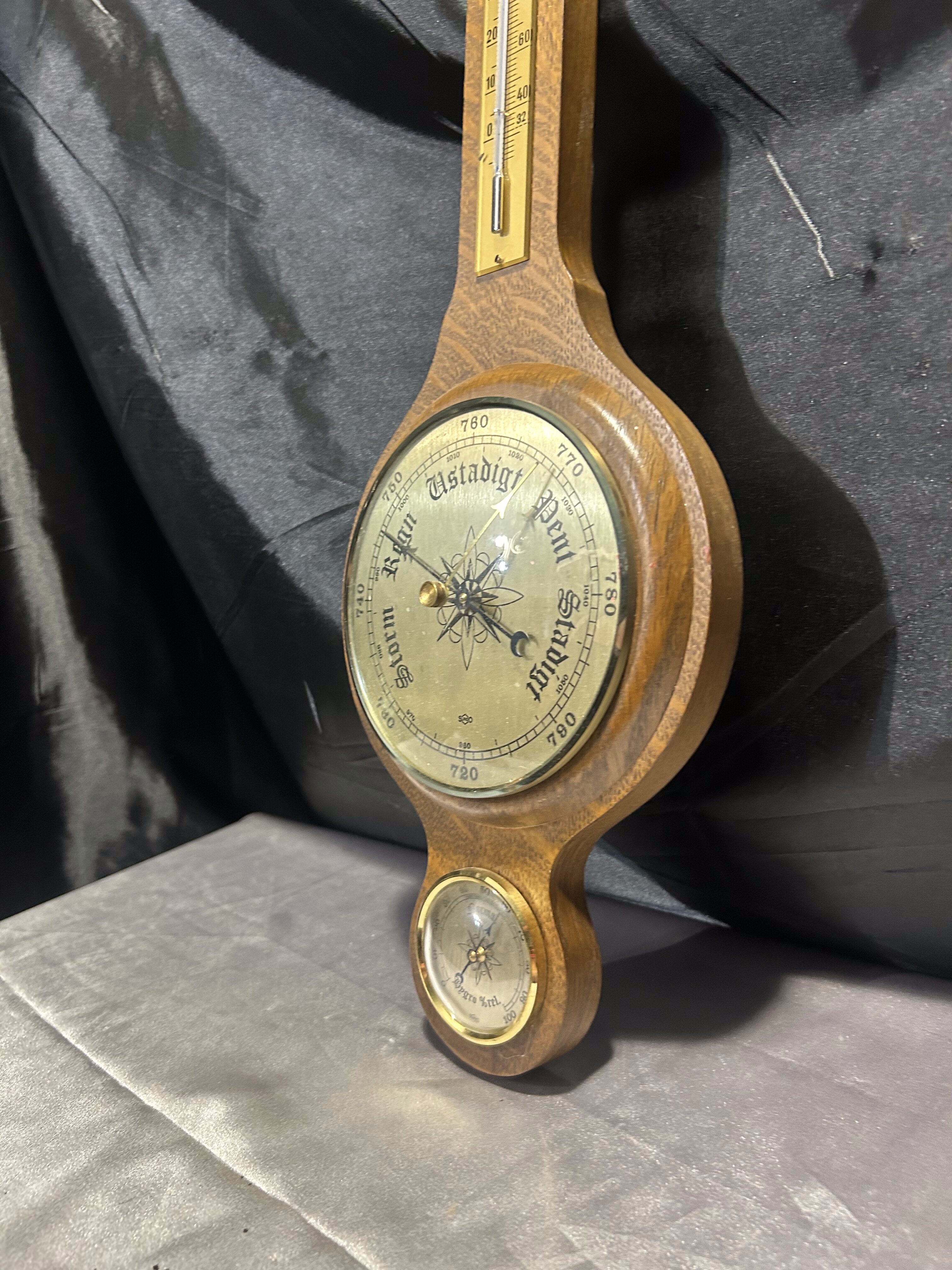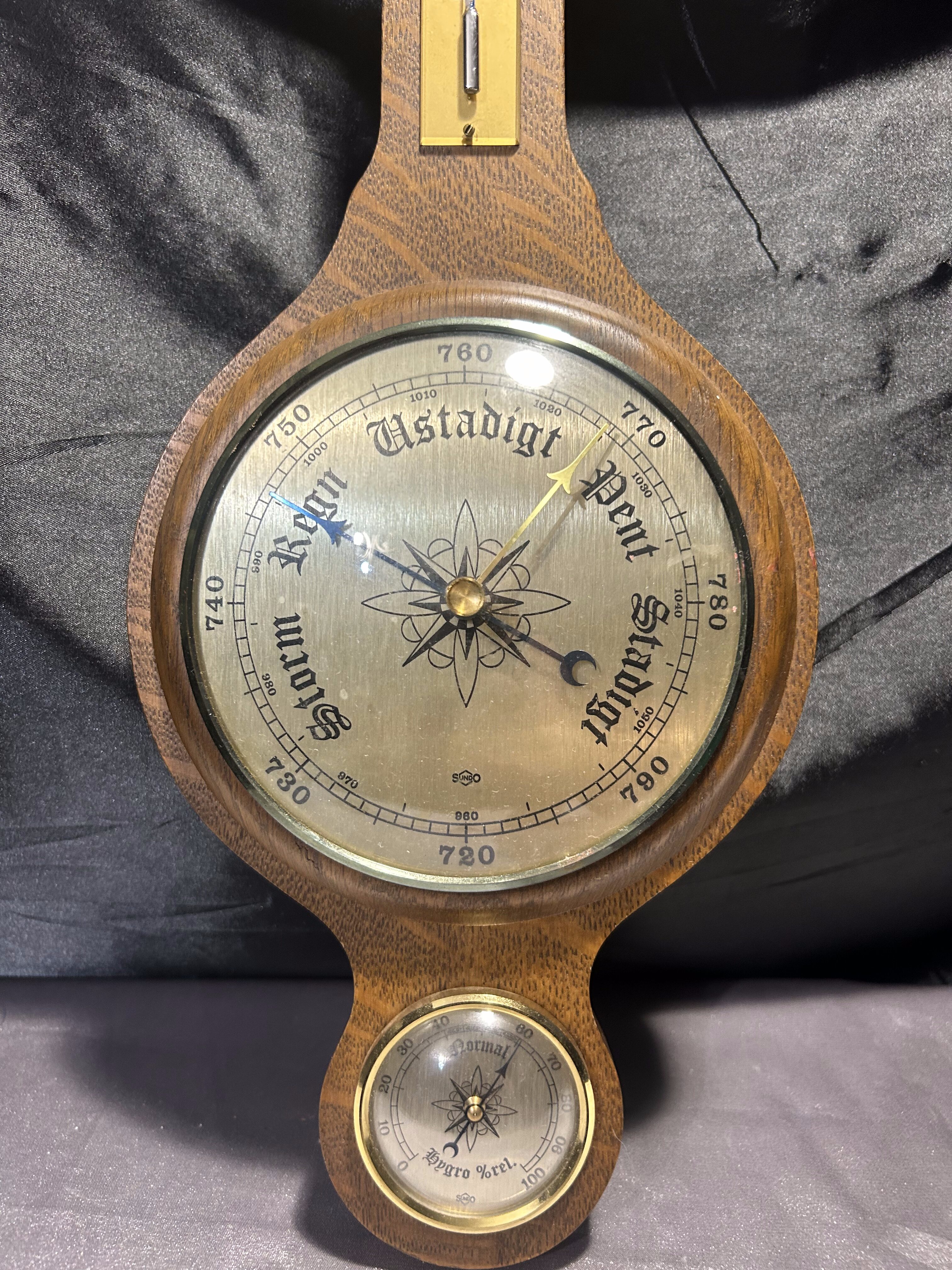 Duża domowa stacja meteorologiczna 3 w 1 marki SUNDO, łącząca barometr, termometr i higrometr w jednej, eleganckiej formie. Osadzona w solidnej drewnianej oprawie, prezentuje się klasycznie i efektownie – idealna do powieszenia w salonie, gabinecie lub holu. Przejrzyste tarcze i renomowana niemiecka marka gwarantują precyzję i niezawodność.