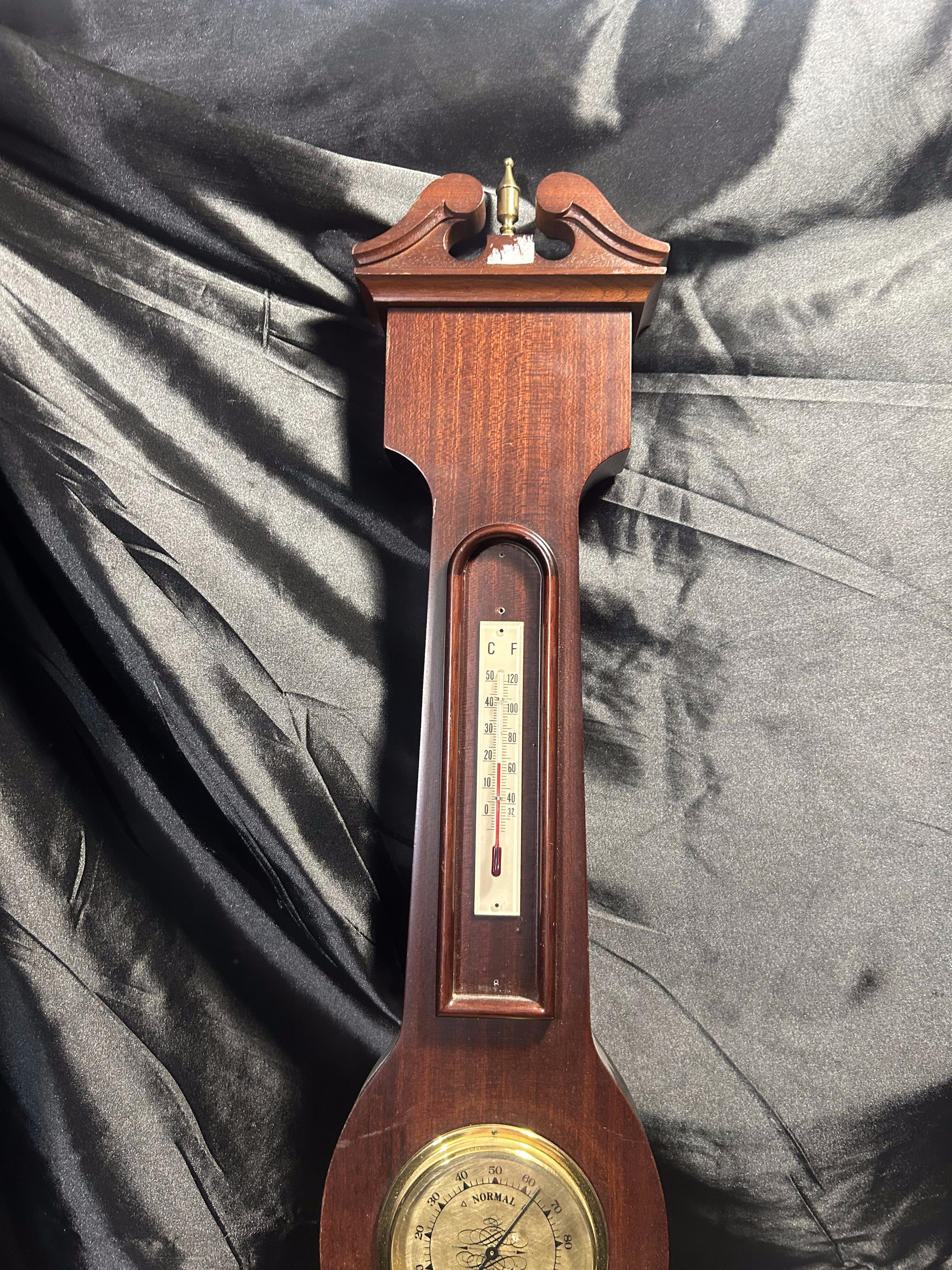 Barometr z termometrem – drewniana oprawa – stylowe zdobienia