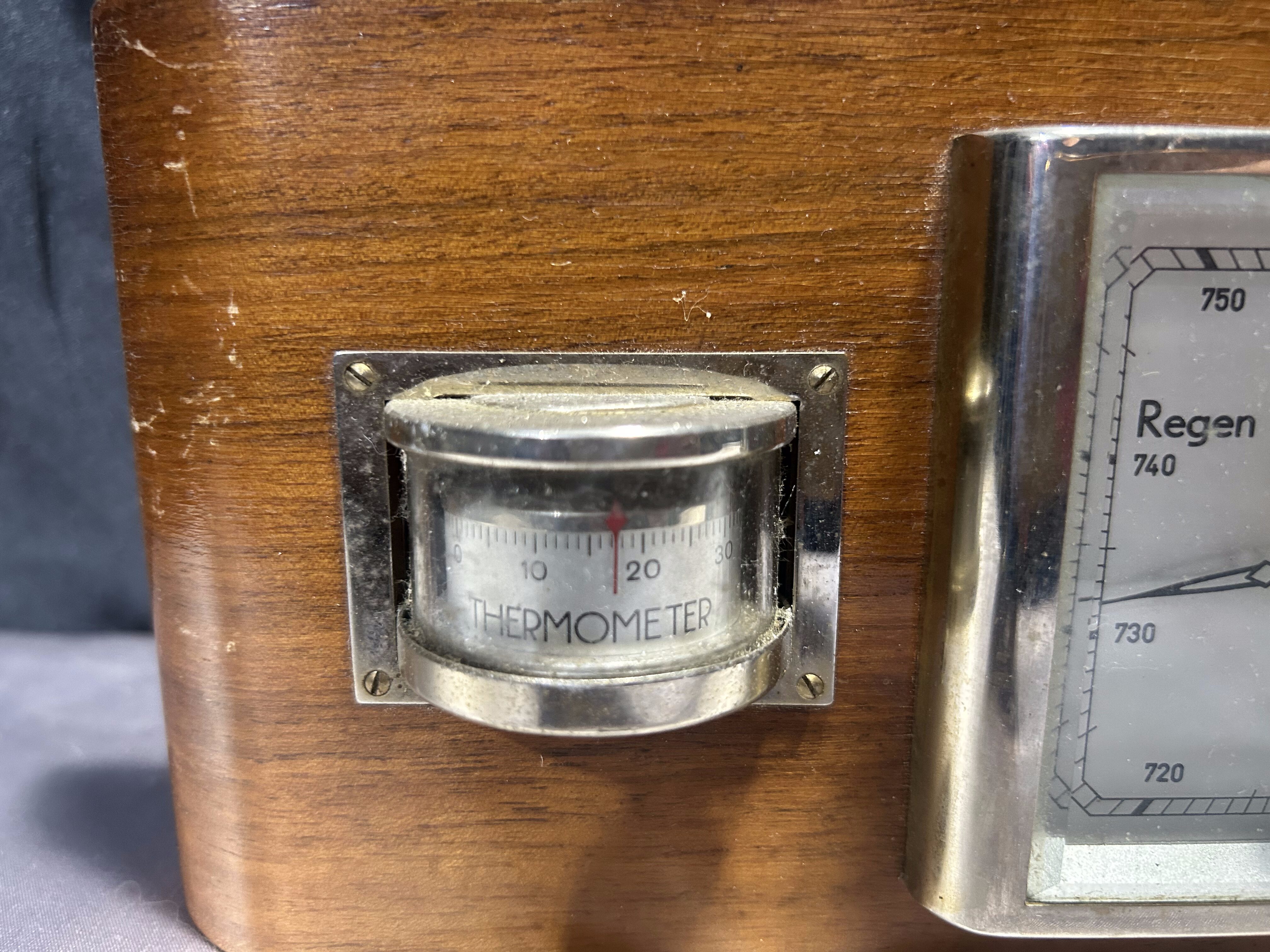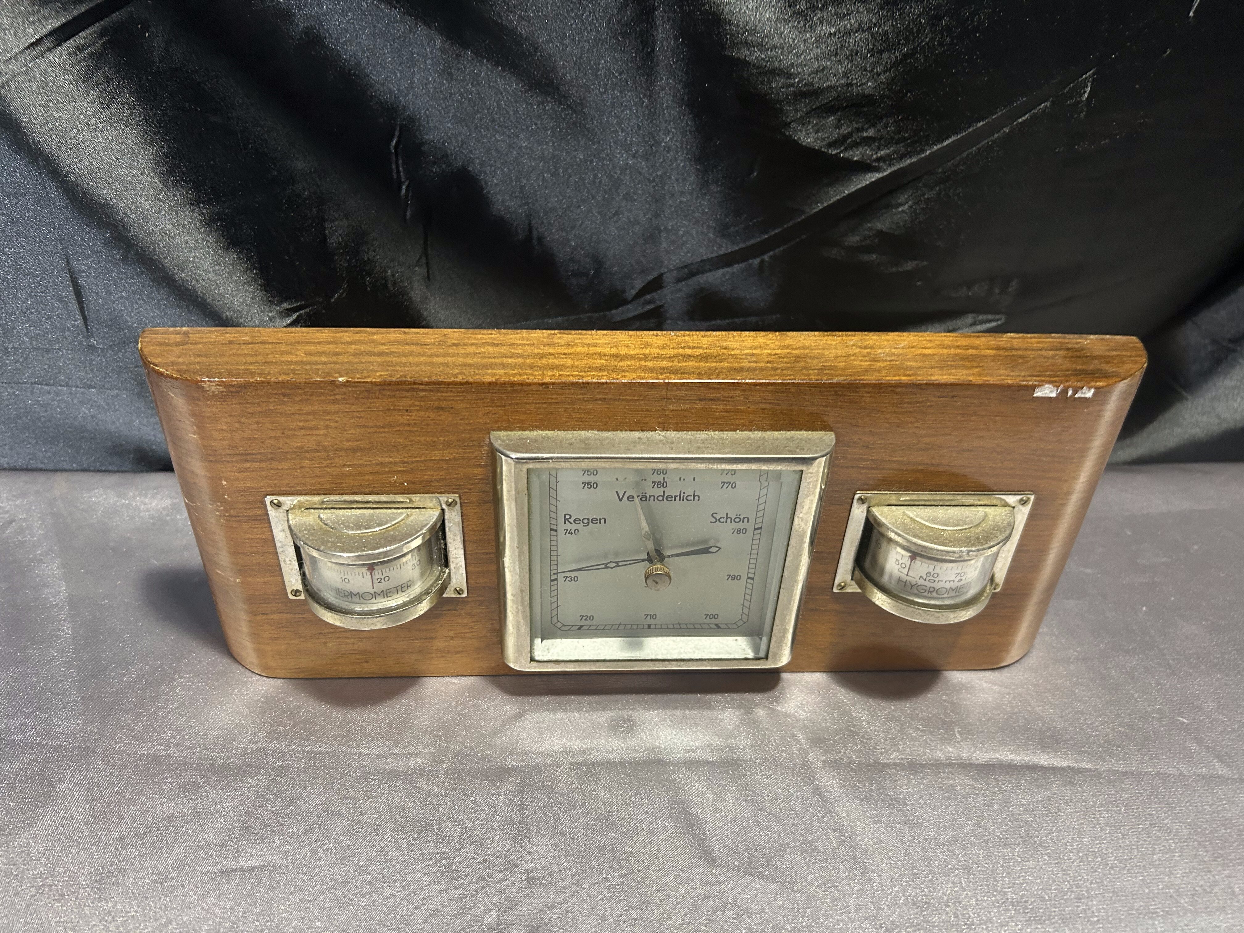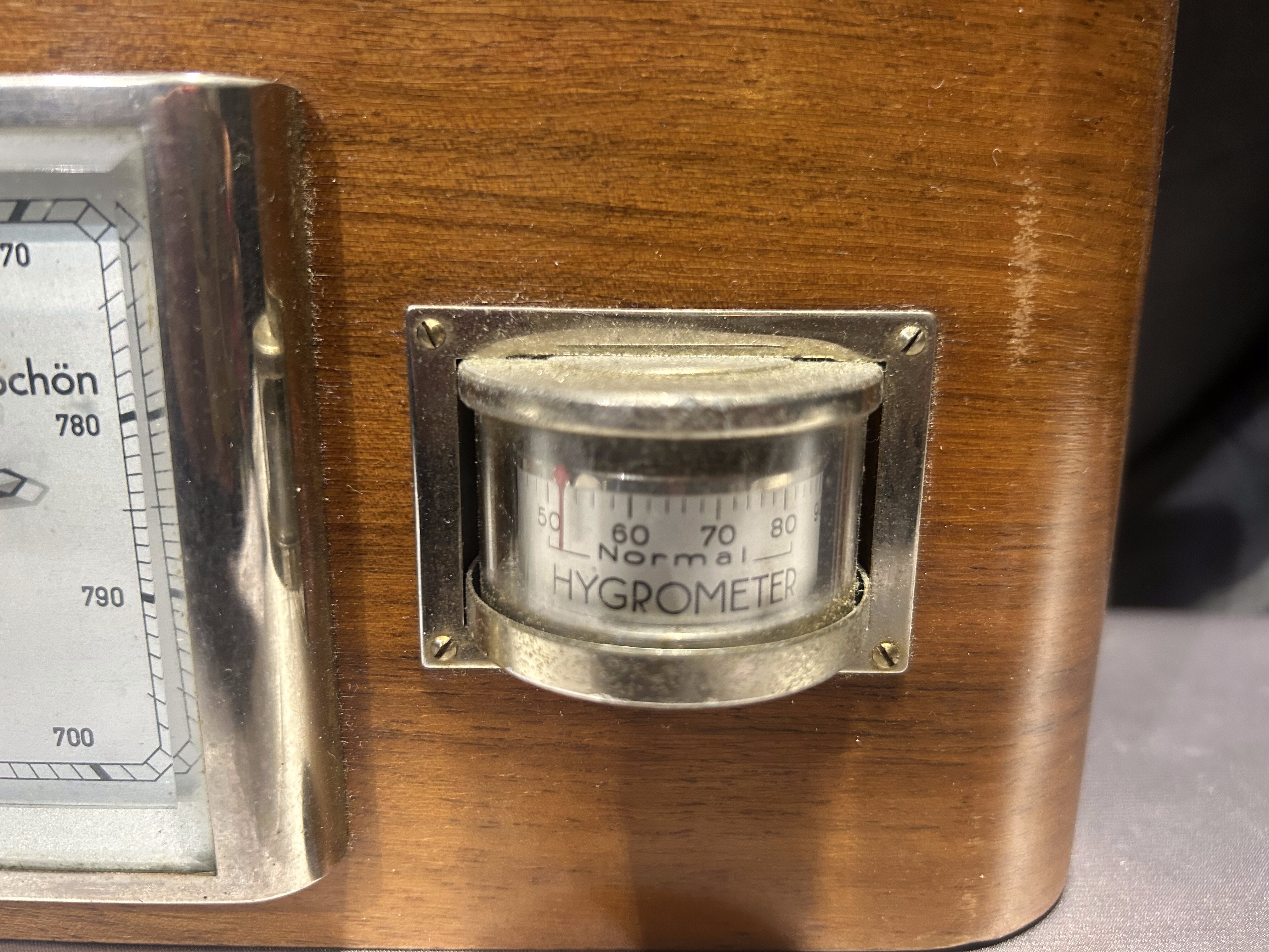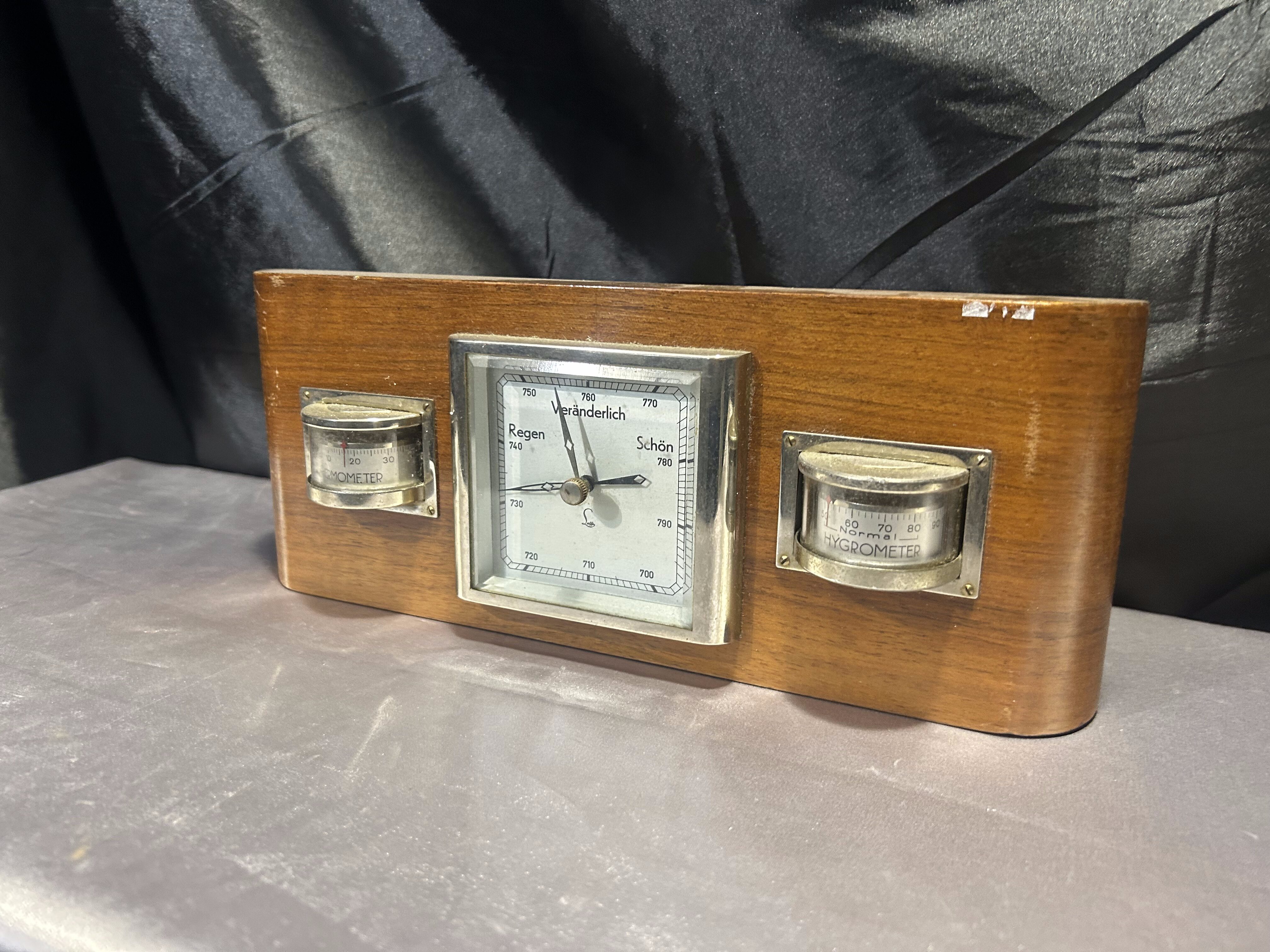 Wyjątkowa, kolekcjonerska stacja meteorologiczna 3 w 1 renomowanej marki LUFFT, w poziomej drewnianej oprawie. Barometr ma klasyczną formę, natomiast termometr i higrometr wykonane są w formie precyzyjnych skal – co czyni ten egzemplarz unikatowym i niezwykle efektownym. Idealny dla pasjonatów meteorologii, kolekcjonerów i miłośników nietypowych form.