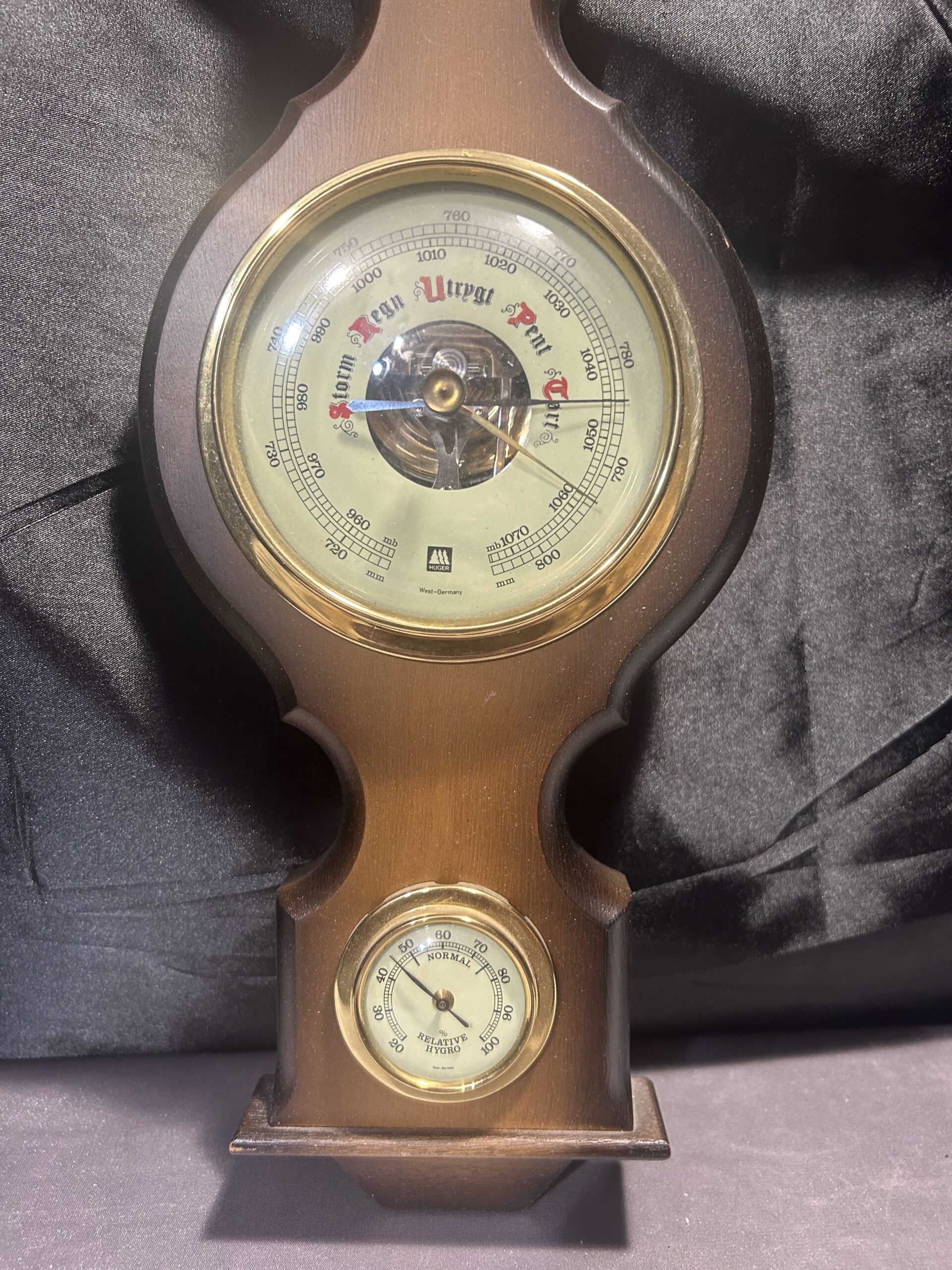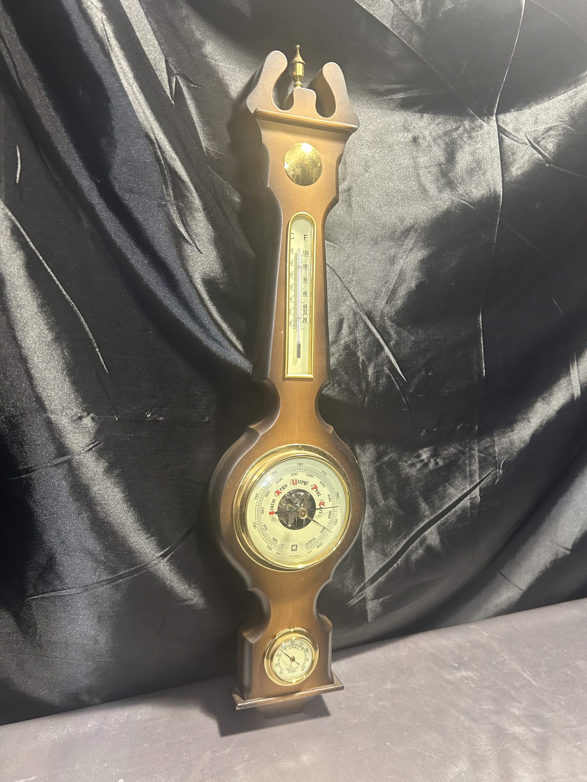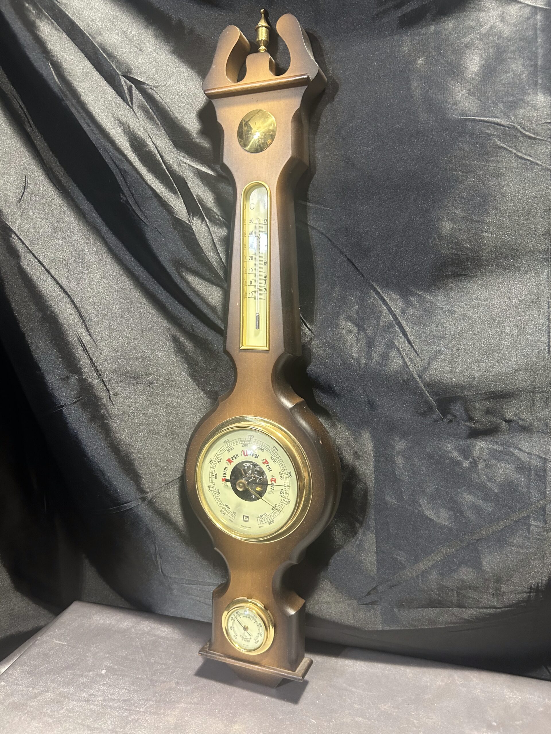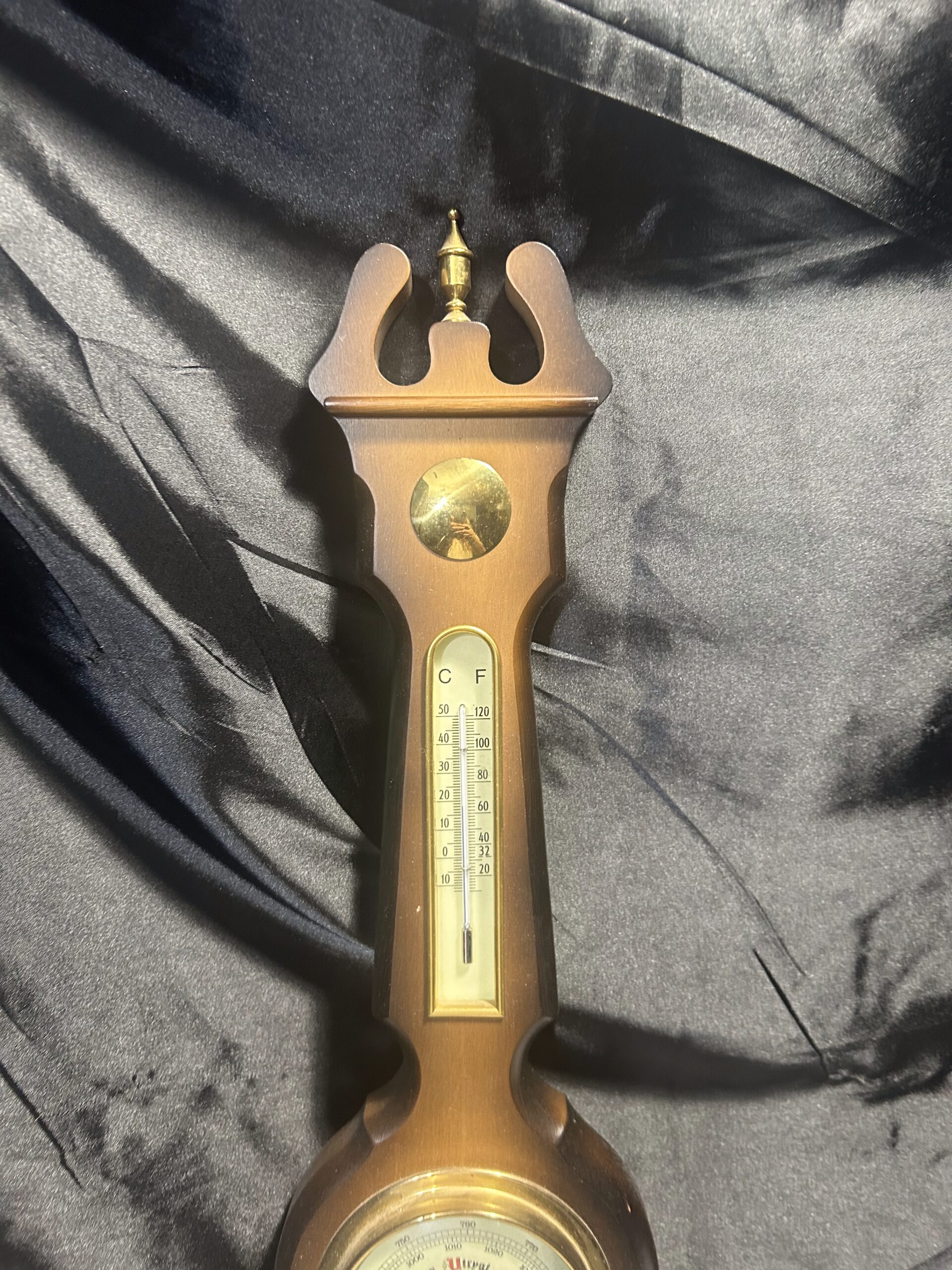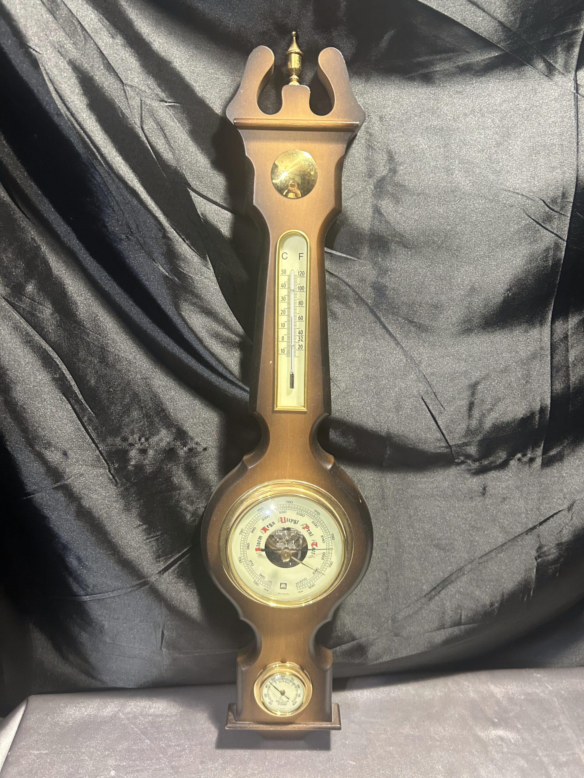 Stacja pogodowa w bardzo dobrym stanie, w pełni sprawna i gotowa do użytkowania. To idealny dodatek do wnętrz w klasycznym stylu, który łączy funkcjonalność z elegancką estetyką. Istnieje możliwość wysyłki po wcześniejszym ustaleniu szczegółów.
