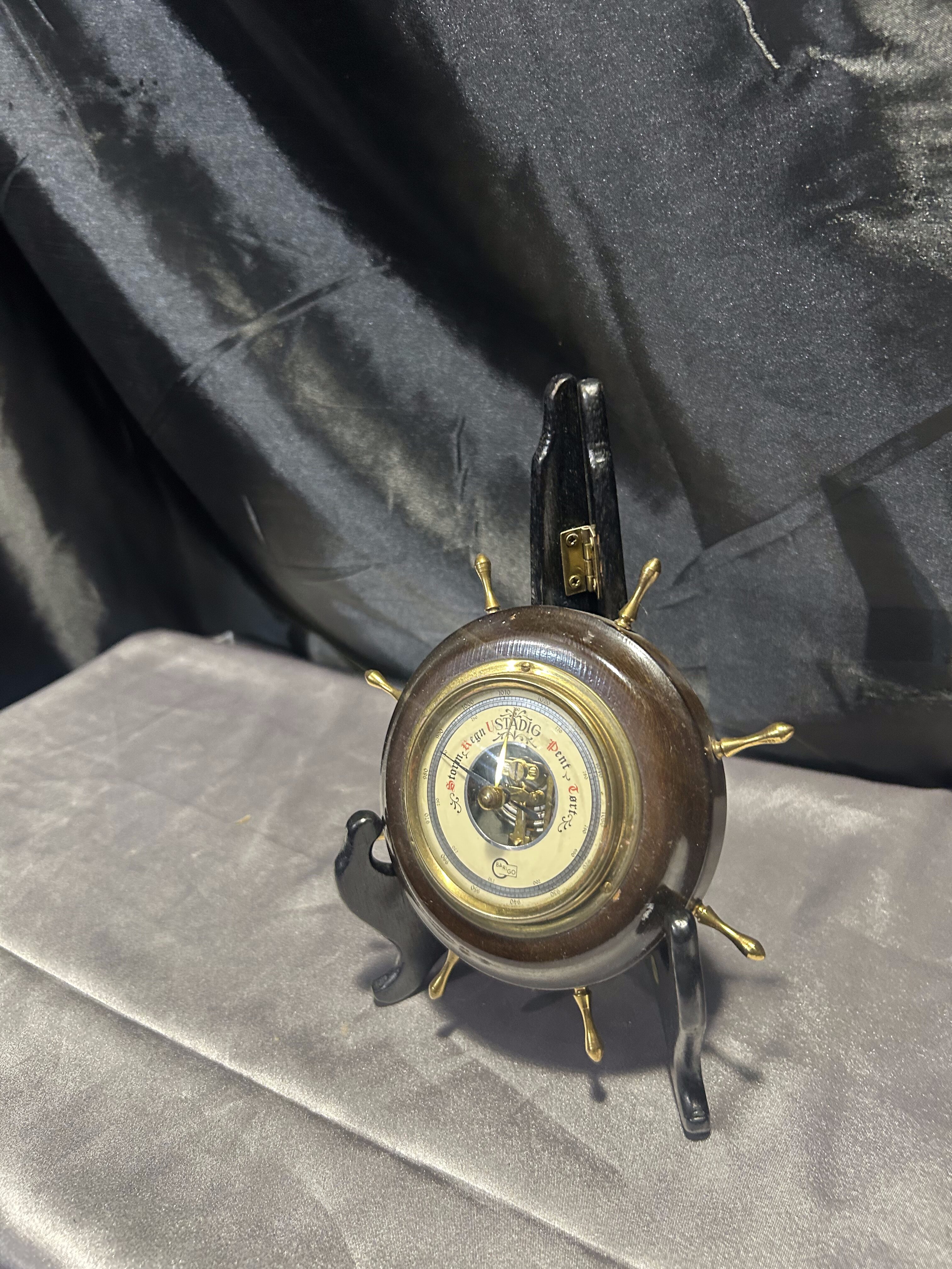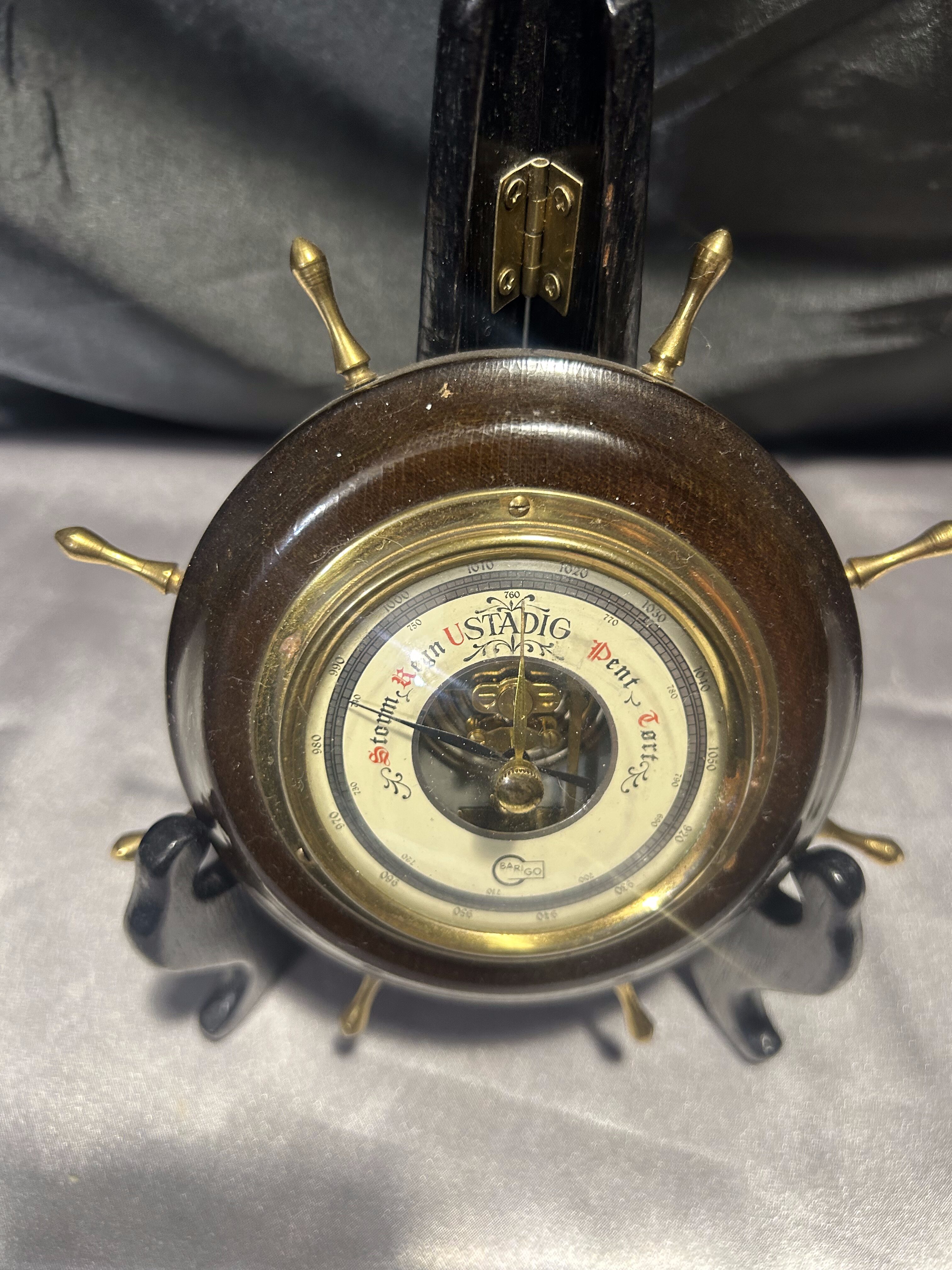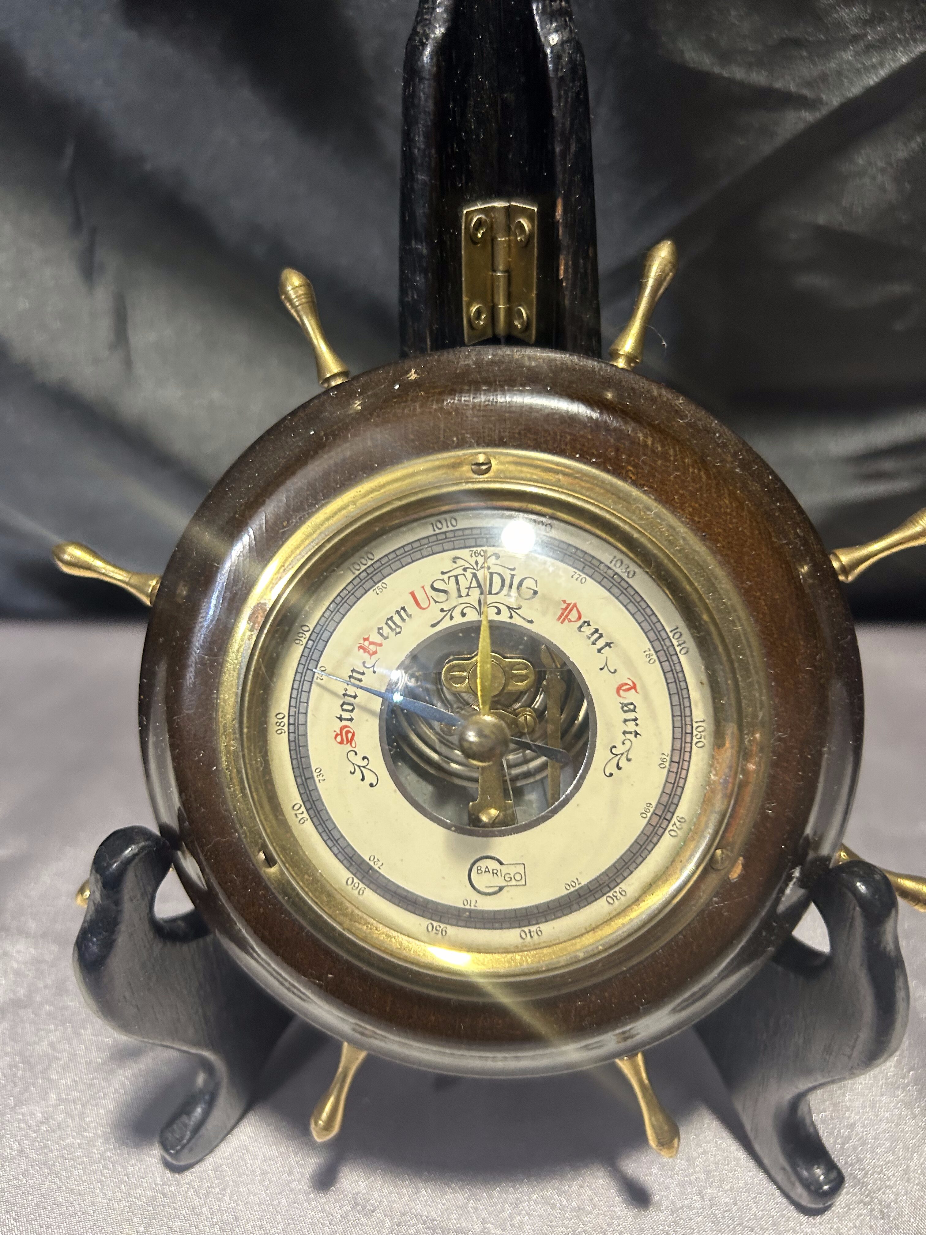 Barometr w drewnianej oprawie – Koło sternicze – Mosiężne detale – BARIGO