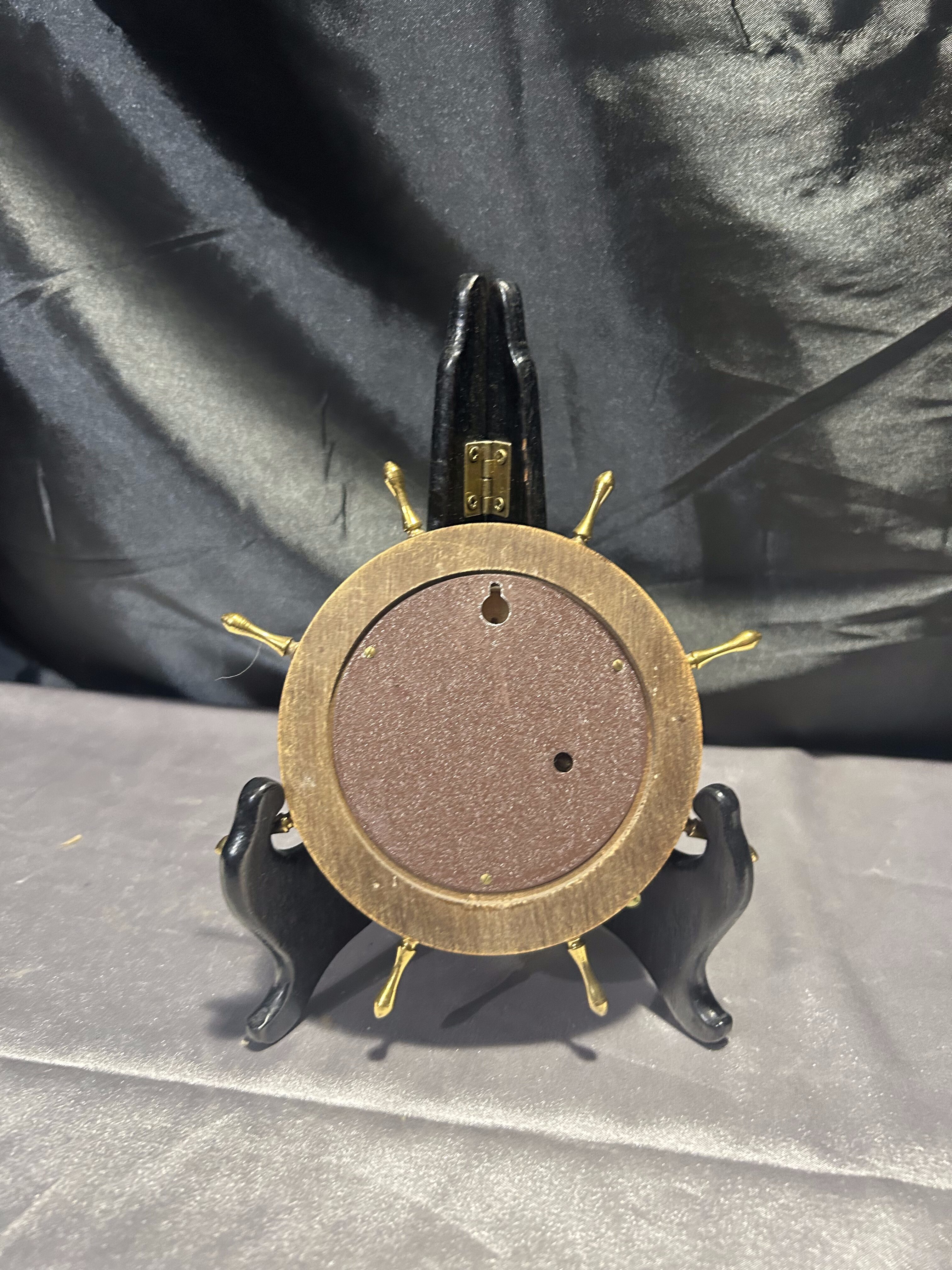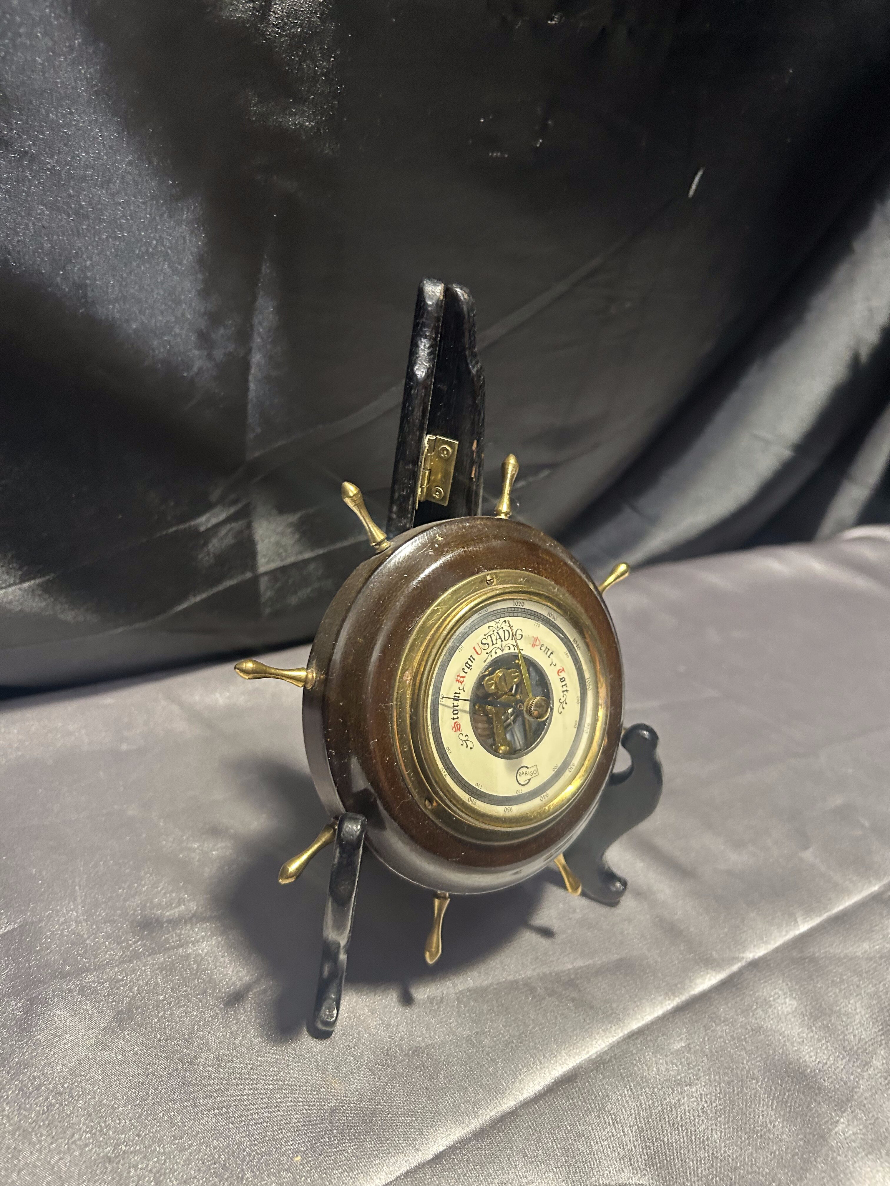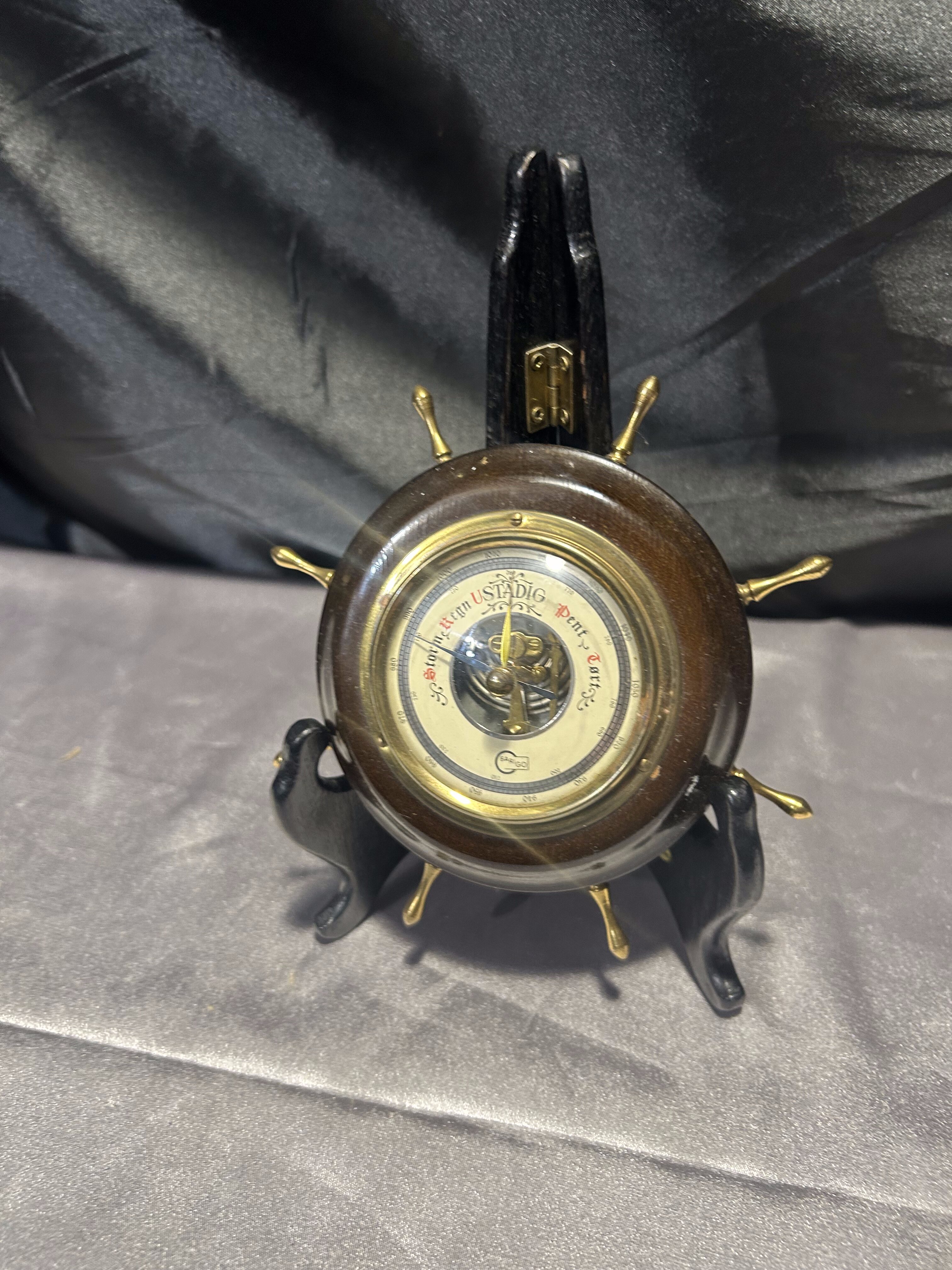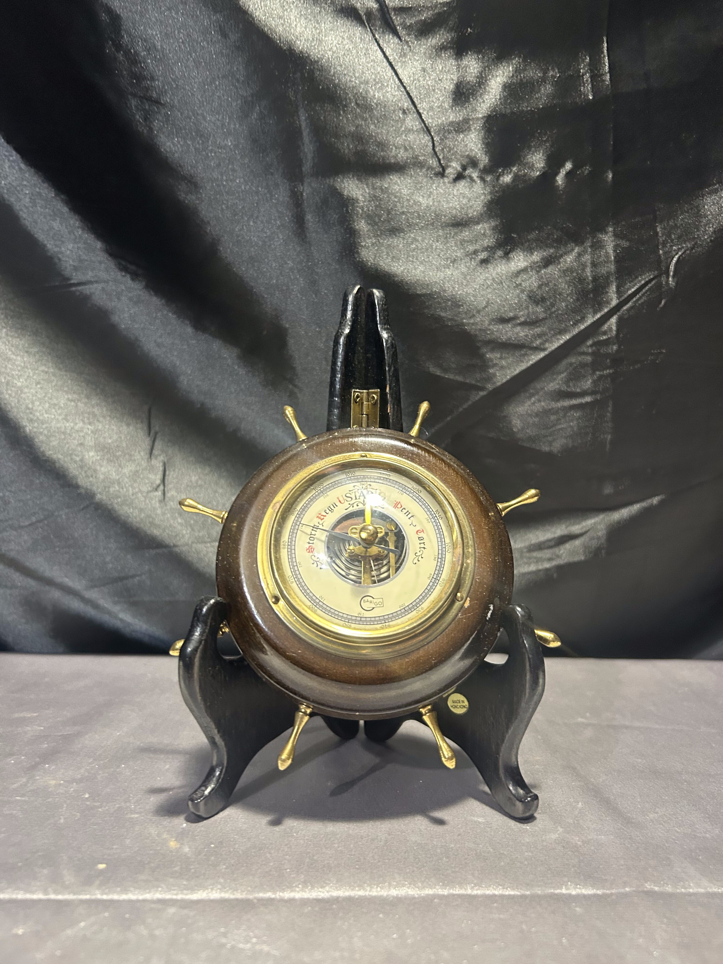 Barometr w drewnianej oprawie – Koło sternicze – Mosiężne detale – BARIGO