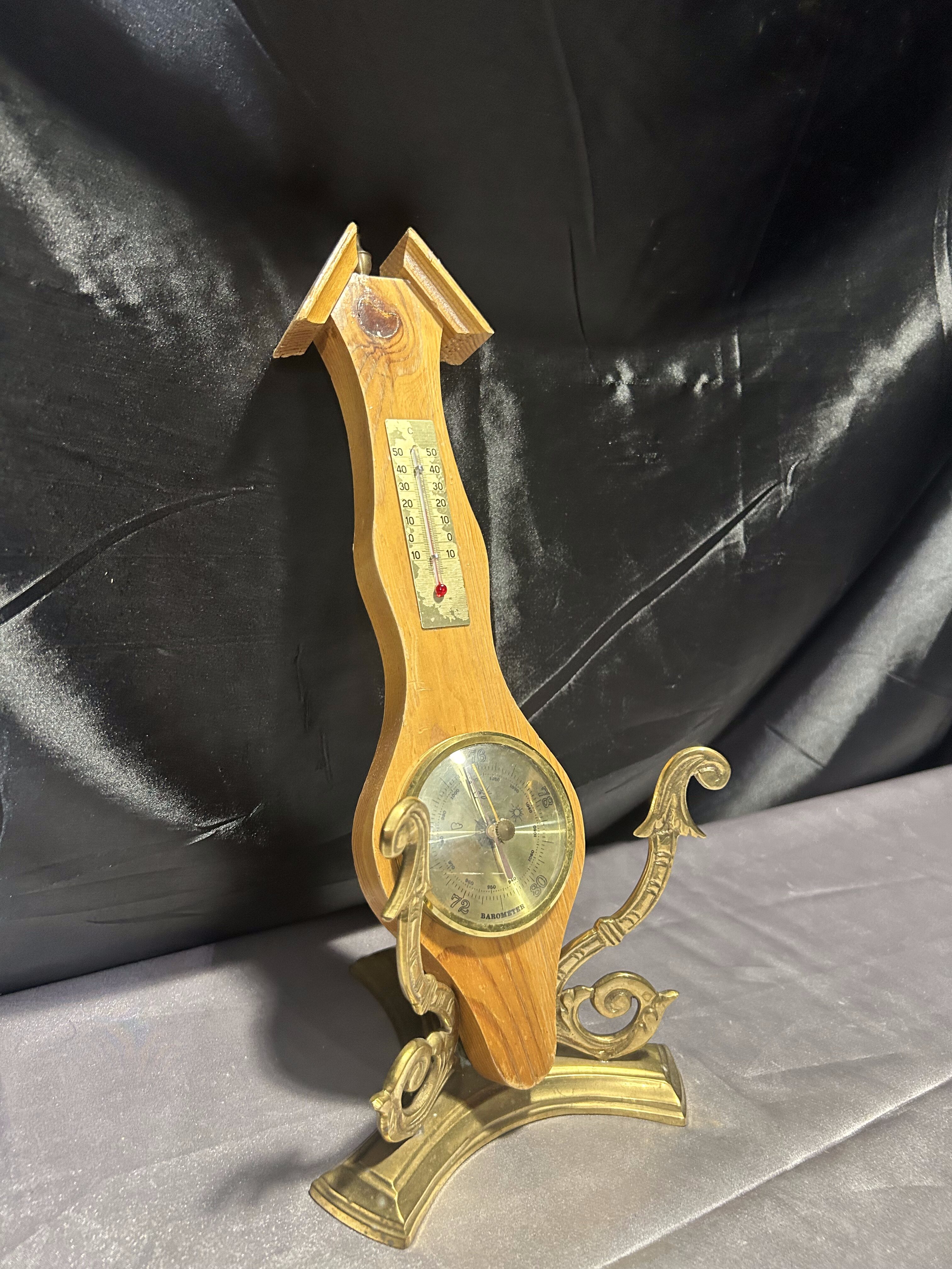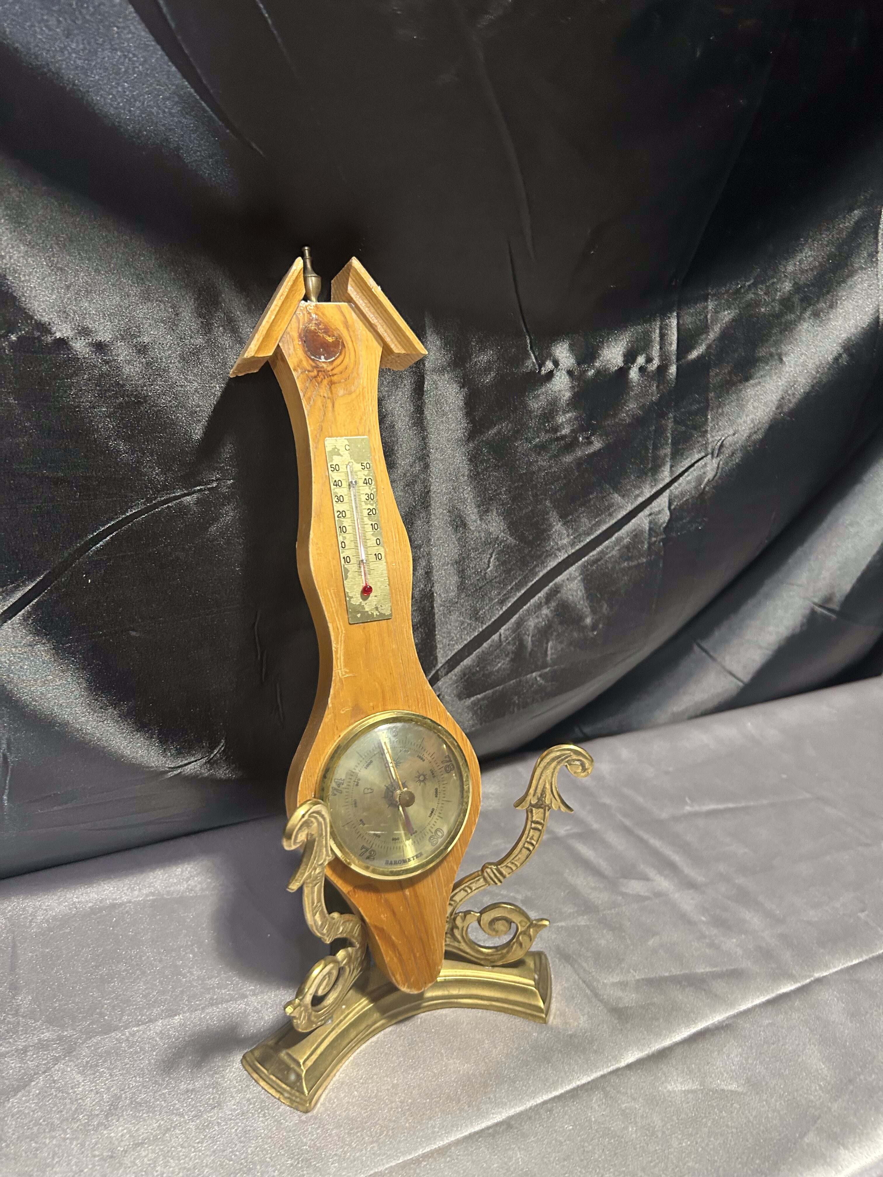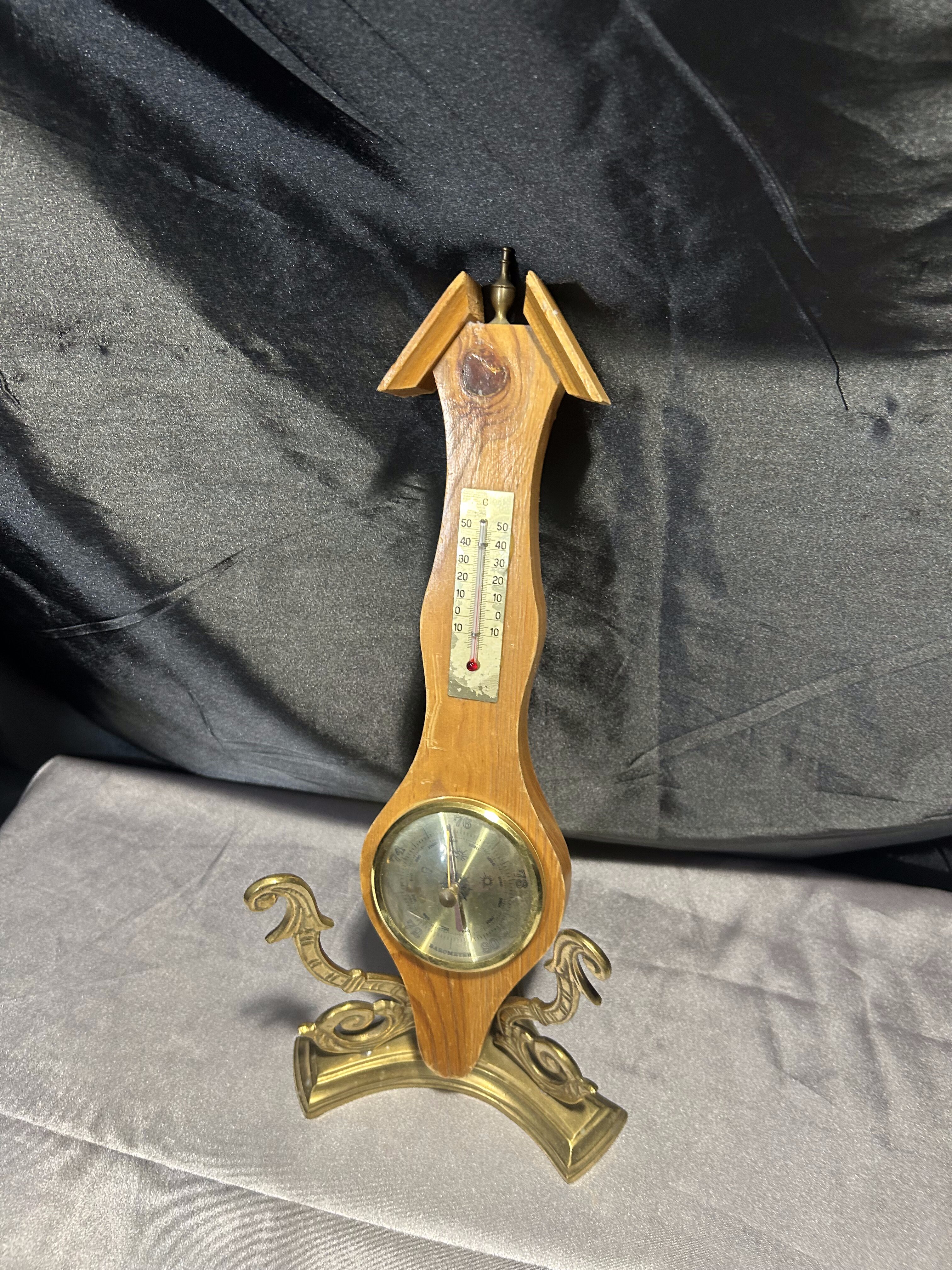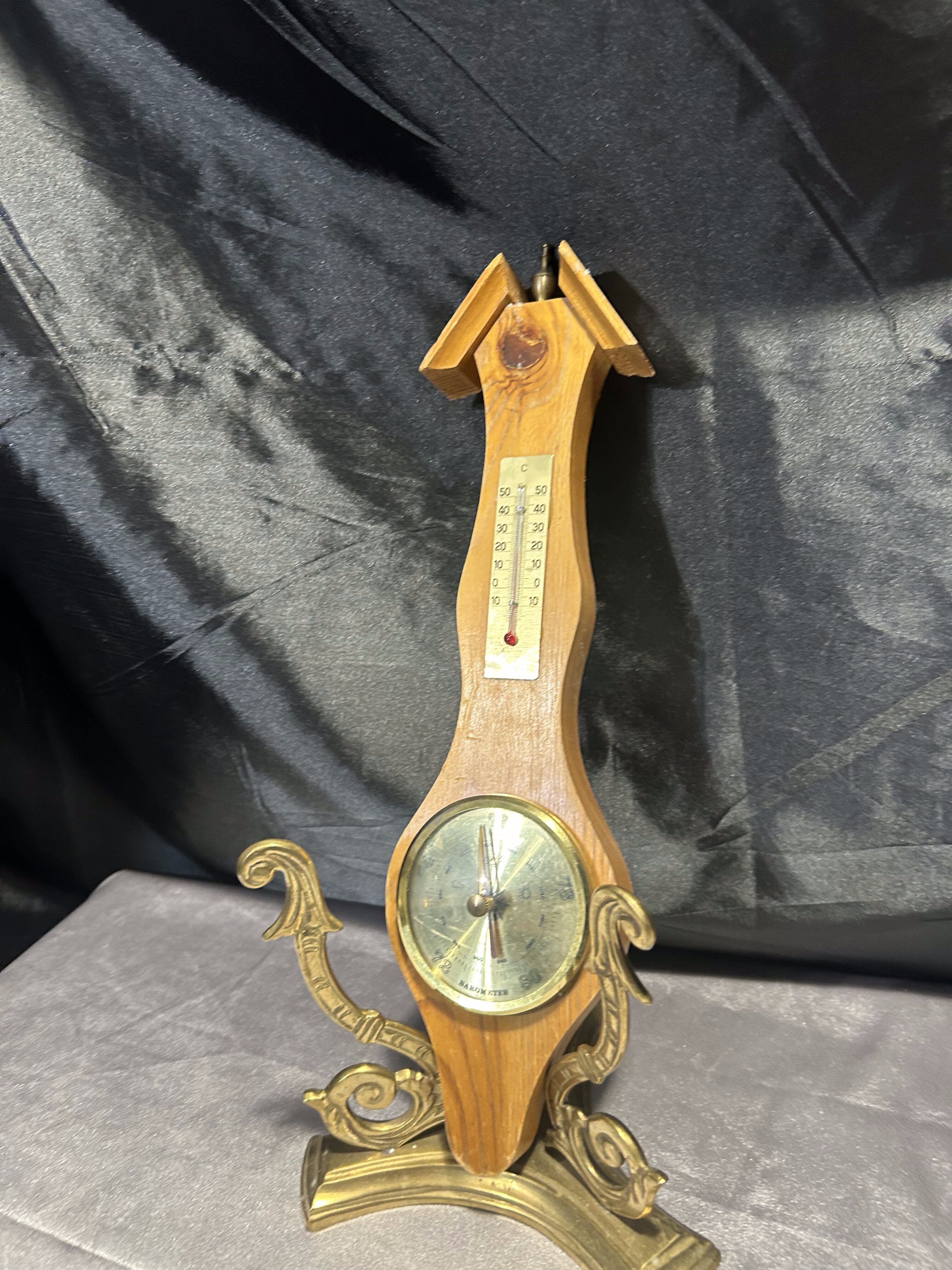 Barometr, higrometr, termometr – Rzeźbiona drewniana oprawa – Sygnowany HMH 1994