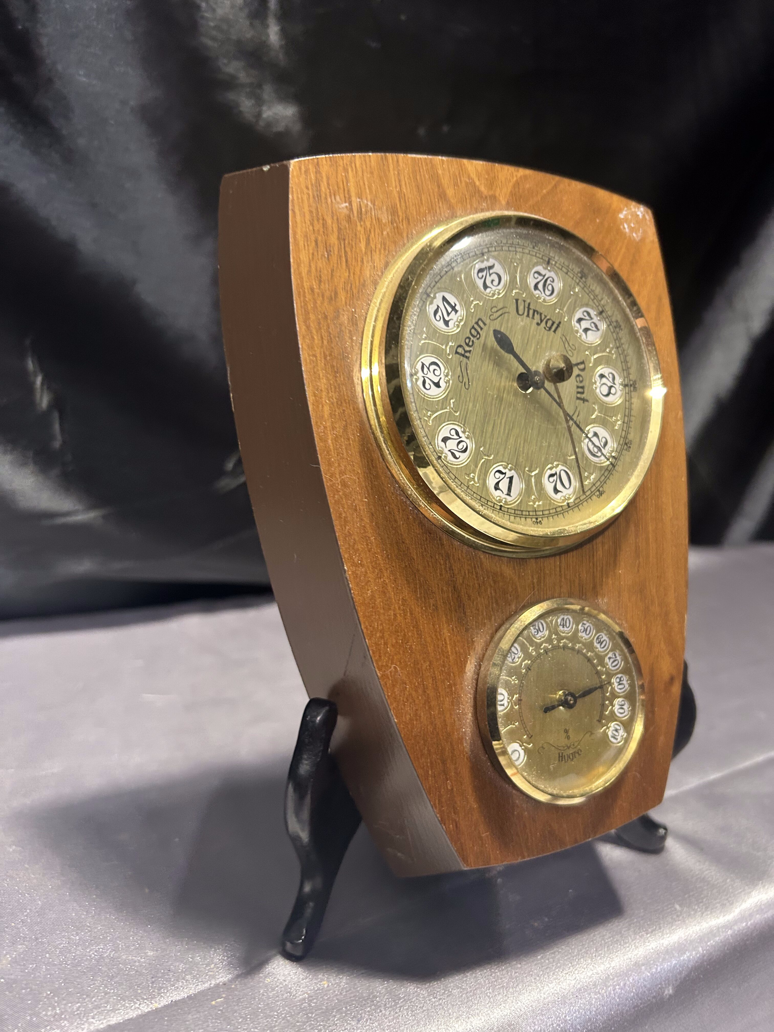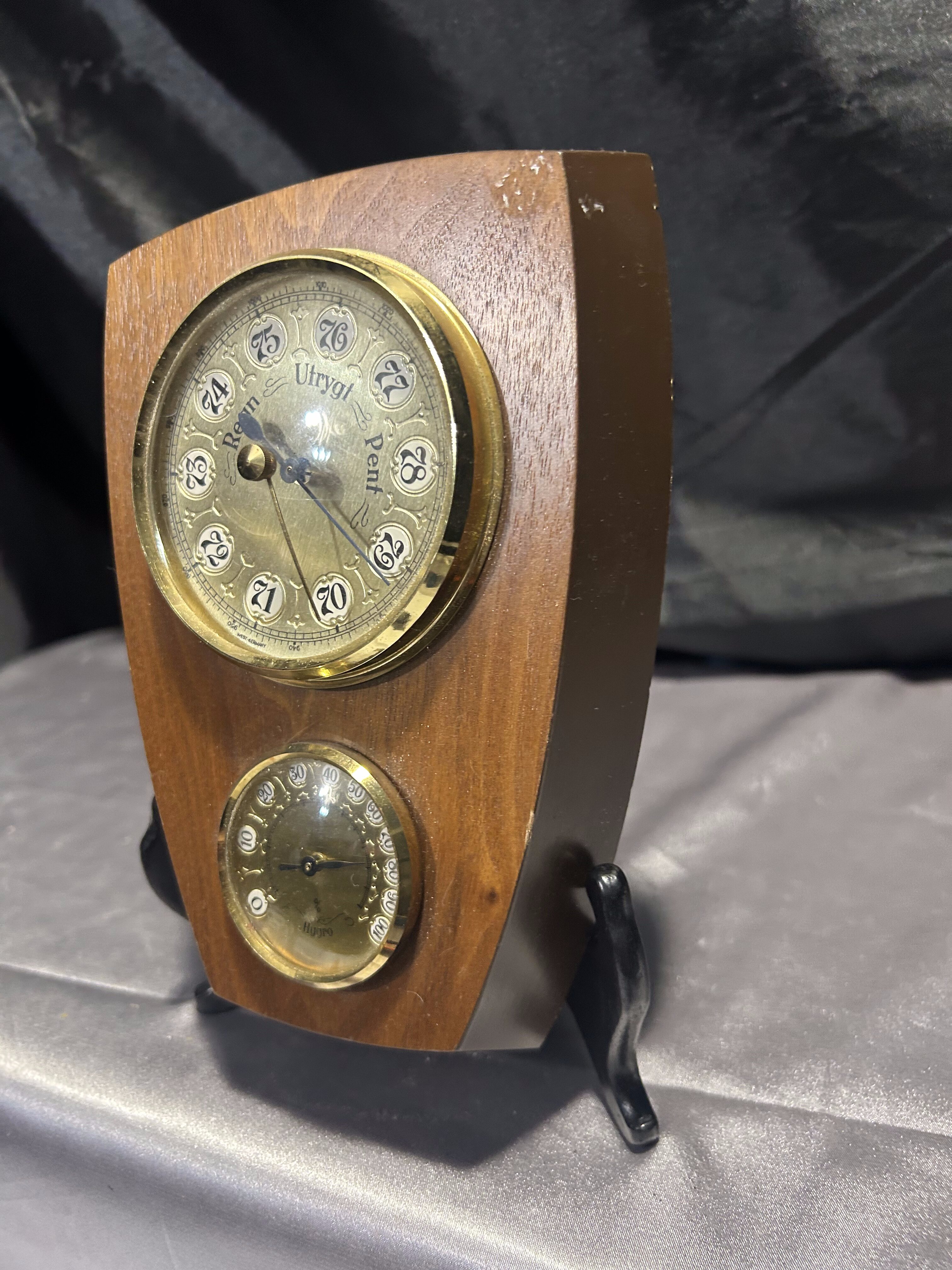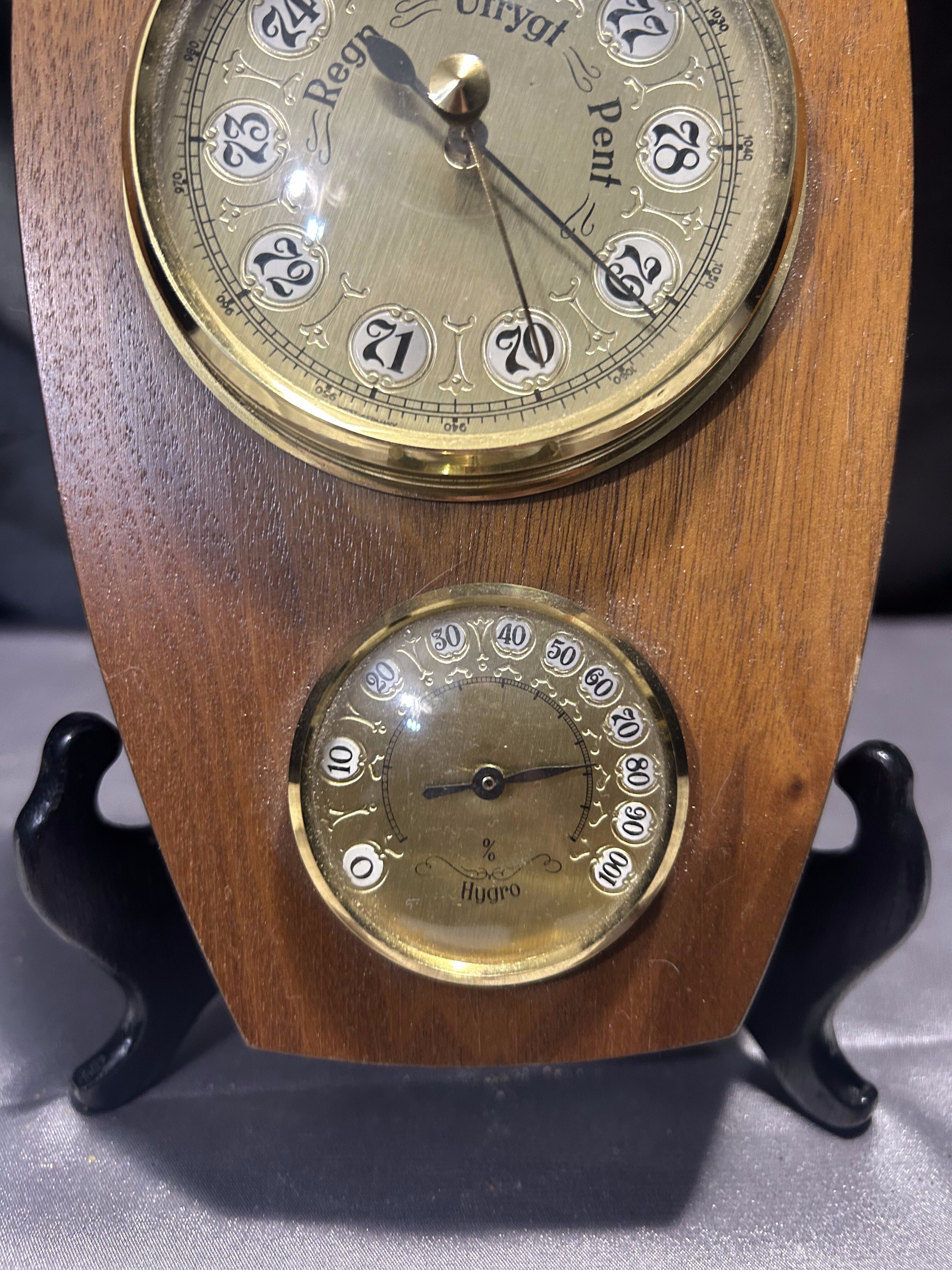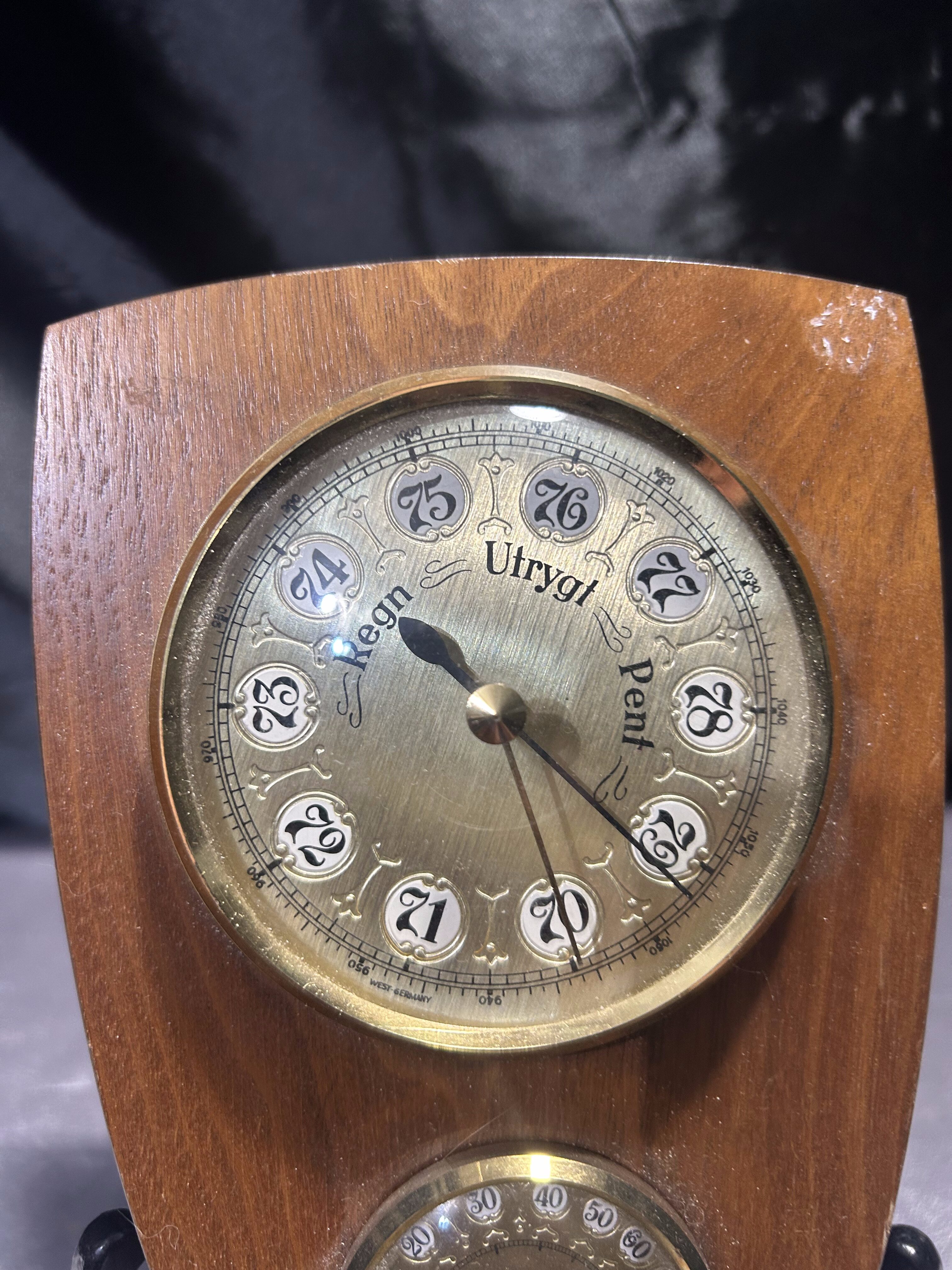 Barometr, higrometr, termometr – Rzeźbiona drewniana oprawa – Sygnowany HMH 1994
