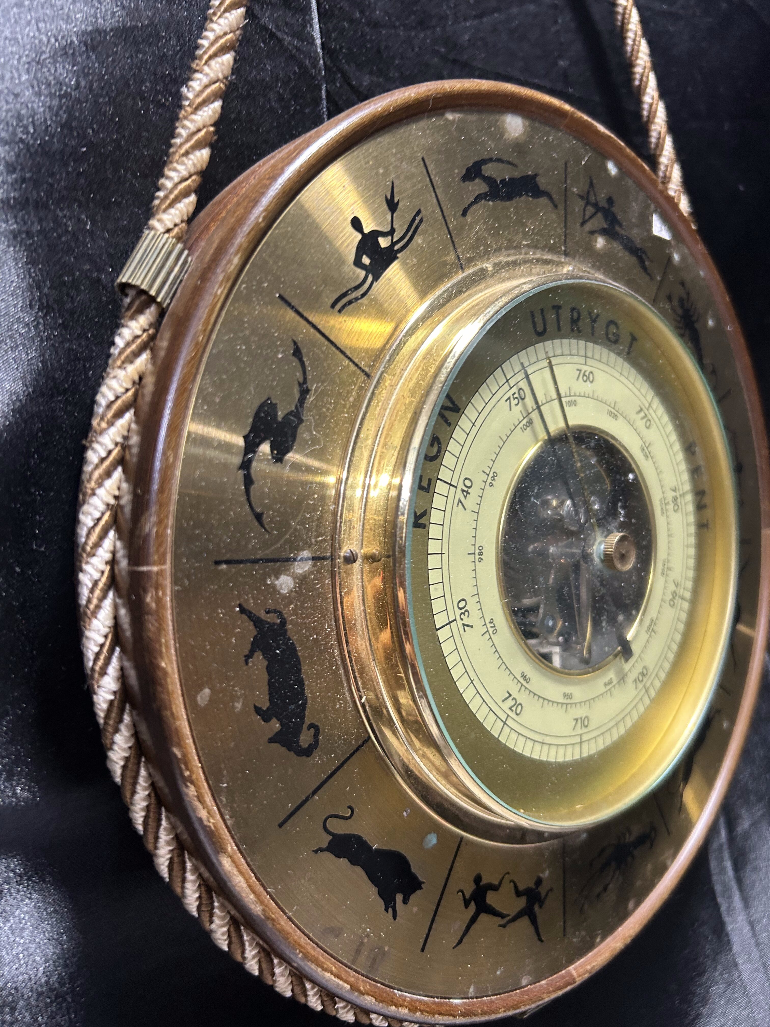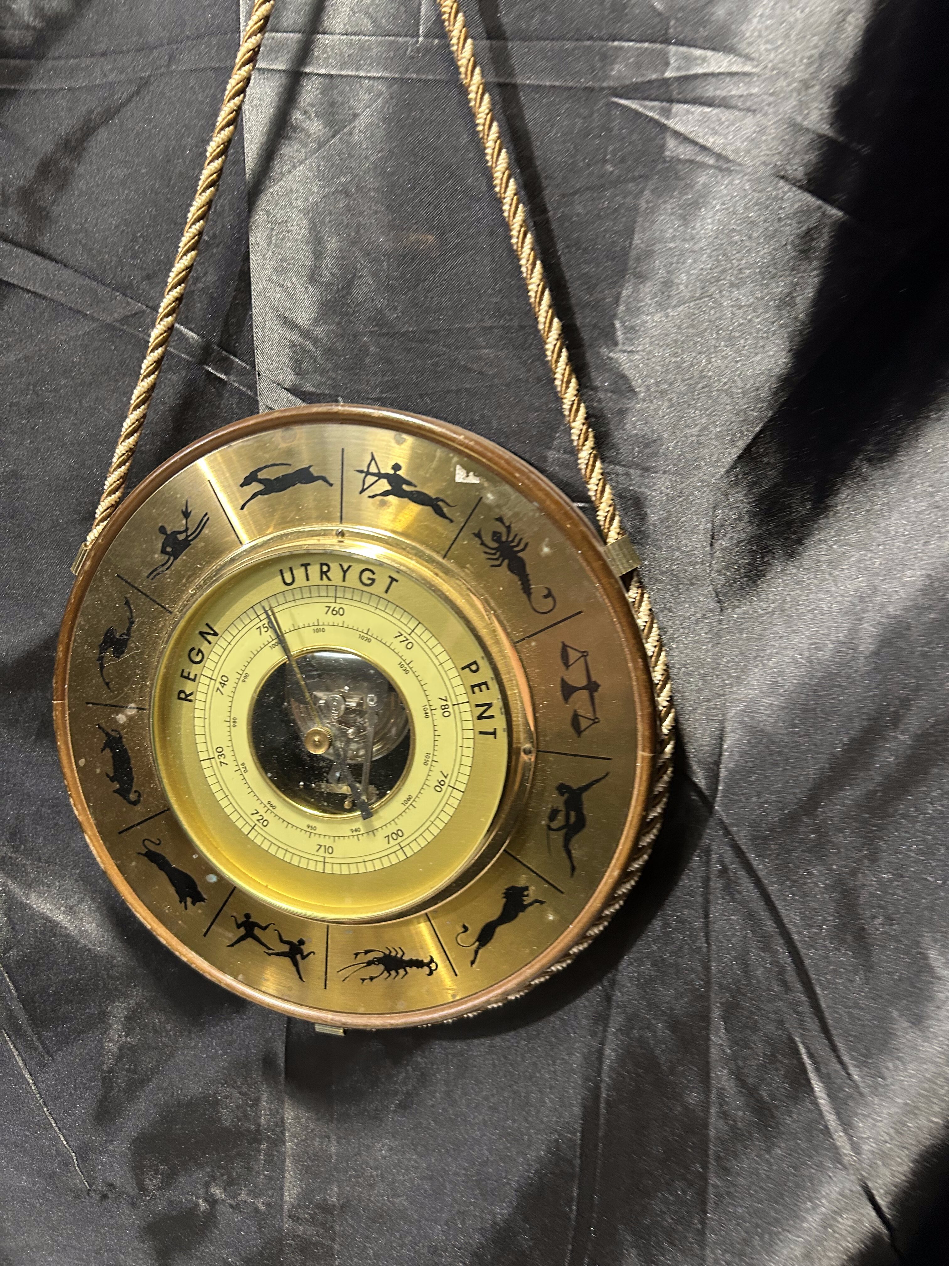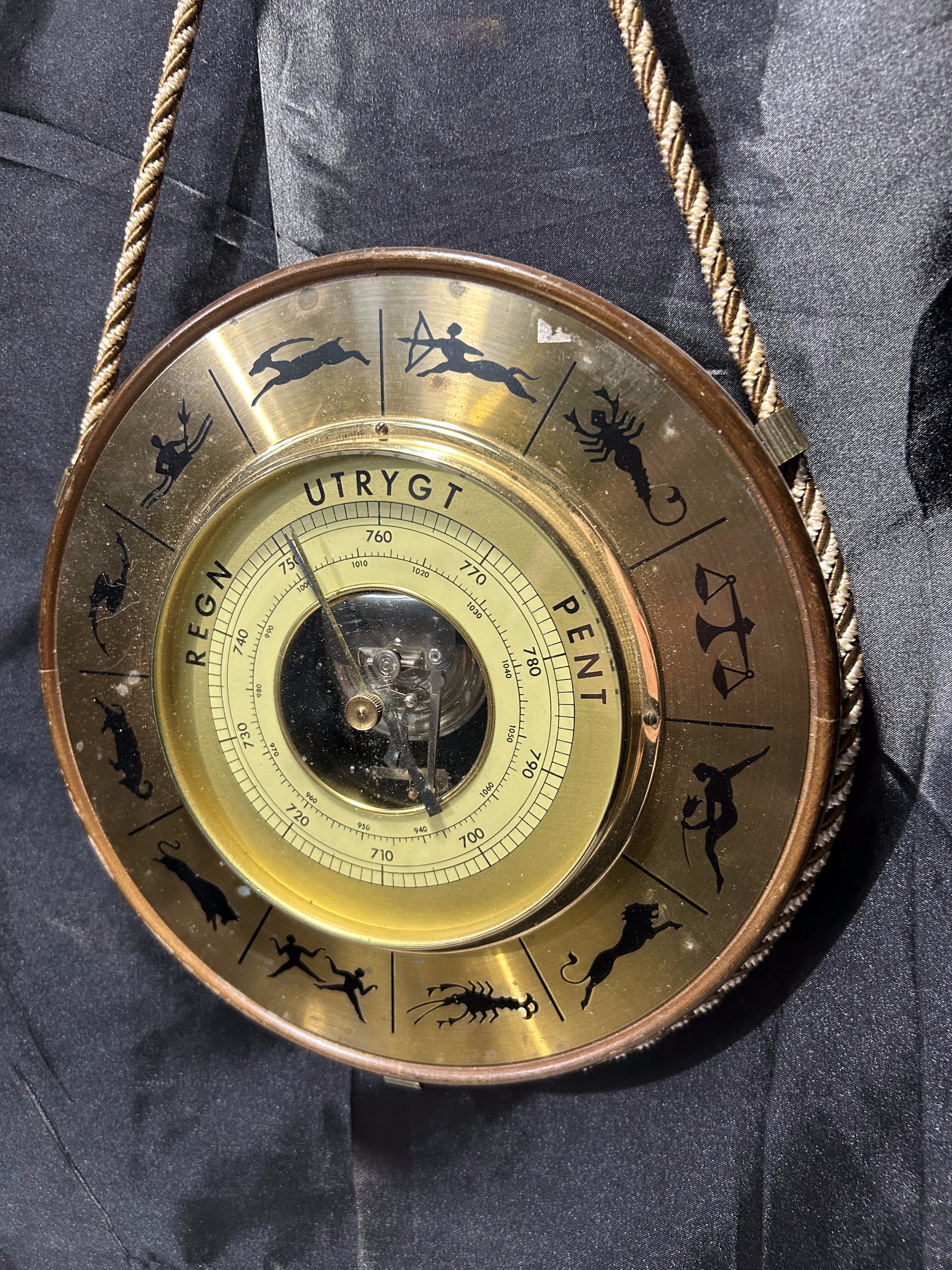 Ten unikalny barometr z motywem zodiakalnym to doskonałe połączenie funkcjonalności i symboliki. Ozdobny sznur i staranne detale czynią z niego wyjątkowy element aranżacji wnętrza – idealny dla miłośników astrologii, sztuki i niebanalnych przedmiotów z przeszłością.
