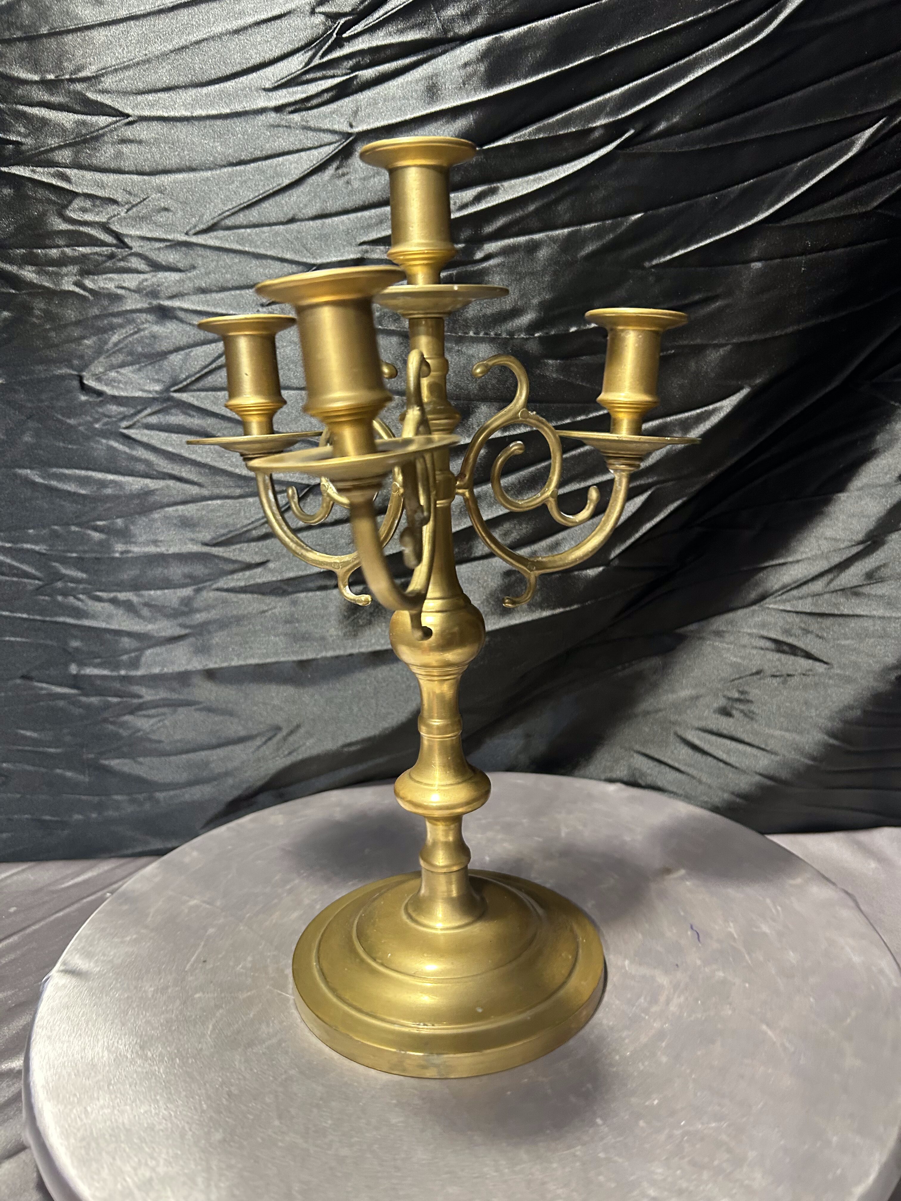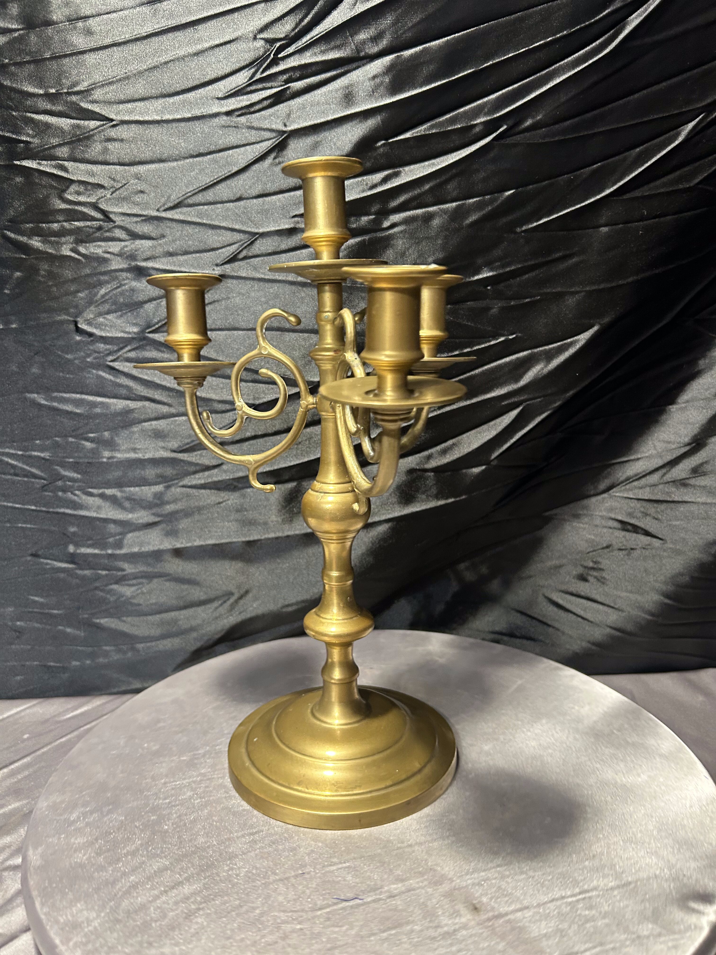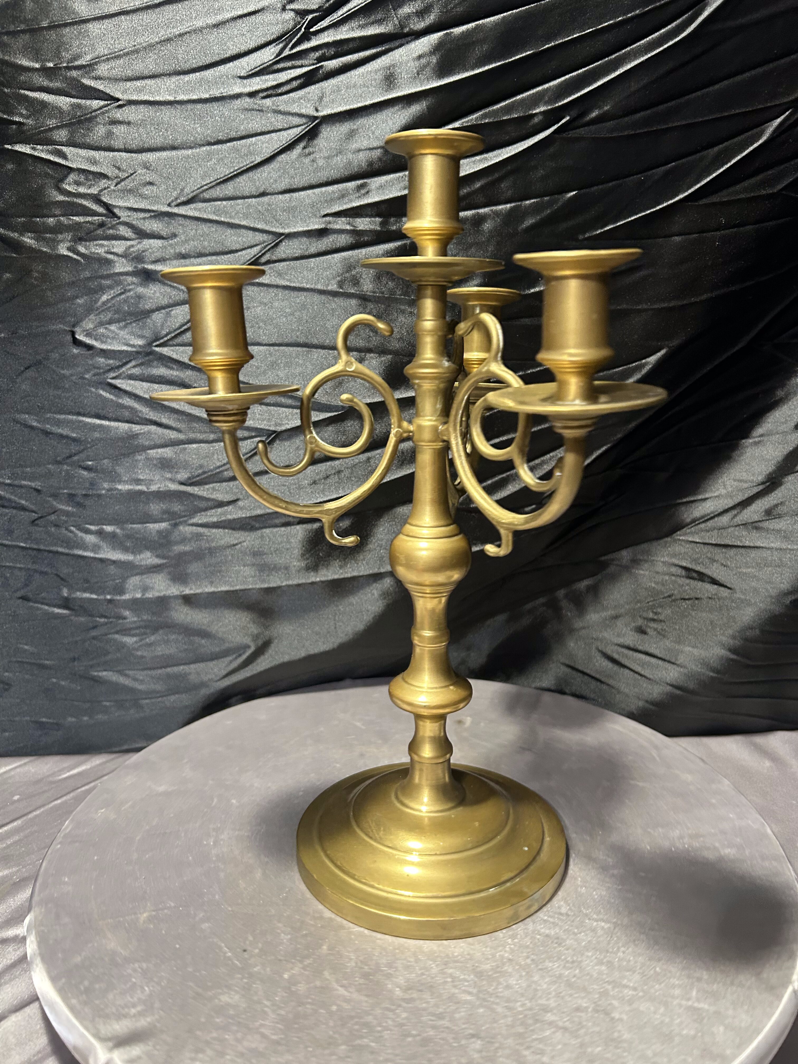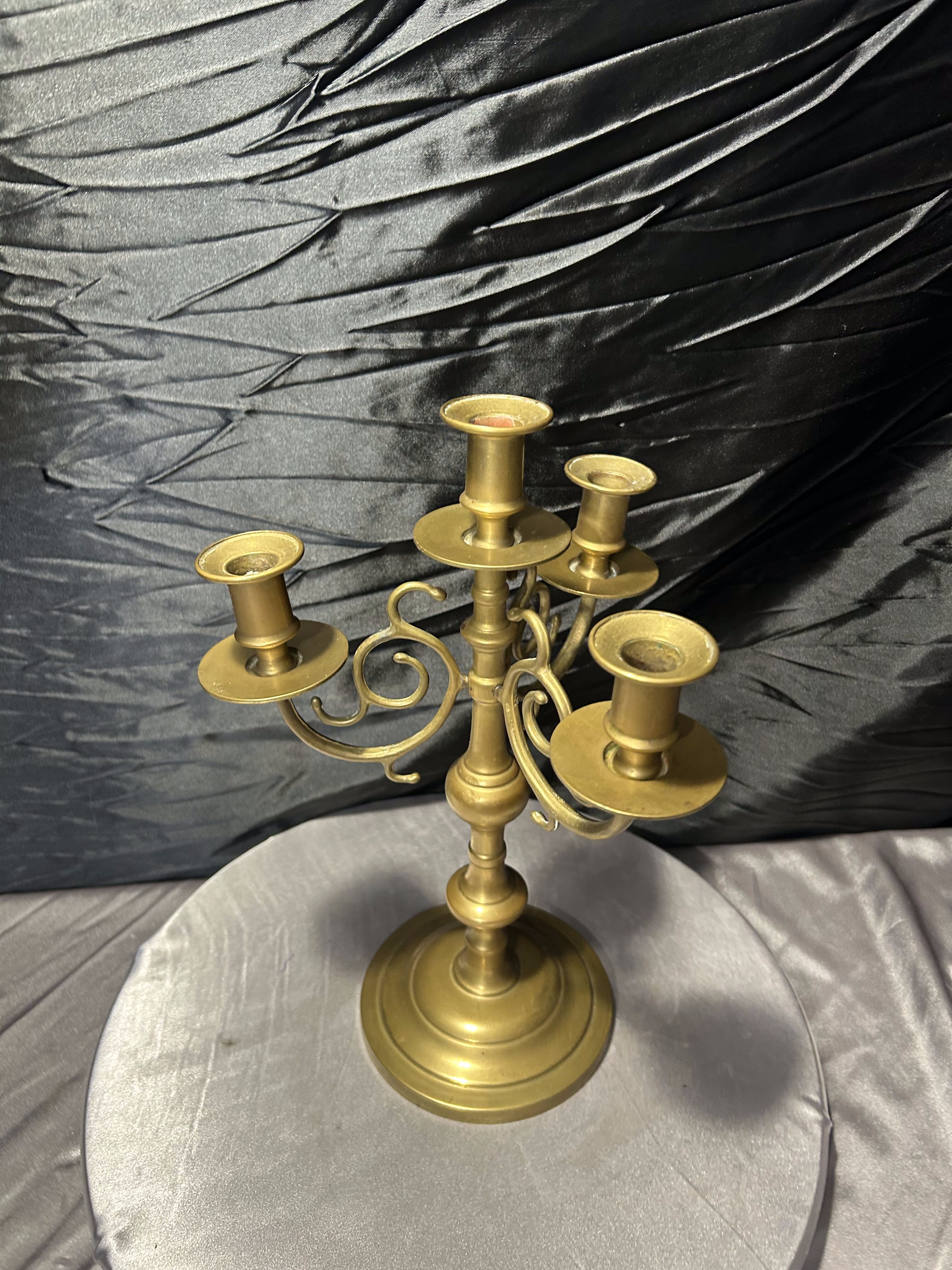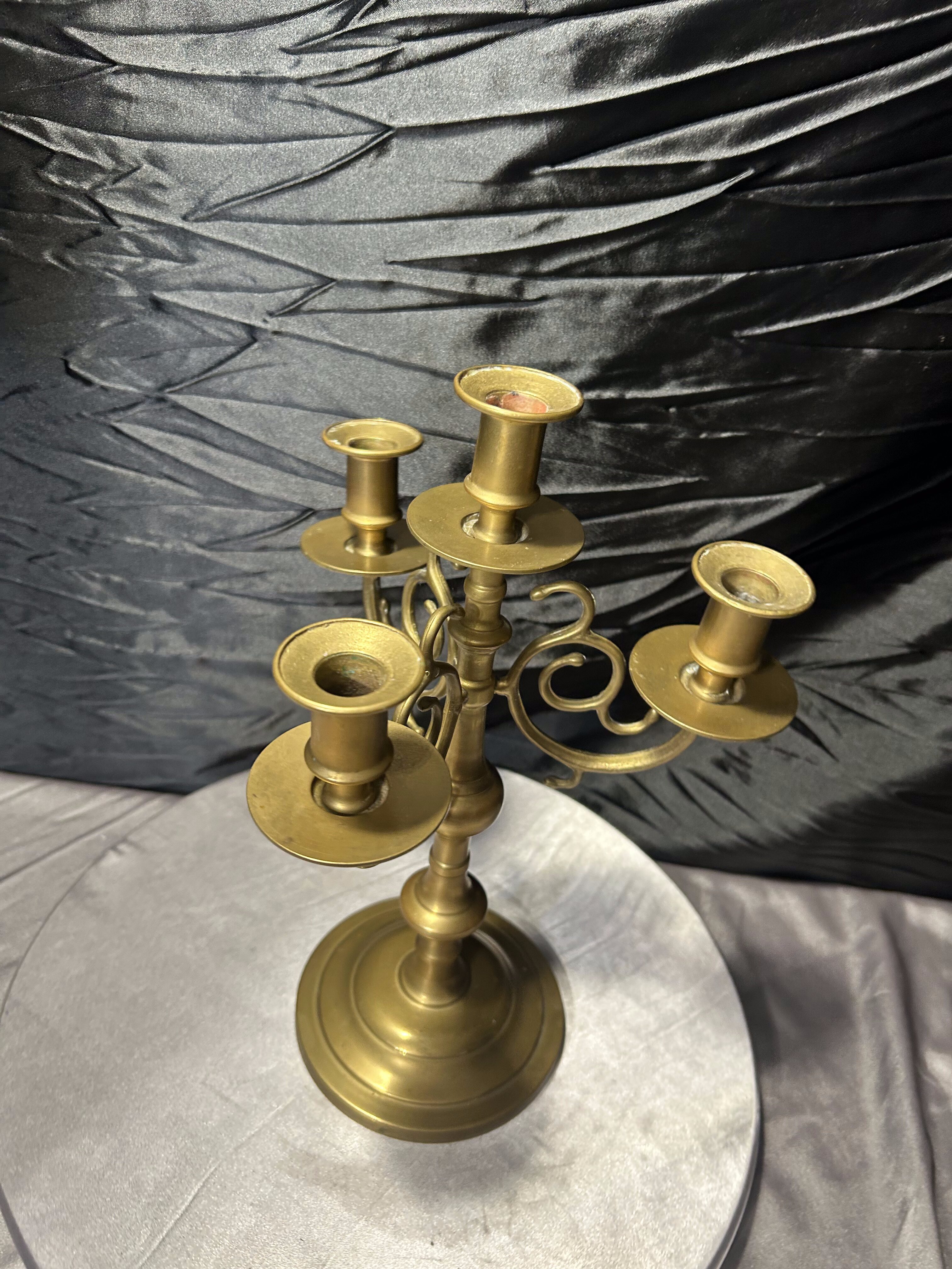 - Bogato zdobiony świecznik z mosiądzu – czteromiejscowy – klasyczna forma