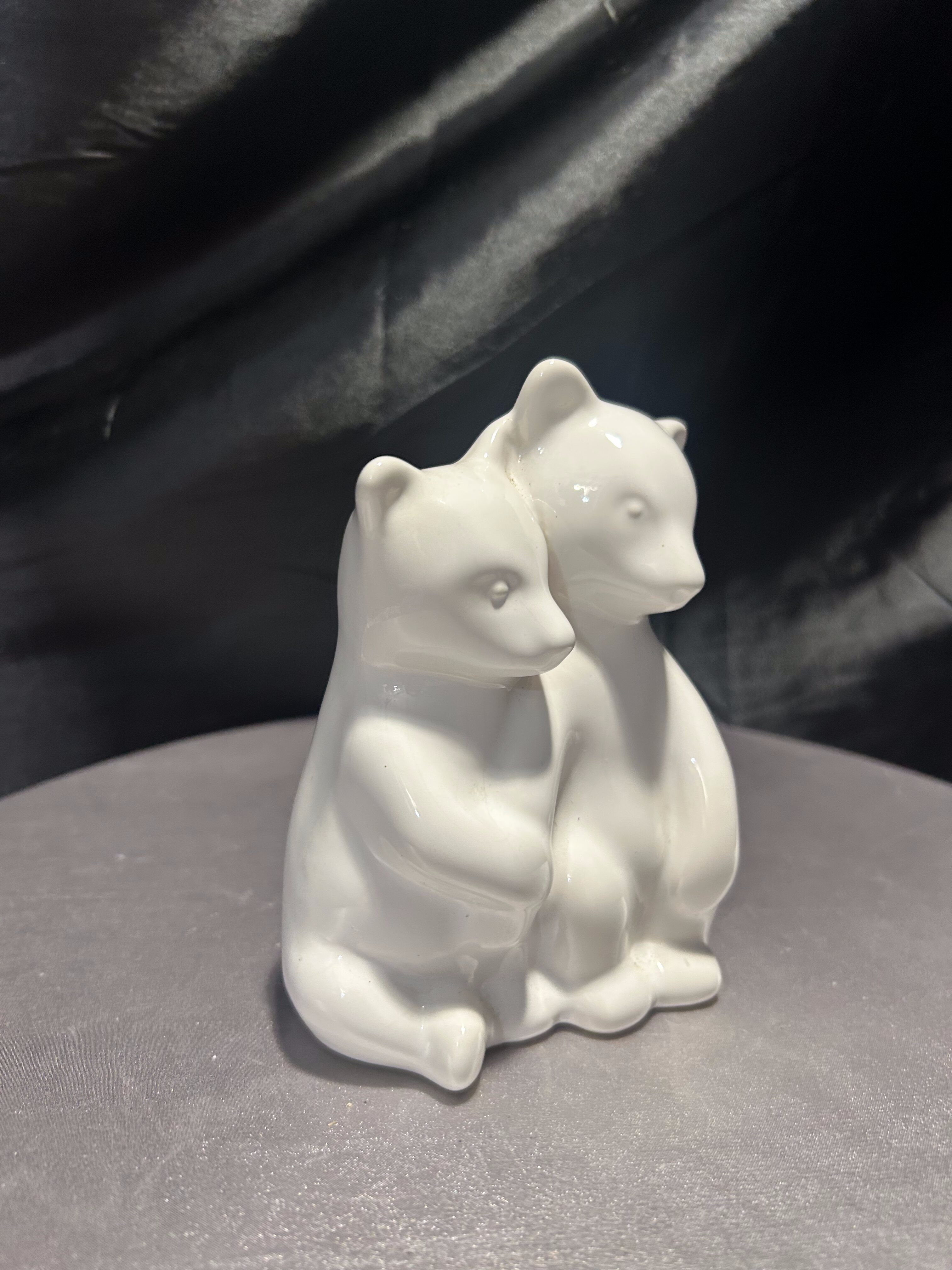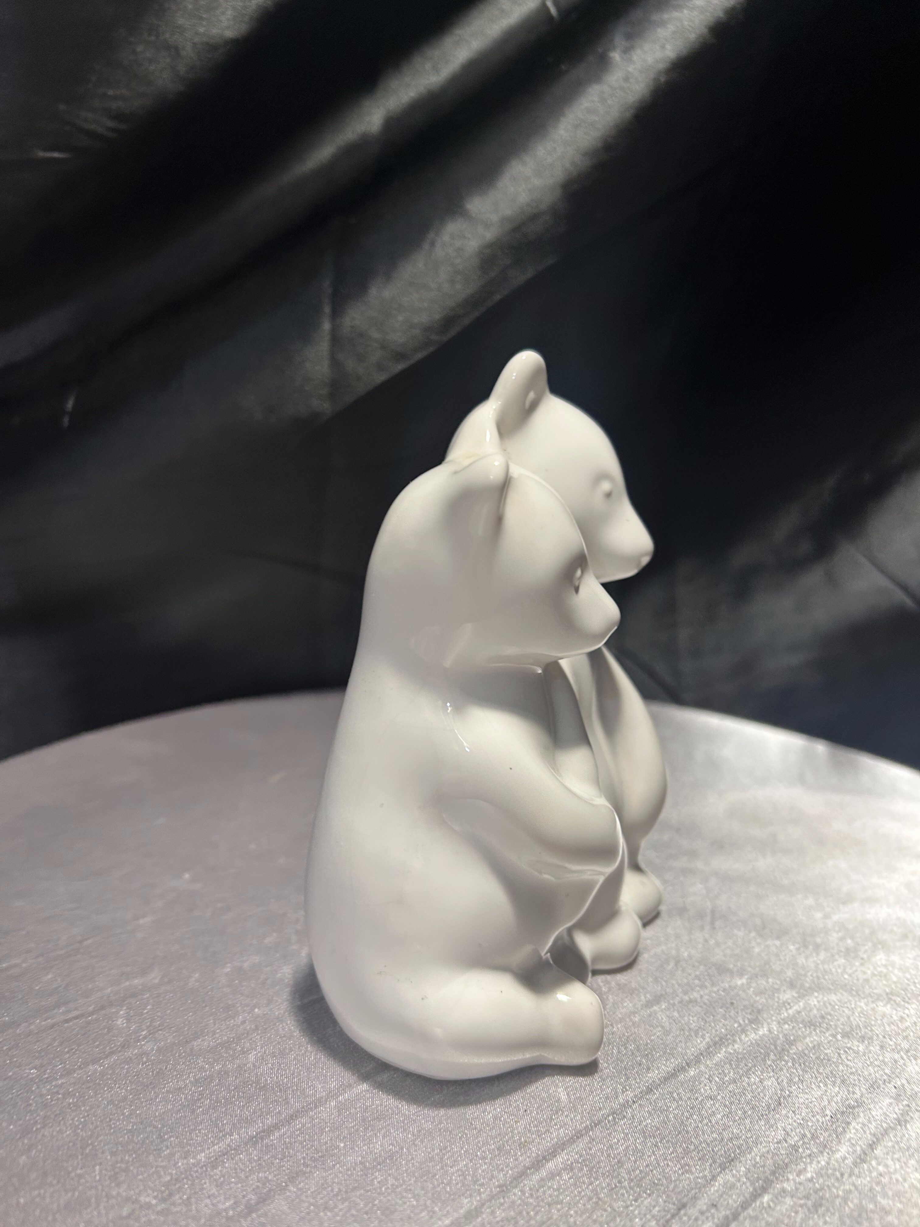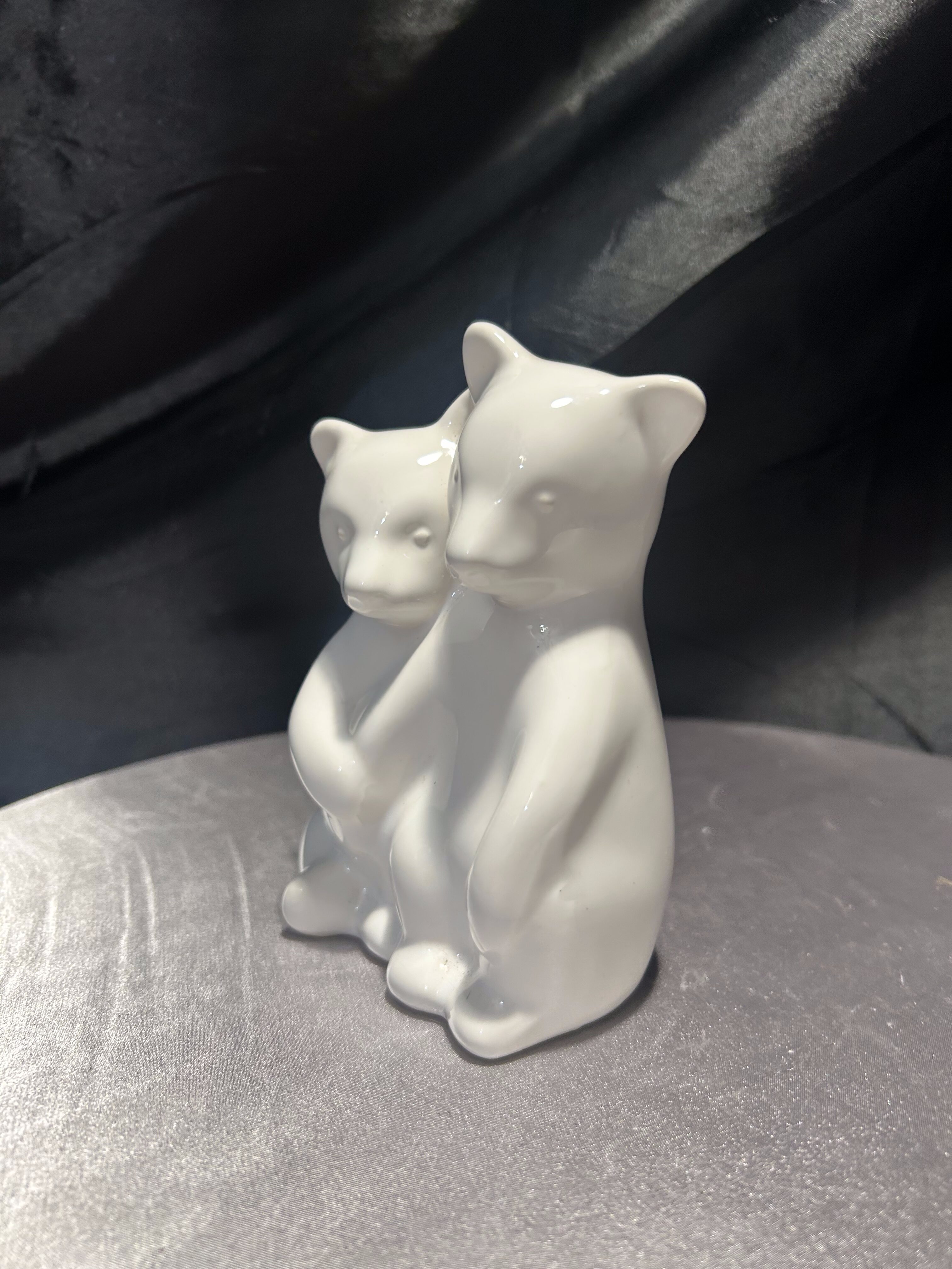 Ceramiczna figurka dwóch niedźwiedzi – sygnowana HILDE – biała porcelana