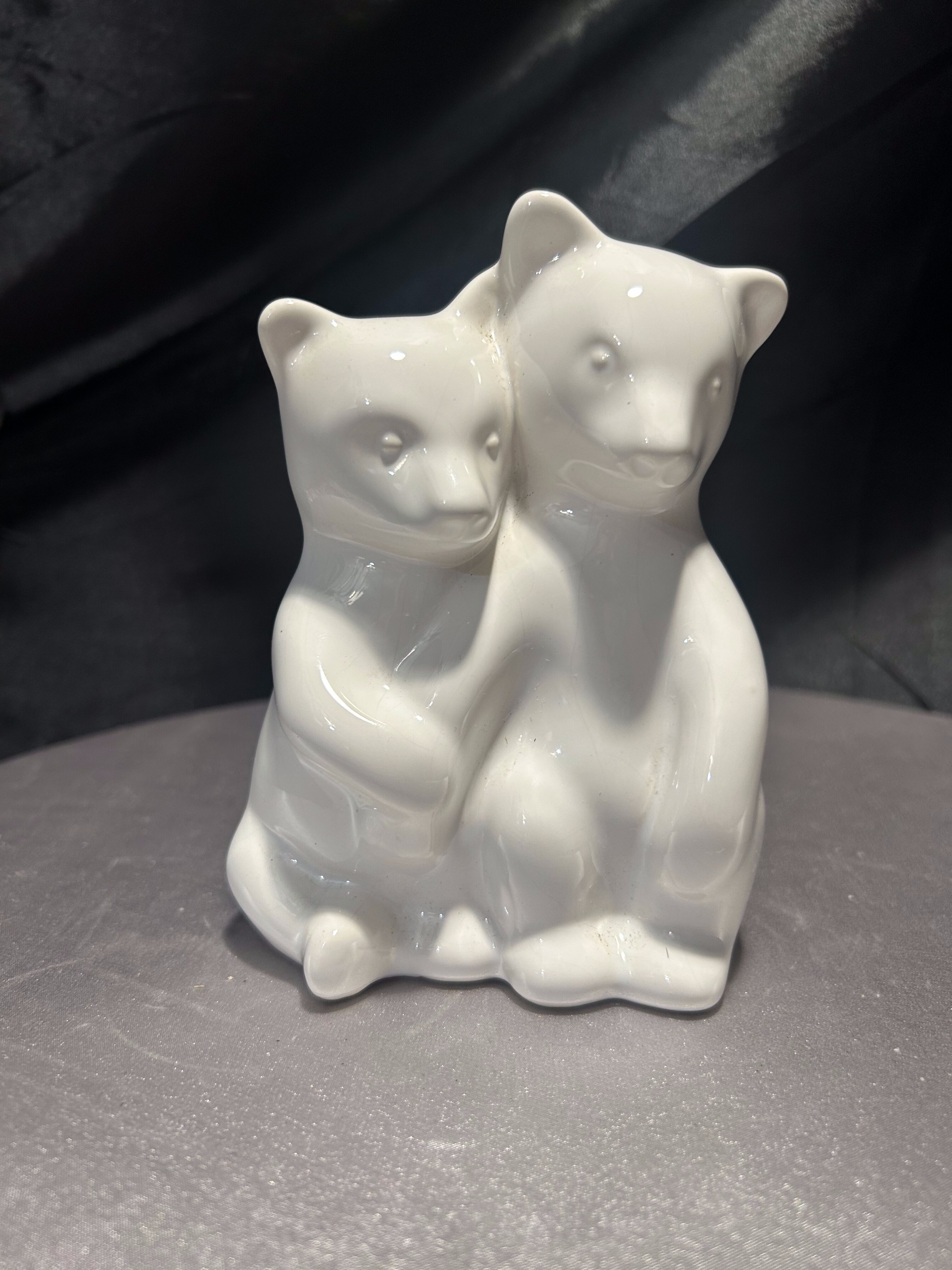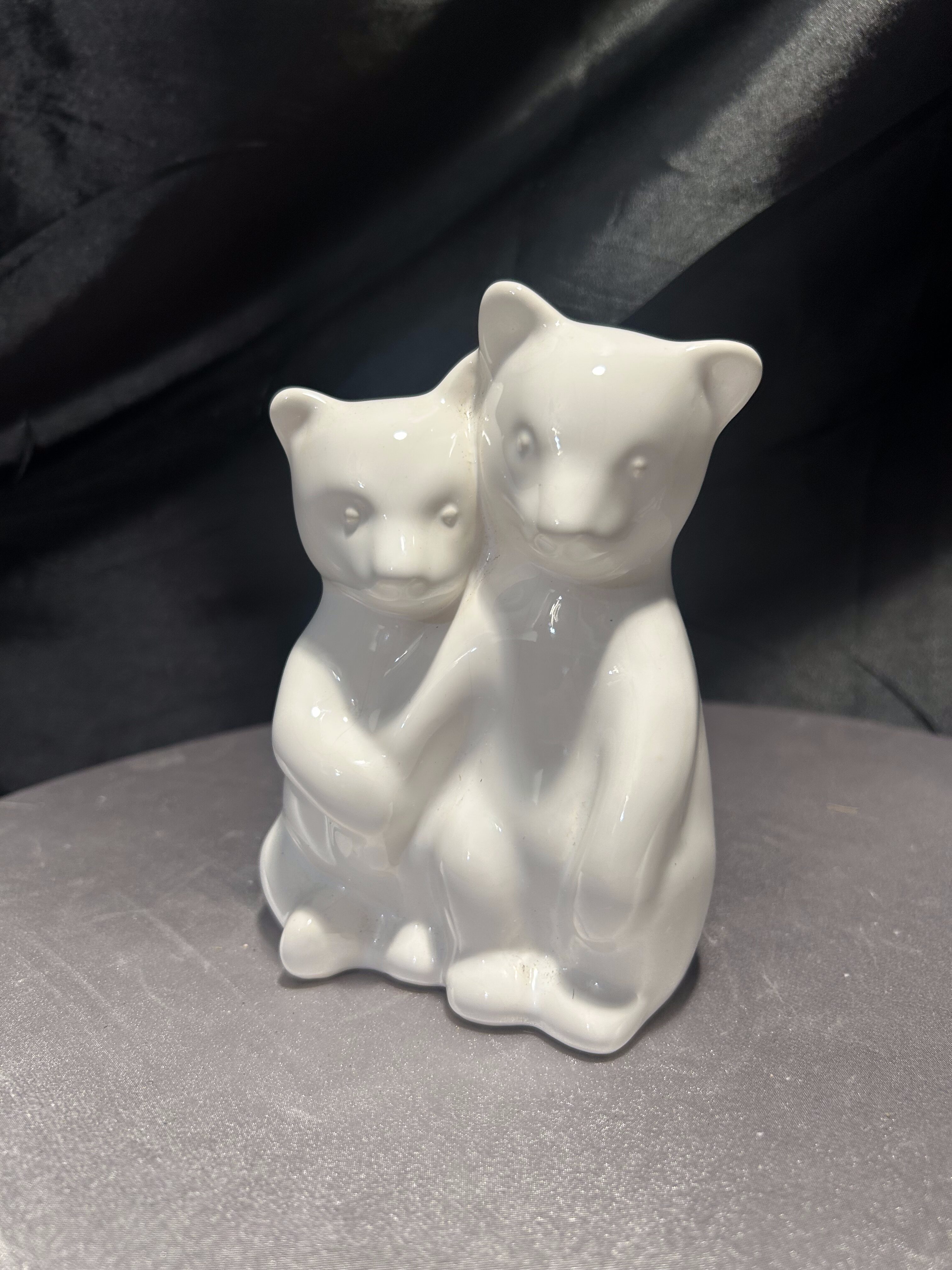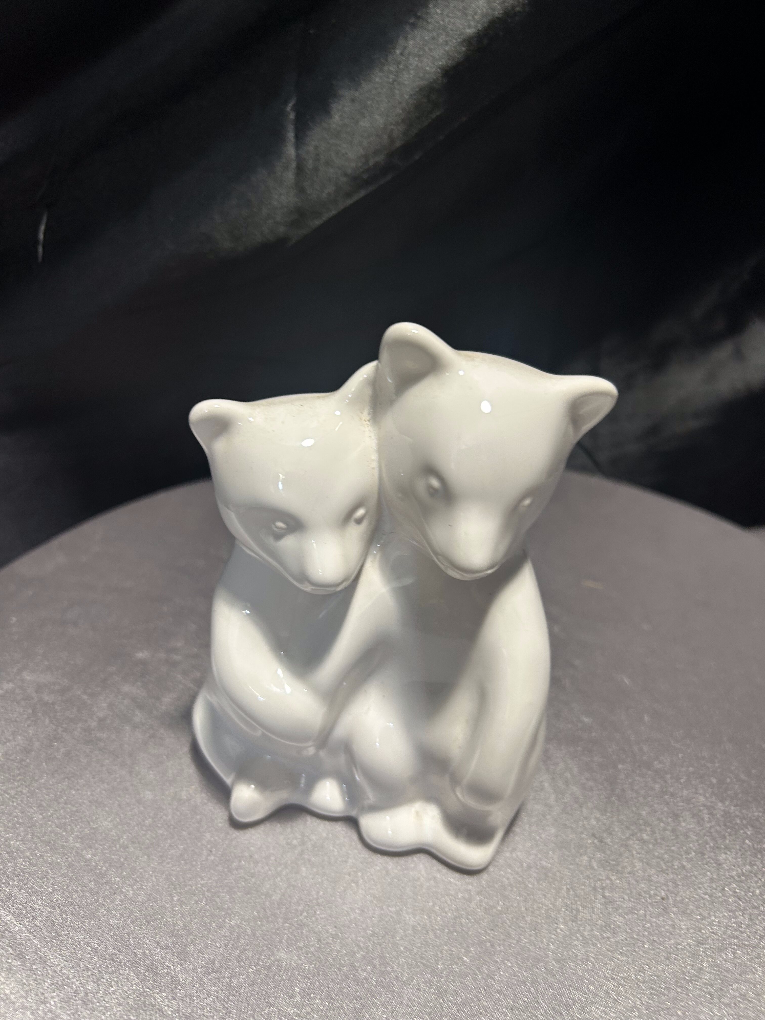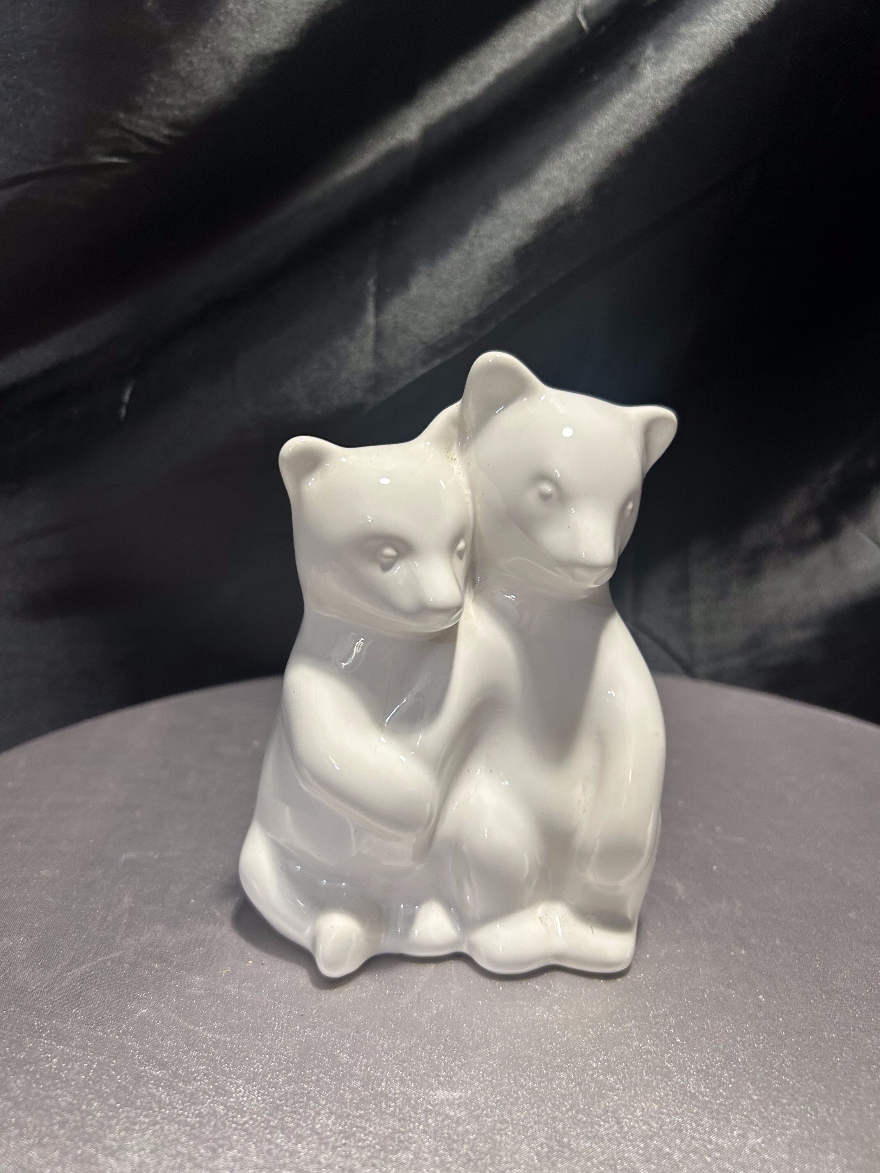 Ceramiczna figurka dwóch niedźwiedzi – sygnowana HILDE – biała porcelana