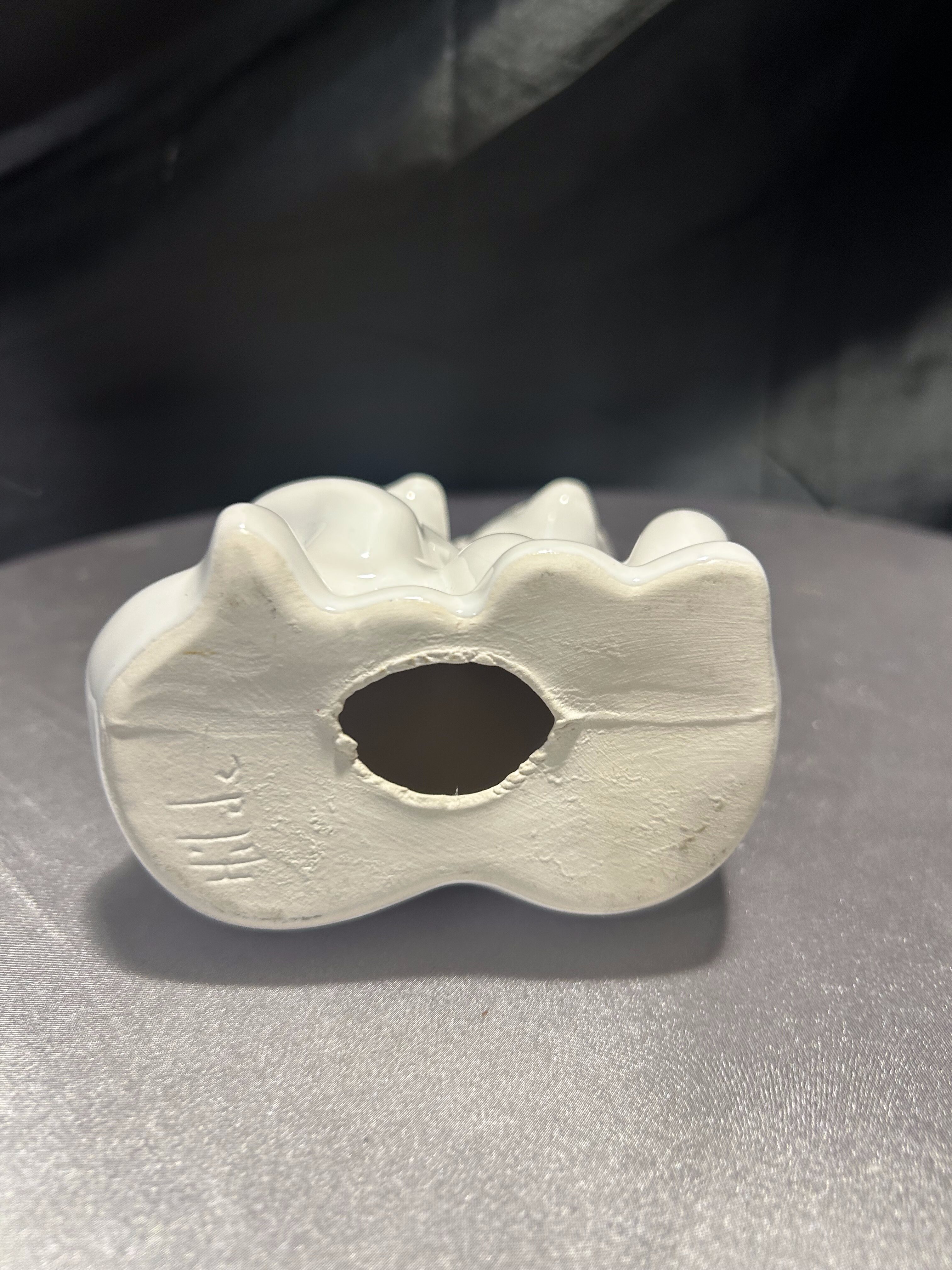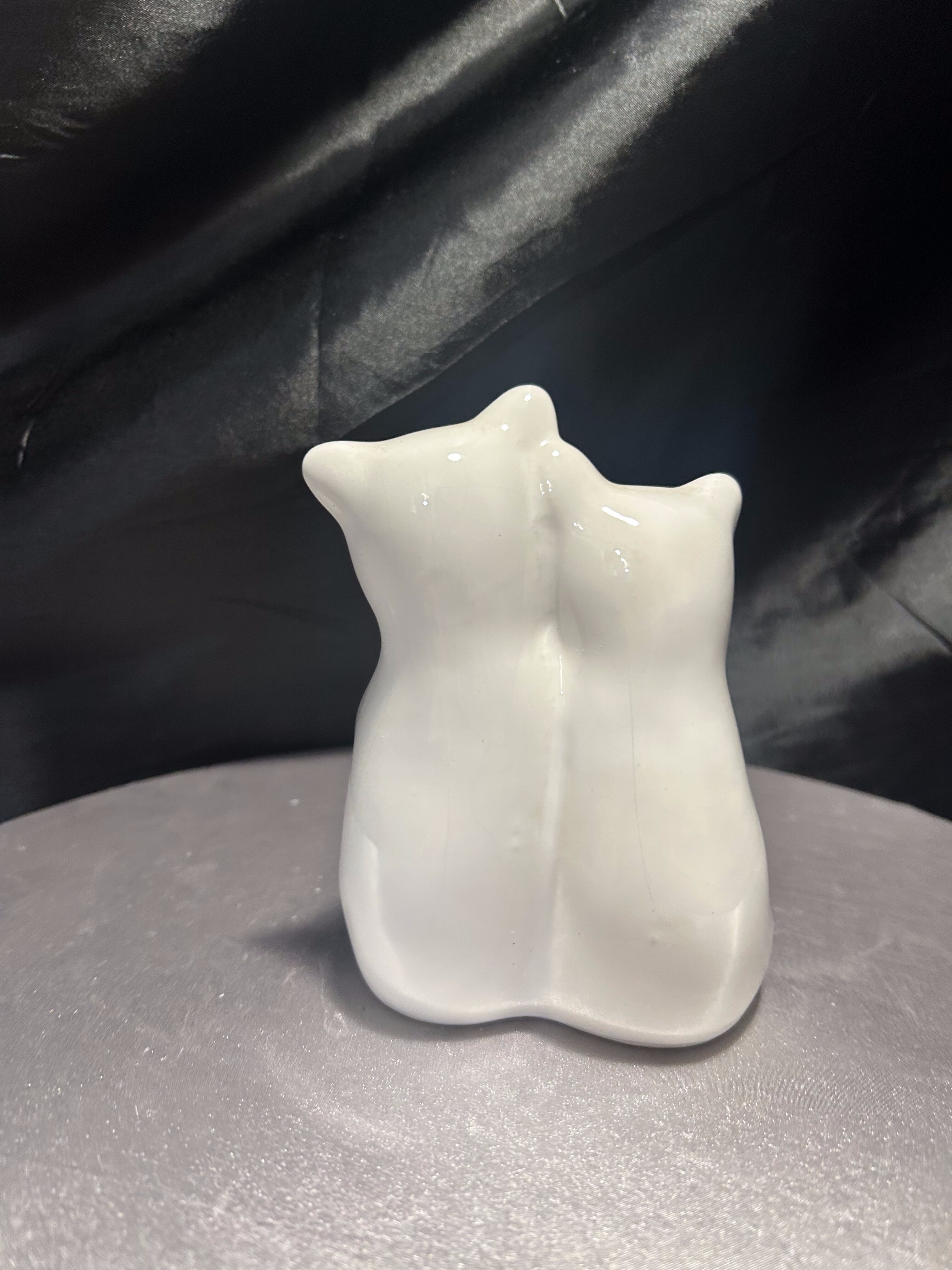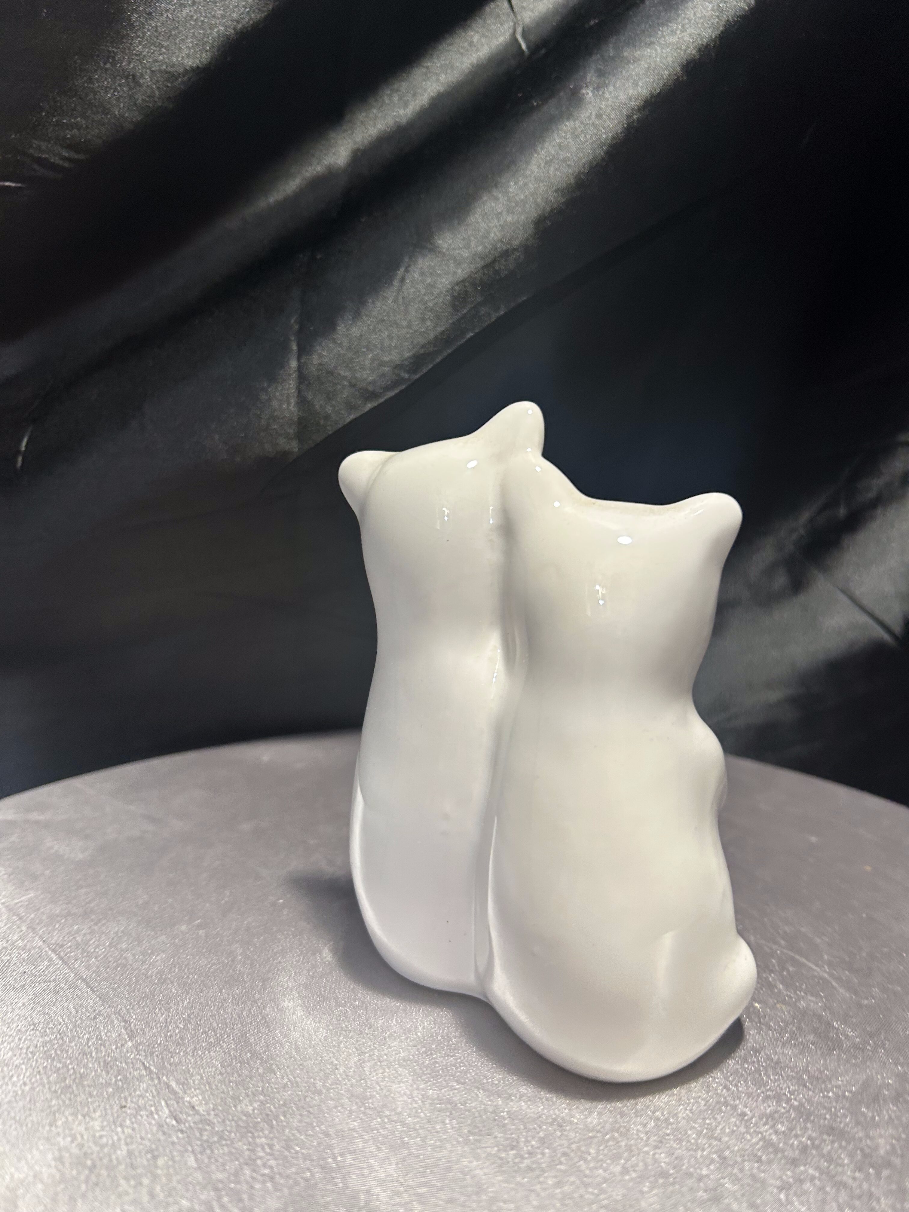 Urocza figurka przedstawiająca parę niedźwiedzi splecionych w przyjaznym geście, wykonana z błyszczącej, białej ceramiki. Minimalistyczna forma i delikatne modelowanie nadają całości subtelnego wdzięku, który doskonale sprawdzi się zarówno jako prezent, jak i dekoracyjny akcent we wnętrzu. Figurka sygnowana ręcznym podpisem HILDE, co podkreśla jej unikatowy charakter i artystyczne pochodzenie.