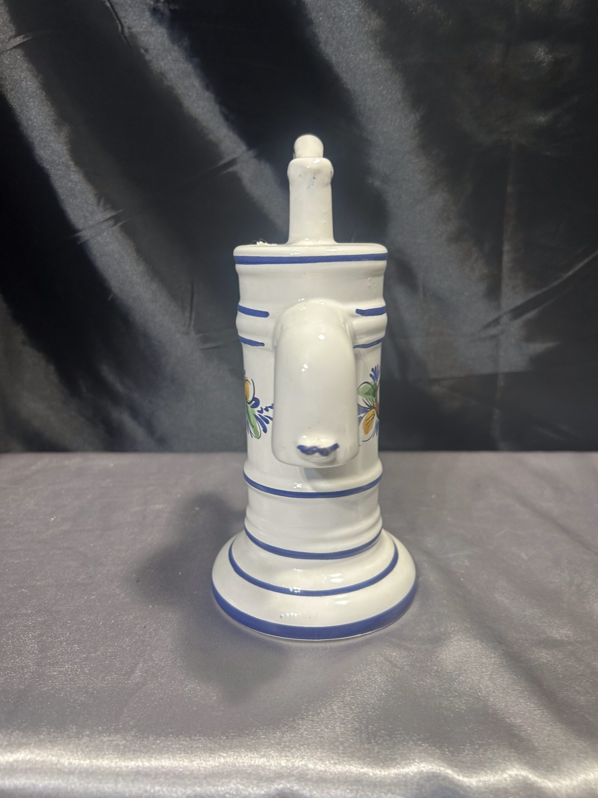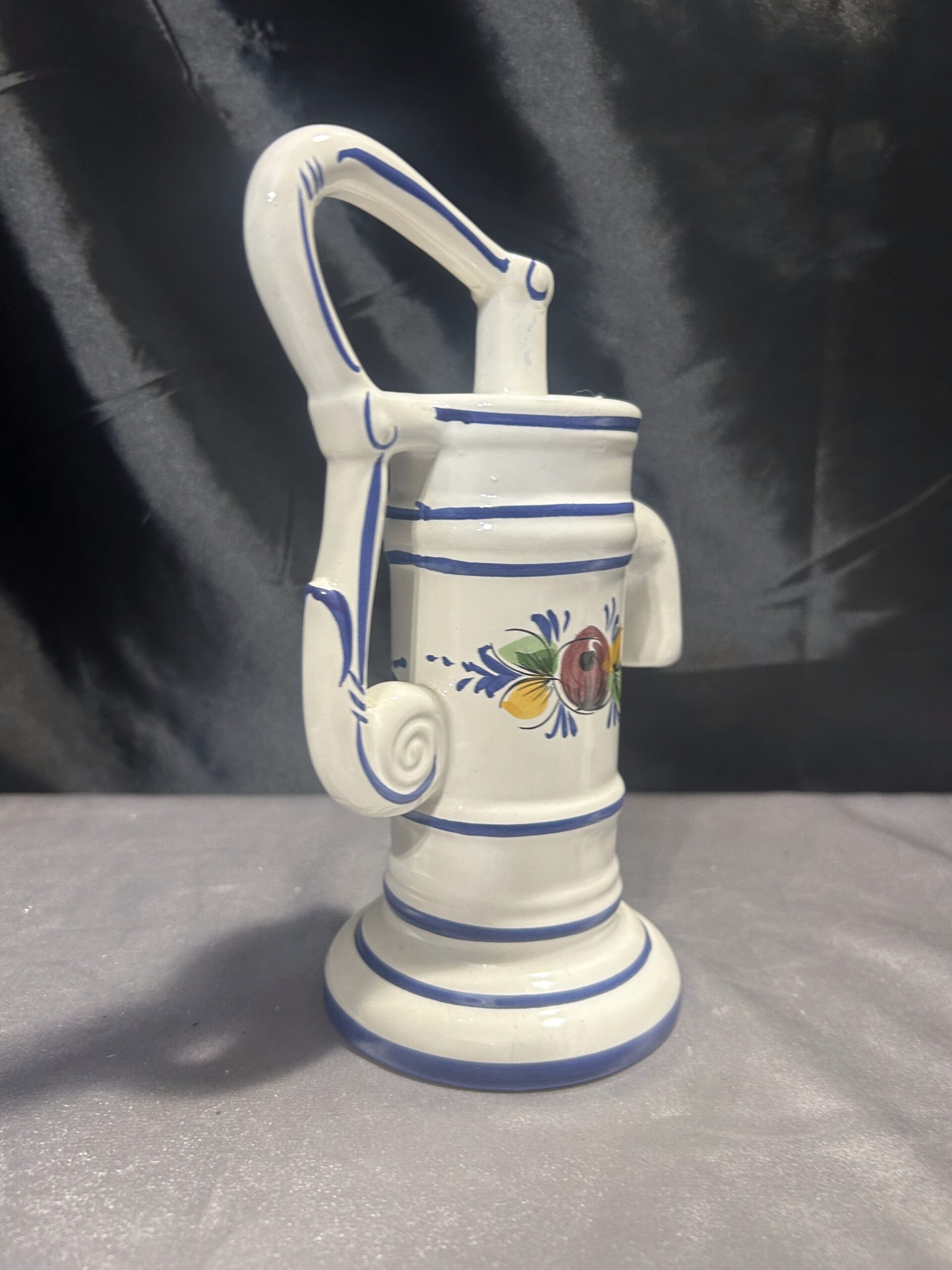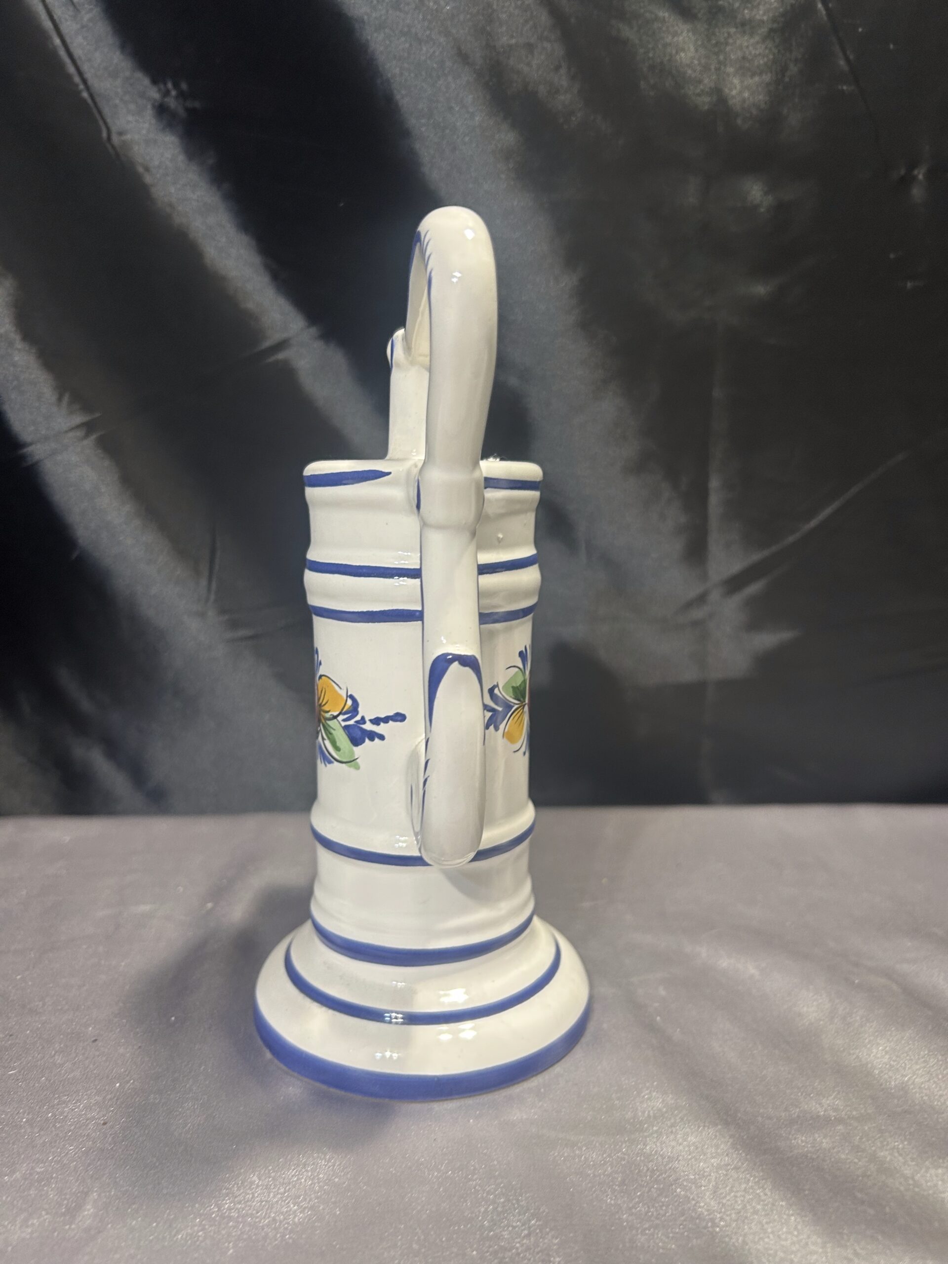 Elegancka ceramiczna figurka hydrantu, ozdobiona tradycyjnym regionalnym wzorem. Klasyczna biało-niebieska kolorystyka z kolorowym bukietem kwiatów nadaje jej wyjątkowego charakteru. Idealna jako ozdoba wnętrza, element kolekcji lub oryginalny prezent.
