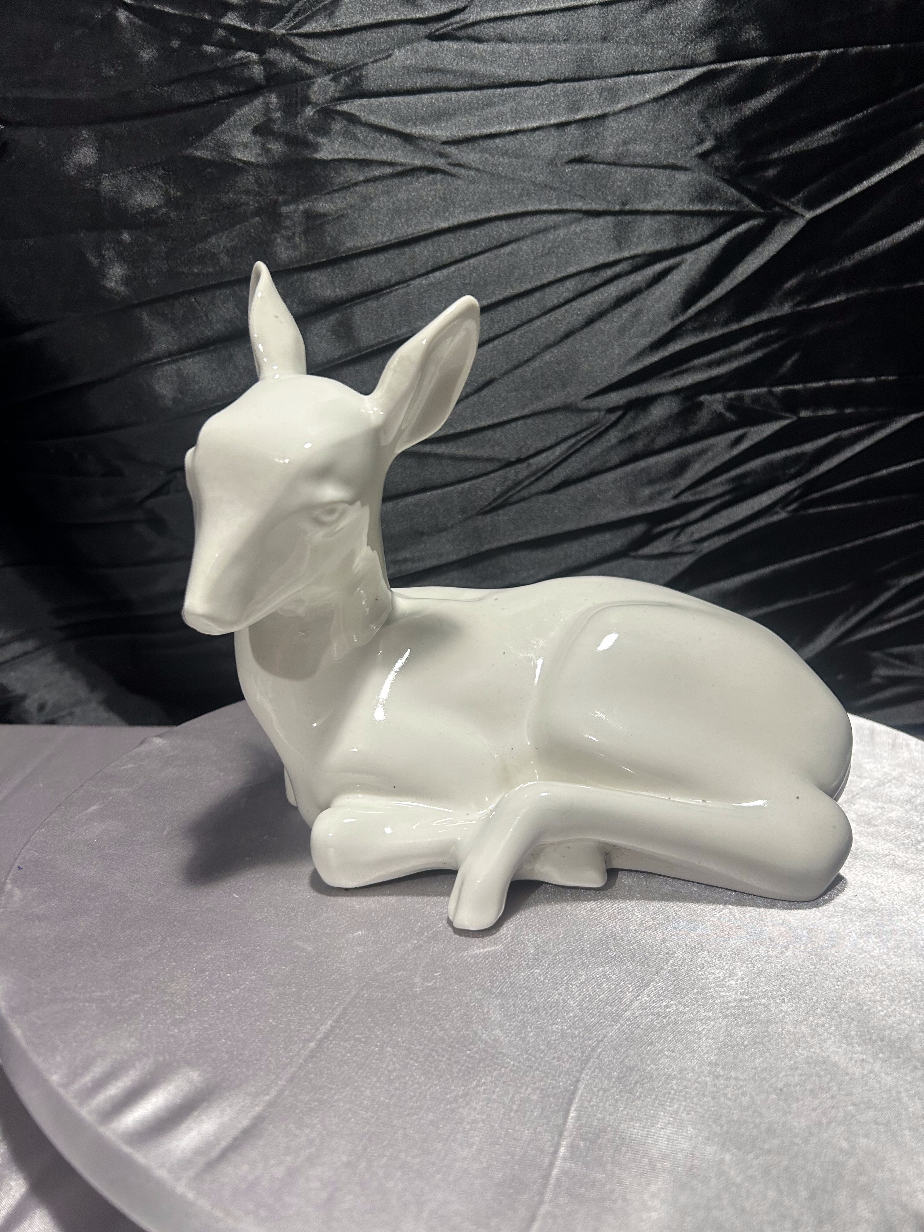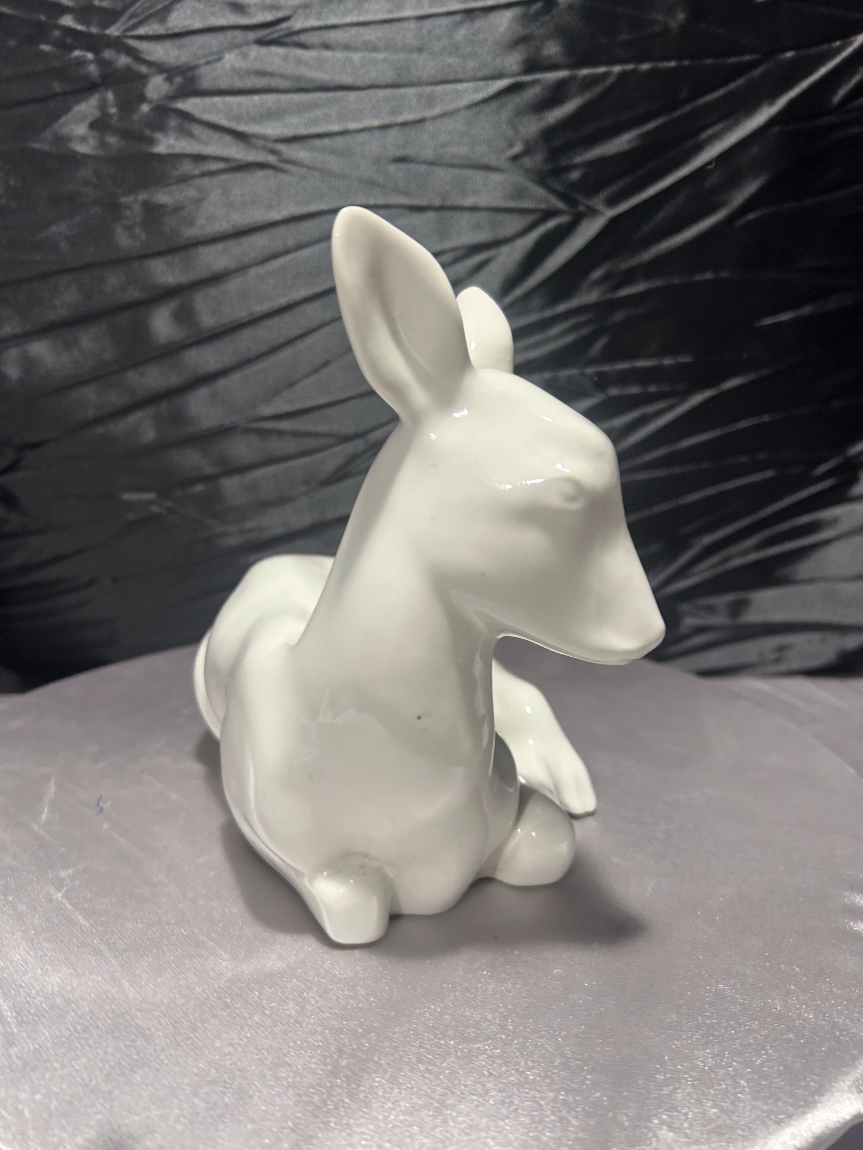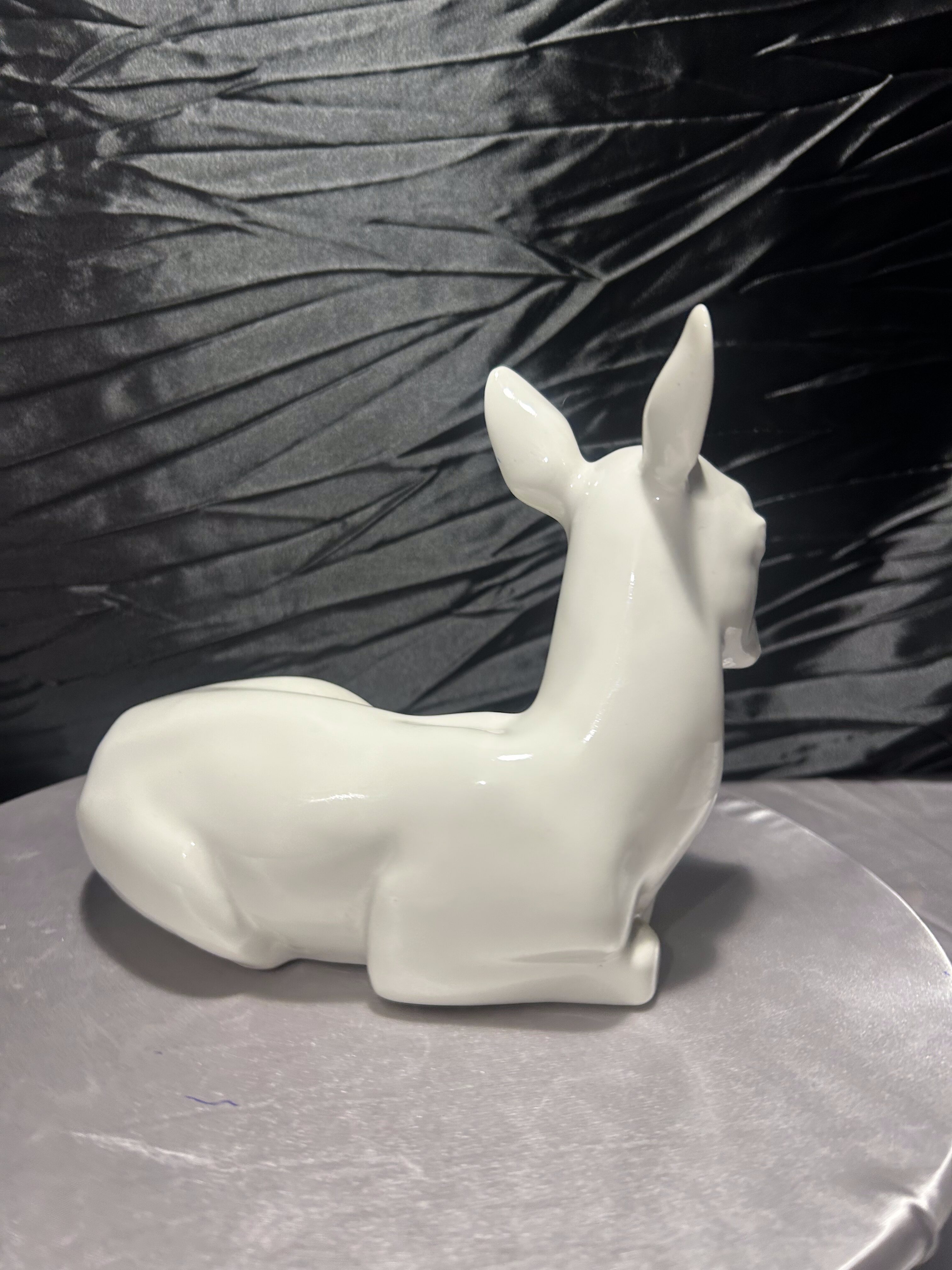 Subtelna i pełna wdzięku ceramiczna figurka sarenki, sygnowana znakiem NTP. Utrzymana w klasycznym, minimalistycznym stylu, emanuje spokojem i delikatnością formy. Biała szkliwiona powierzchnia pięknie odbija światło, podkreślając miękkie linie sylwetki i płynność ruchu.