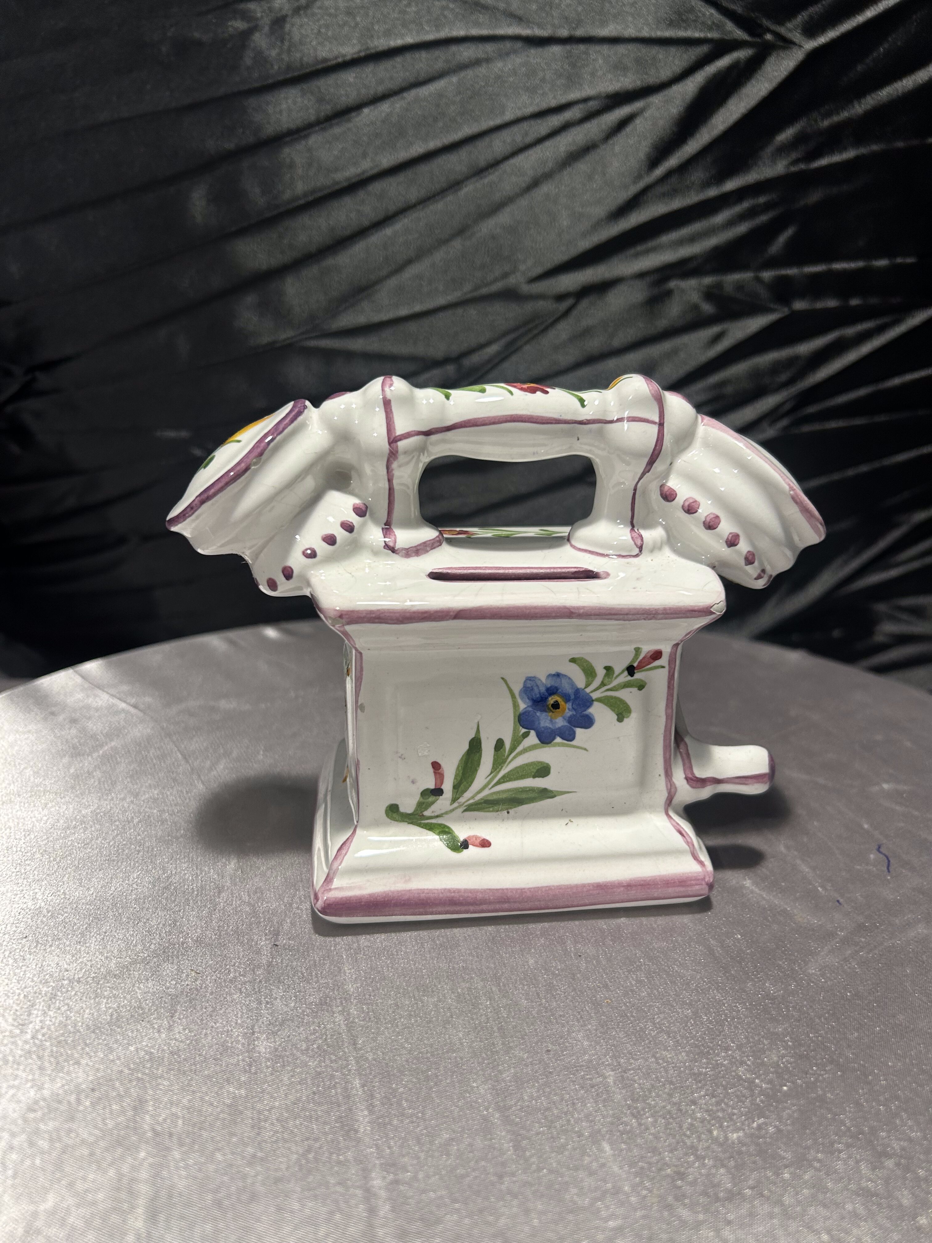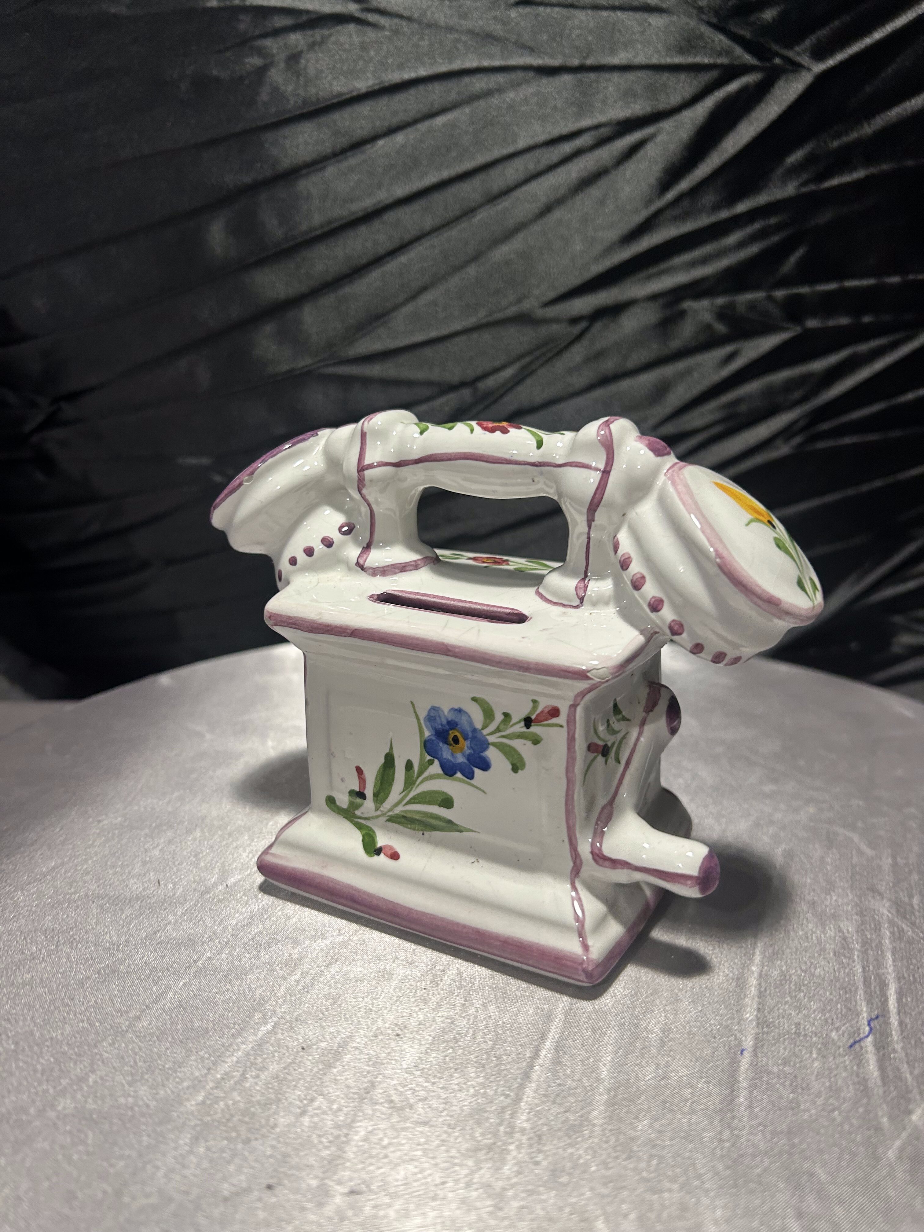 Ta ręcznie malowana ceramiczna skarbonka w formie telefonu to urokliwy przedmiot, który zachwyca zarówno formą, jak i kunsztem wykonania. Doskonała jako prezent lub element kolekcji przedmiotów z duszą.