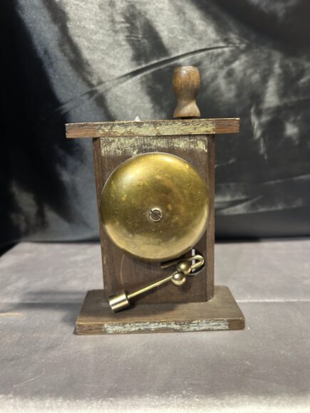 Zabytkowy dzwonek hotelowy – Mosiężny mechanizm – Drewniana podstawa – Styl retro