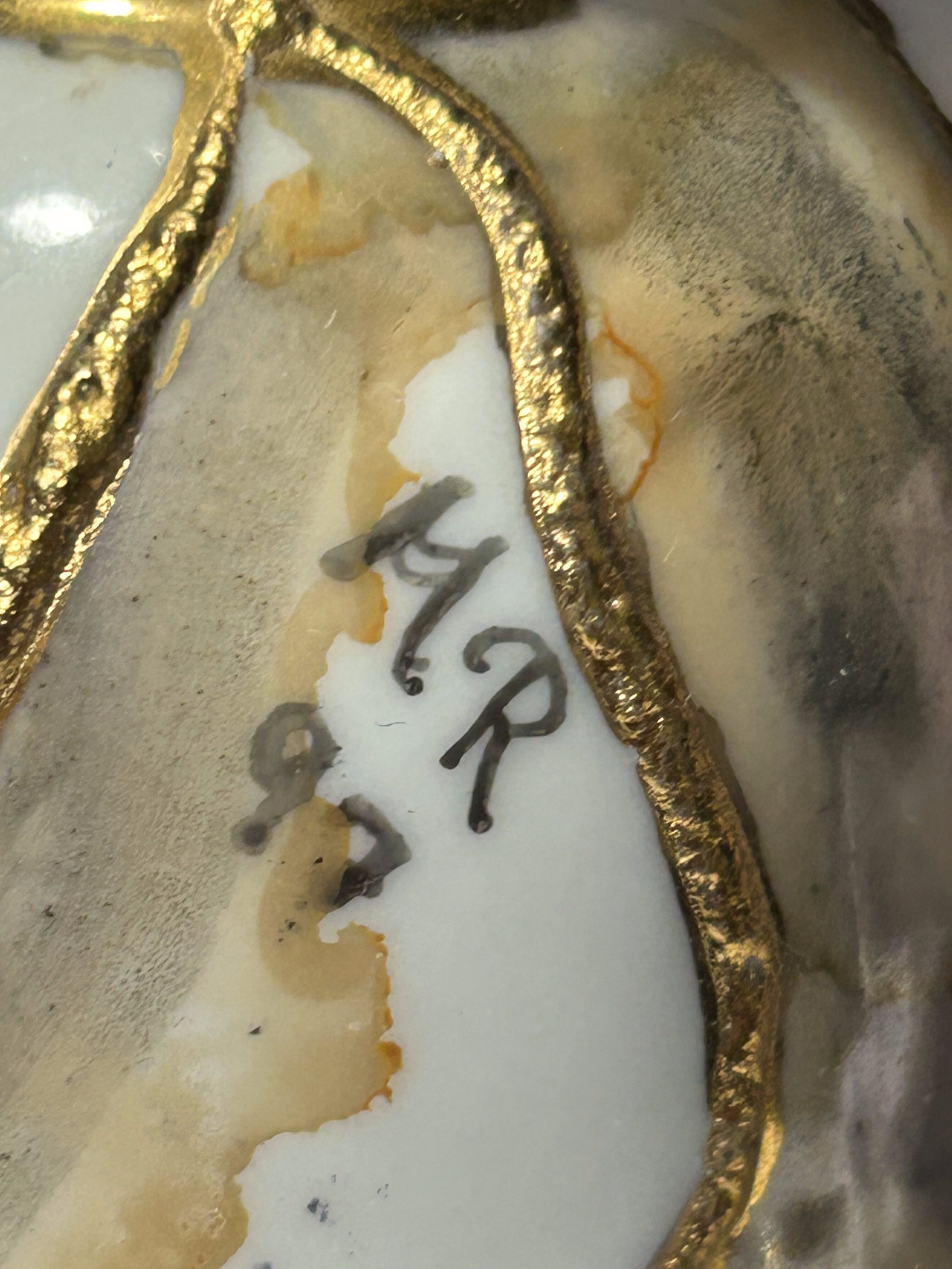 Jeden z dzwonków posiada sygnaturę T.R, która najprawdopodobniej jest podpisem autora lub oznaczeniem pracowni ceramicznej. Drugi egzemplarz nie posiada sygnatury, jednak stylistyka wykonania, technika zdobienia oraz forma wskazują, że oba dzwonki pochodzą z tego samego warsztatu lub zostały wykonane przez tego samego twórcę.