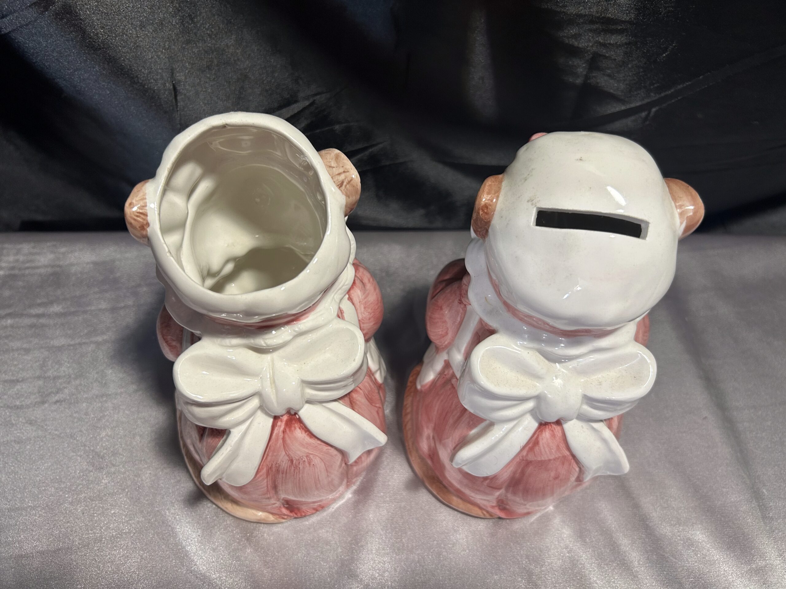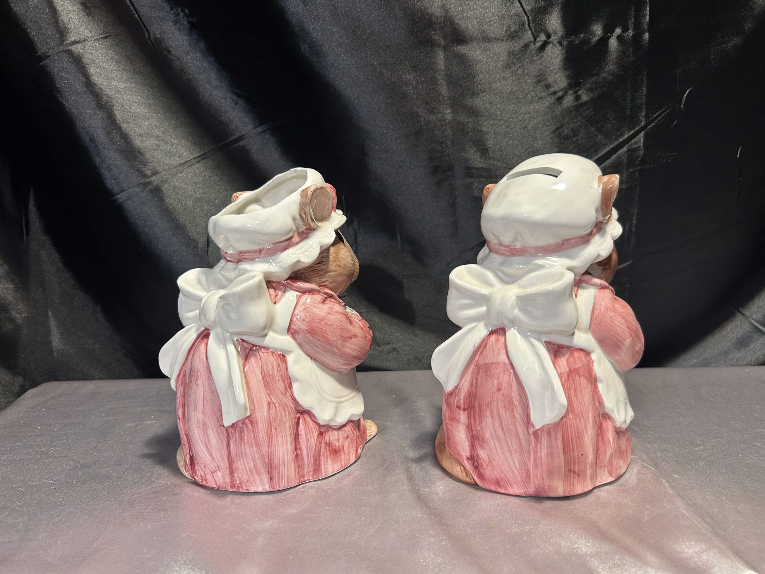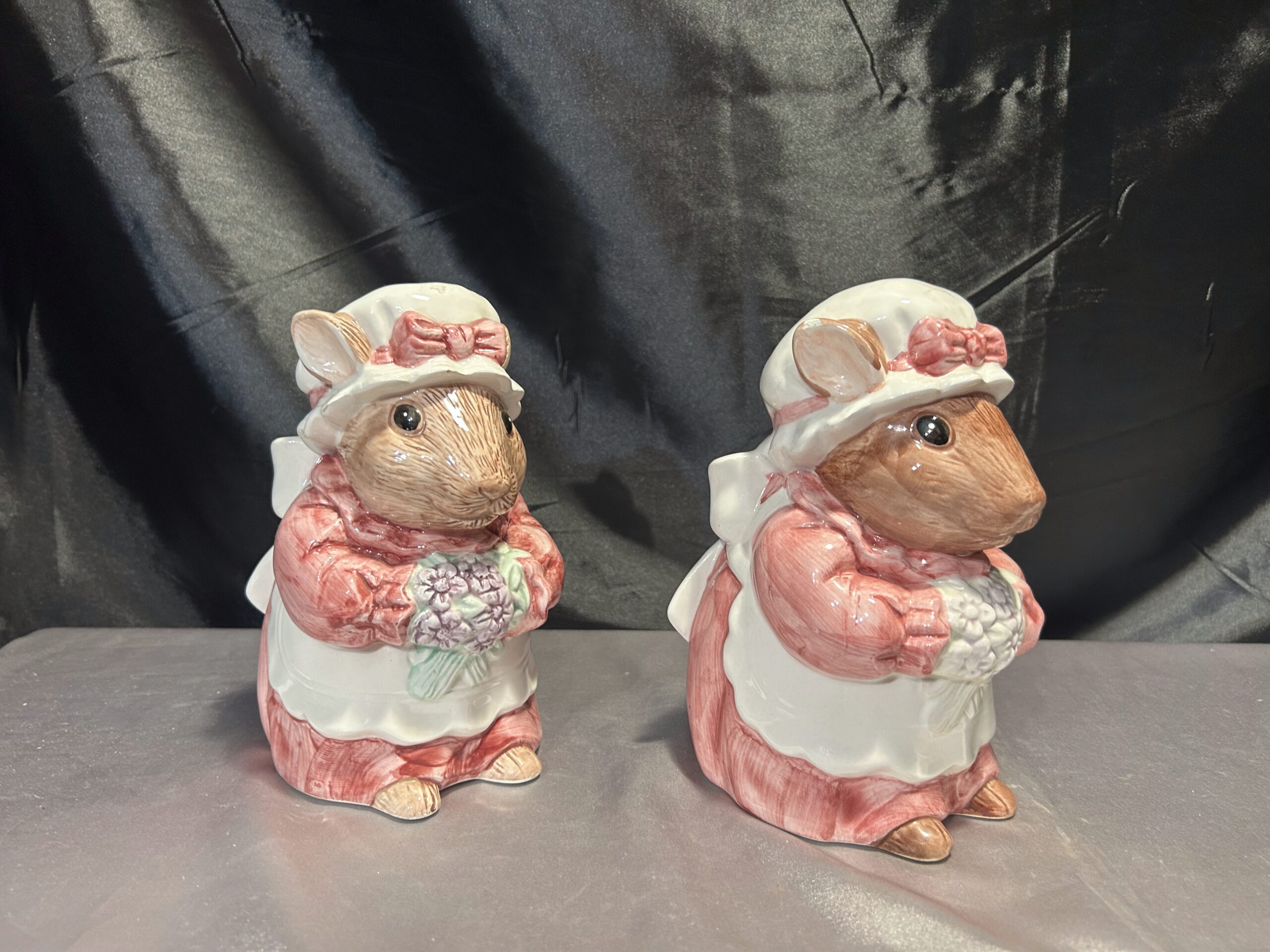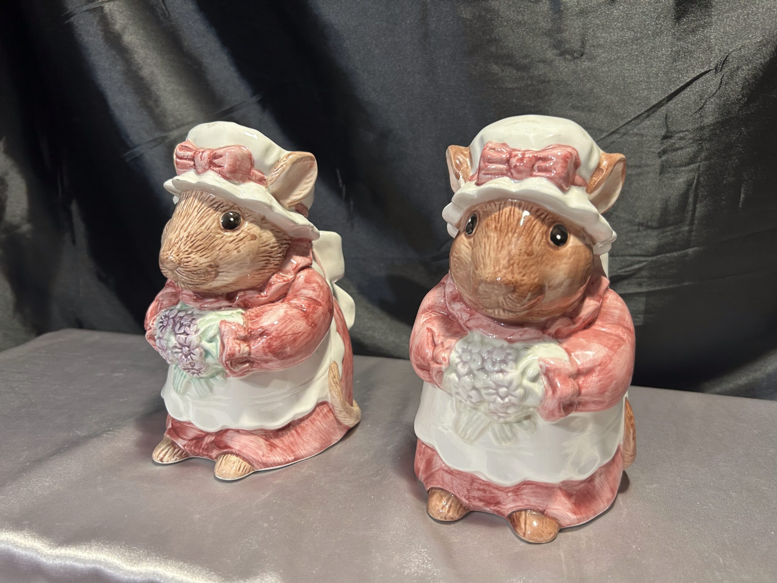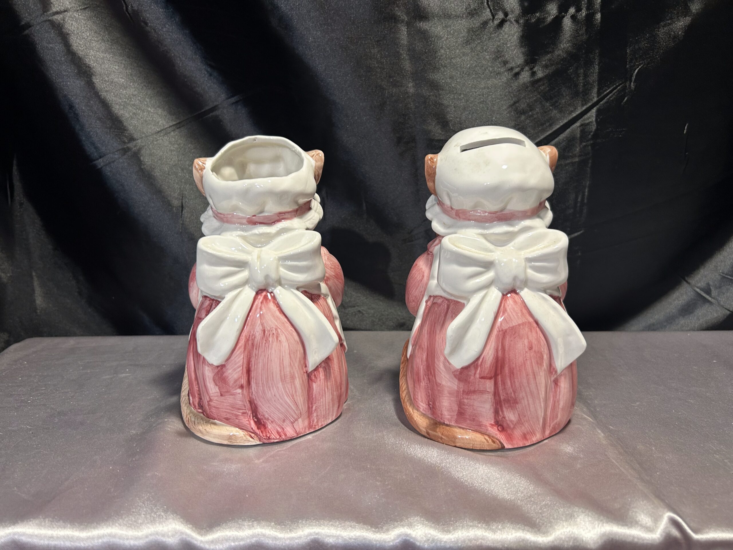 Ceramiczne Myszy – Skarbonka i Flakon na Kwiaty w Różowych Sukienkach