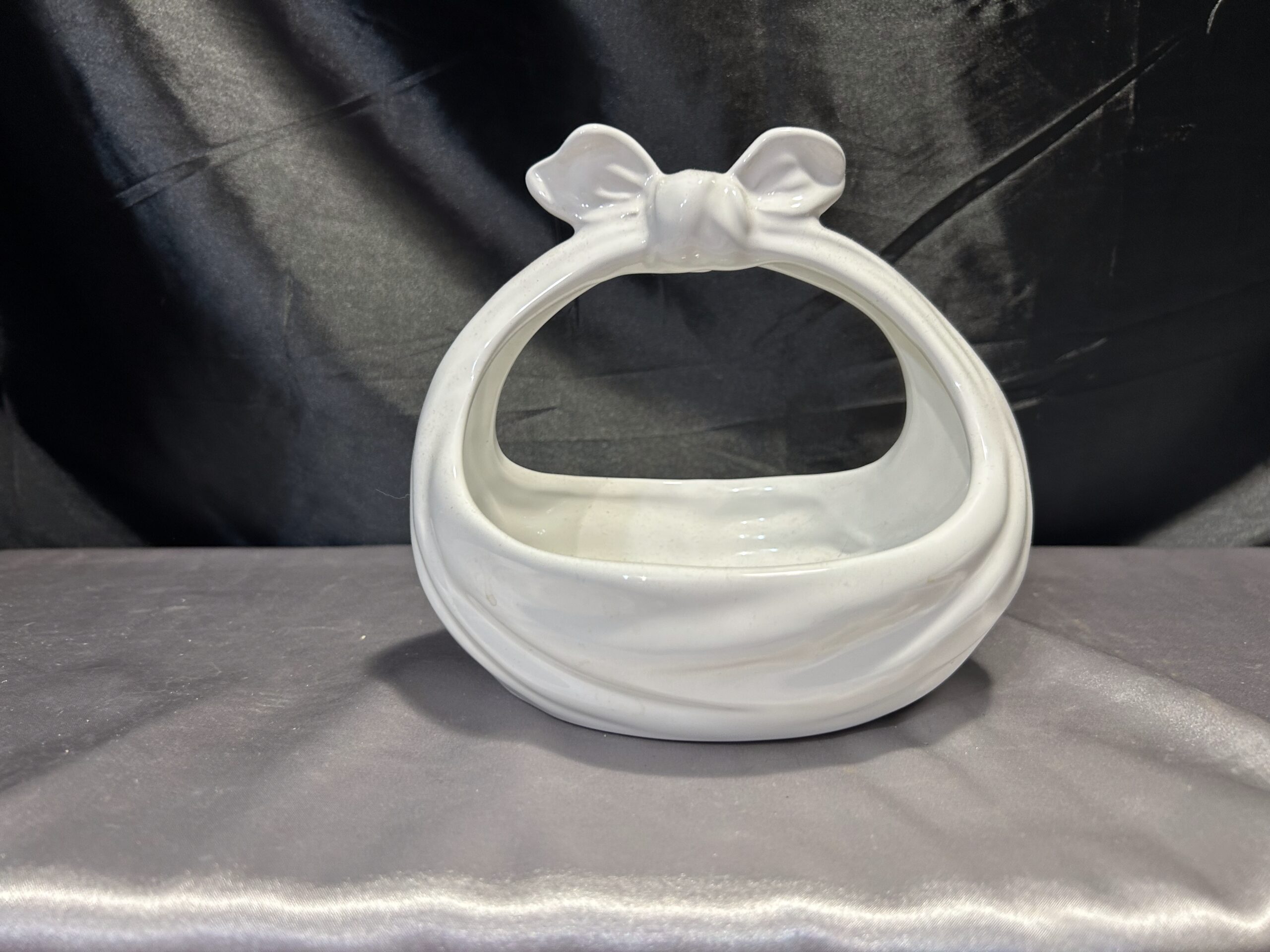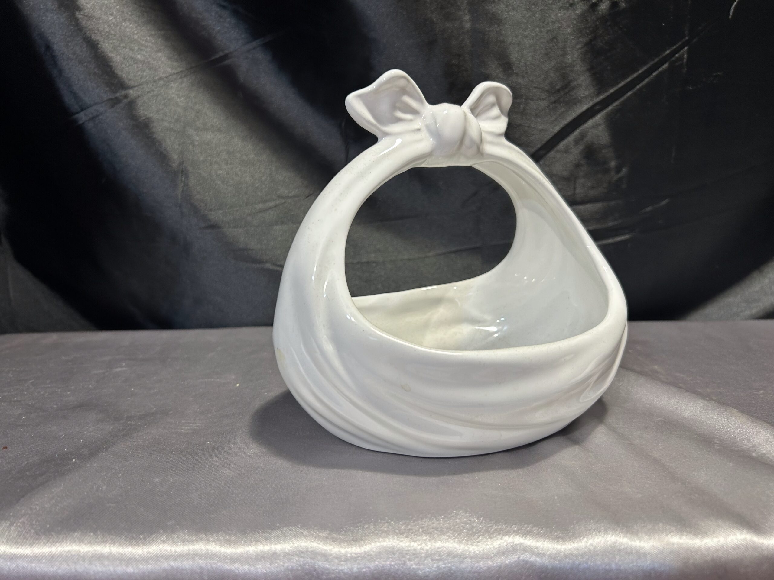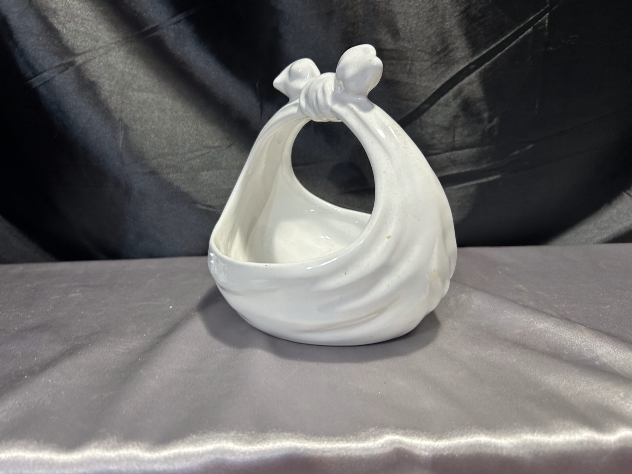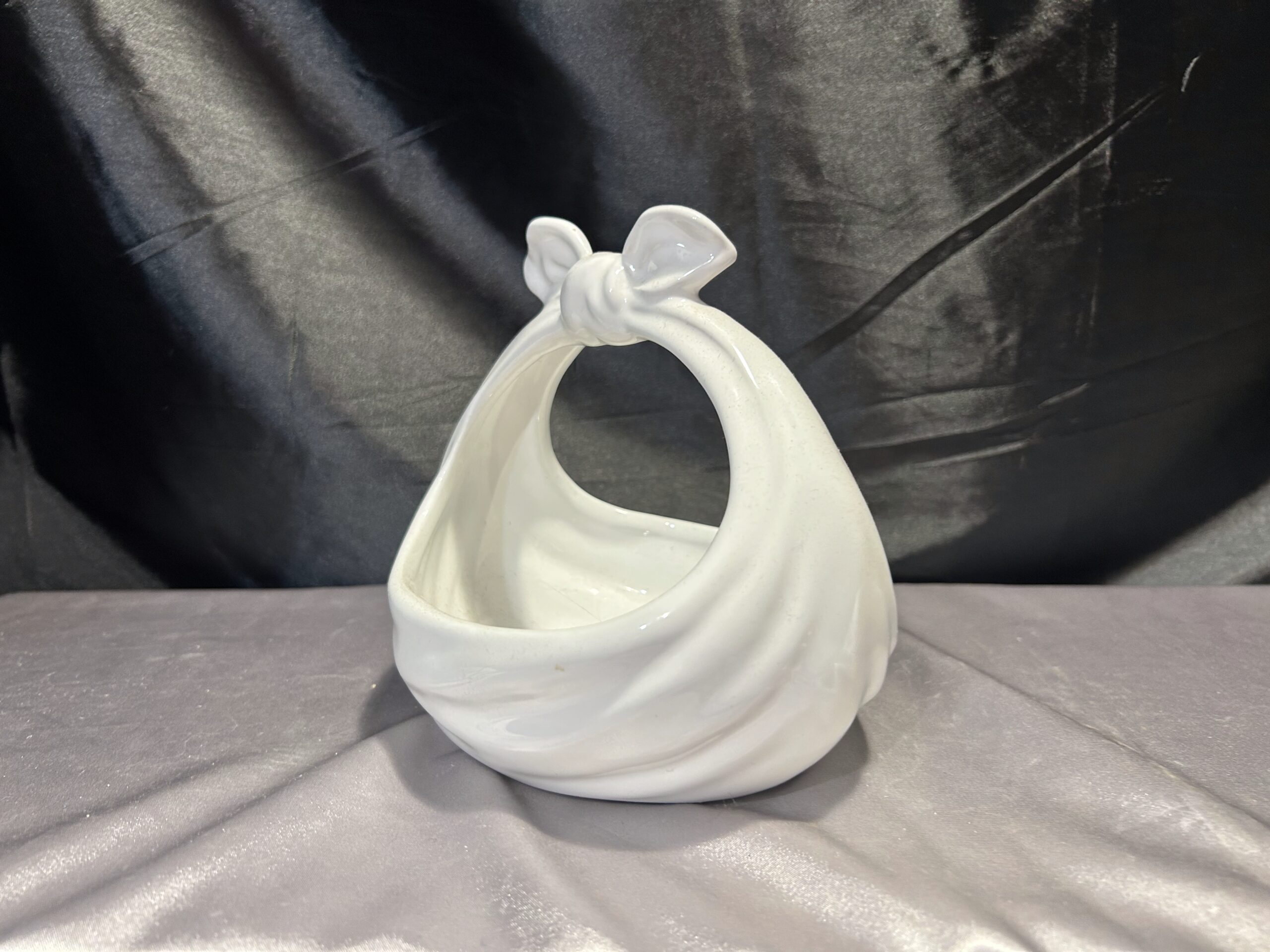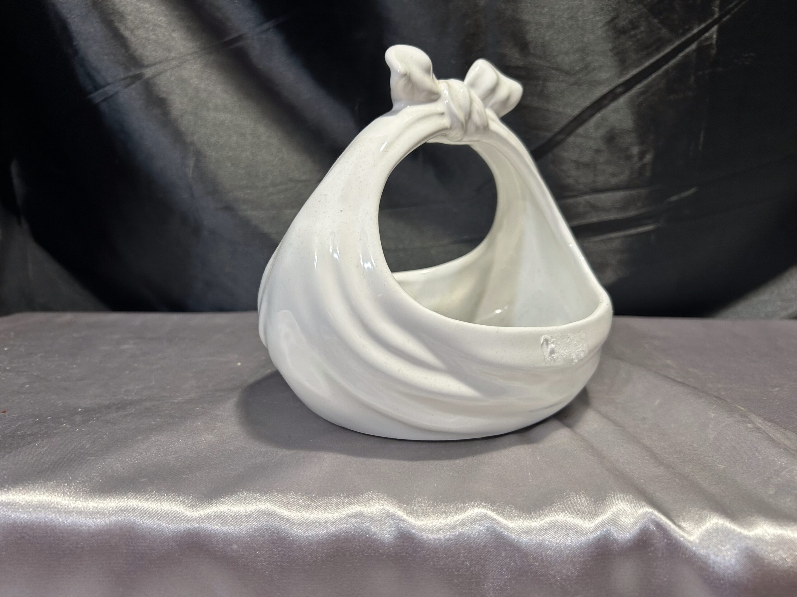 Wyjątkowy ceramiczny koszyczek, który swoim kształtem przypomina związaną chustę. Doskonale łączy funkcjonalność z dekoracyjnym urokiem, sprawdzając się jako misa, patera lub kwietnik. Idealny element ozdobny do wnętrz w różnorodnych stylach.
