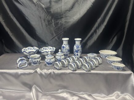 Ceramiczny zestaw 25-elementowy – elegancka biel z niebieskimi wzorami
