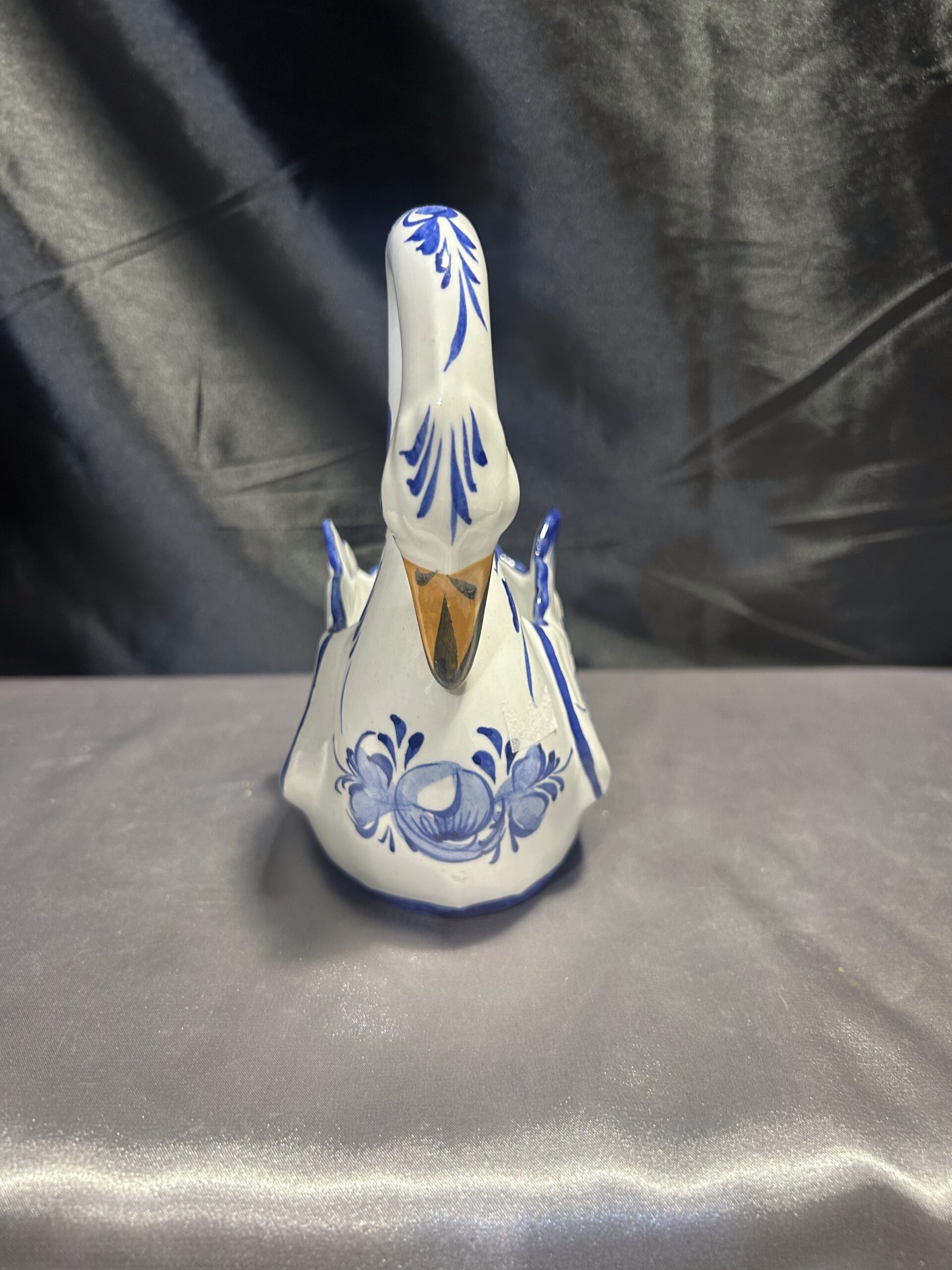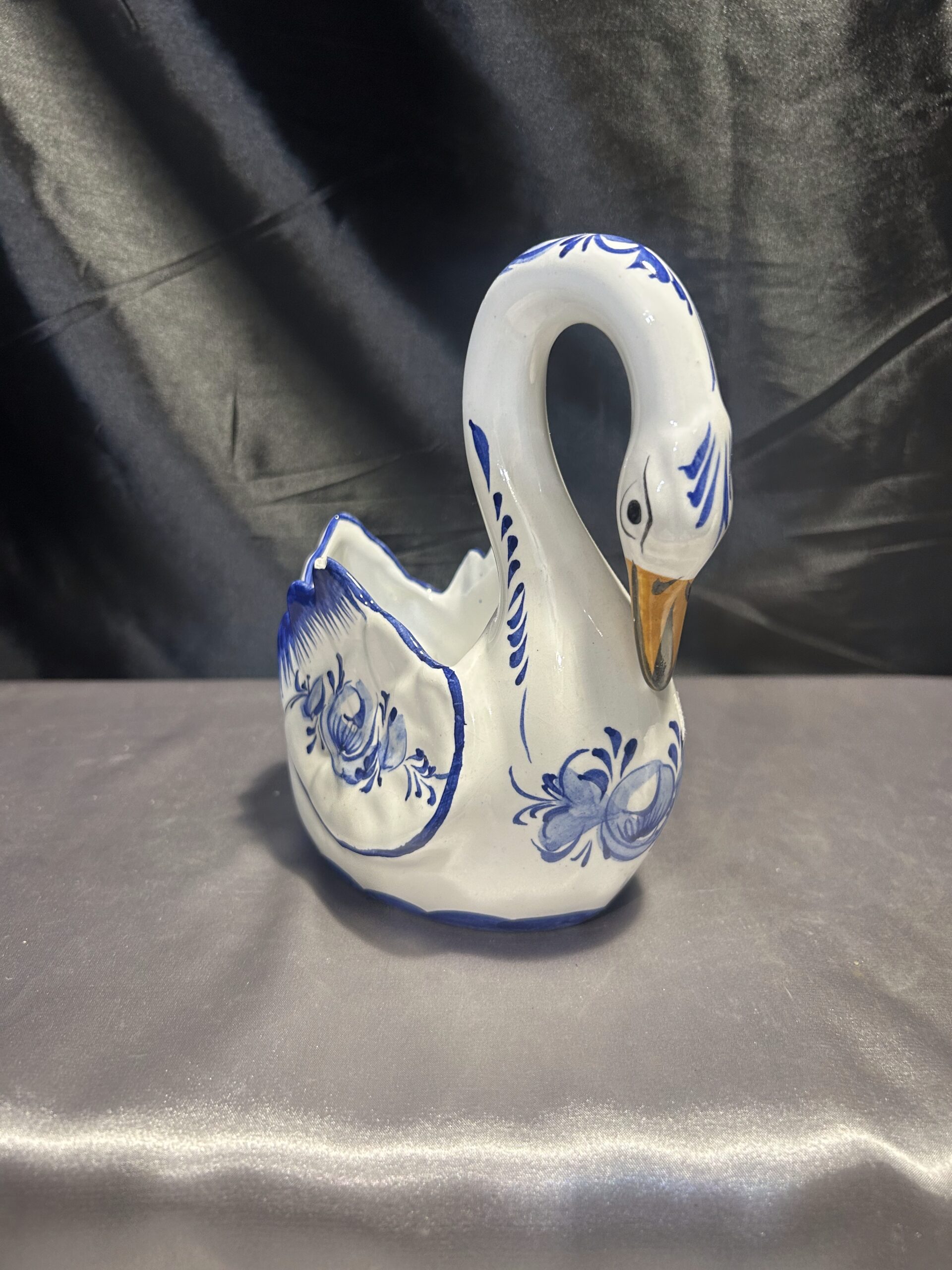Ten ceramiczny łabędź to unikatowy element dekoracyjny, który wprowadzi do wnętrza nutę elegancji i historii. Ręczne malowanie podkreśla jego artystyczny charakter, a portugalskie pochodzenie czyni go jeszcze bardziej wyjątkowym. Choć posiada drobny uszczerbek, wciąż zachowuje swój urok i funkcjonalność. Doskonały wybór dla miłośników ceramiki i niepowtarzalnych ozdób.