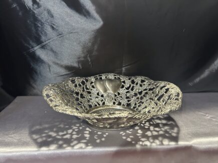 Piękna Misa Ażurowa – Zdobiona Motywem Serc, Winogron i Wiśni, Mosiądz Pobiał