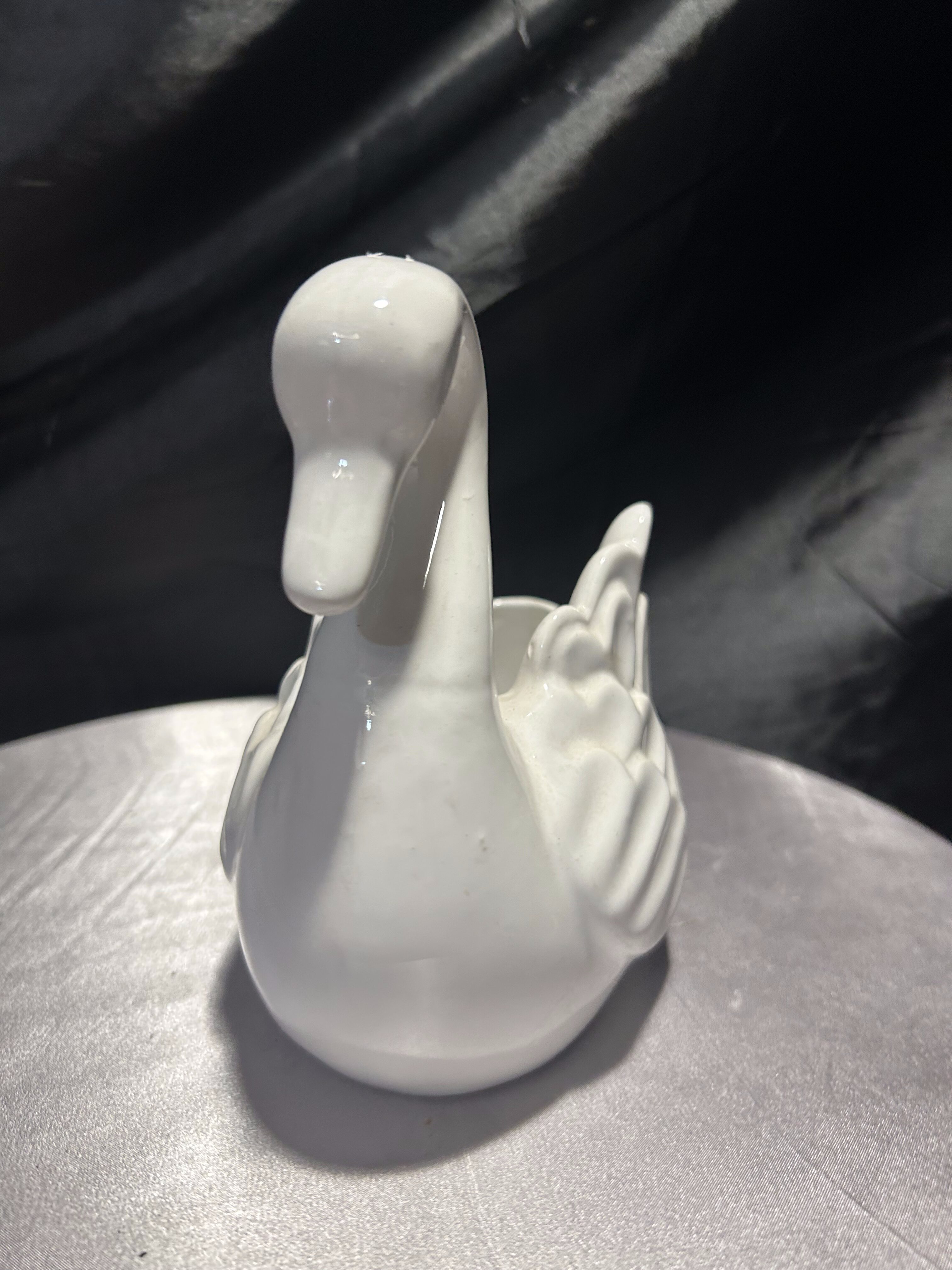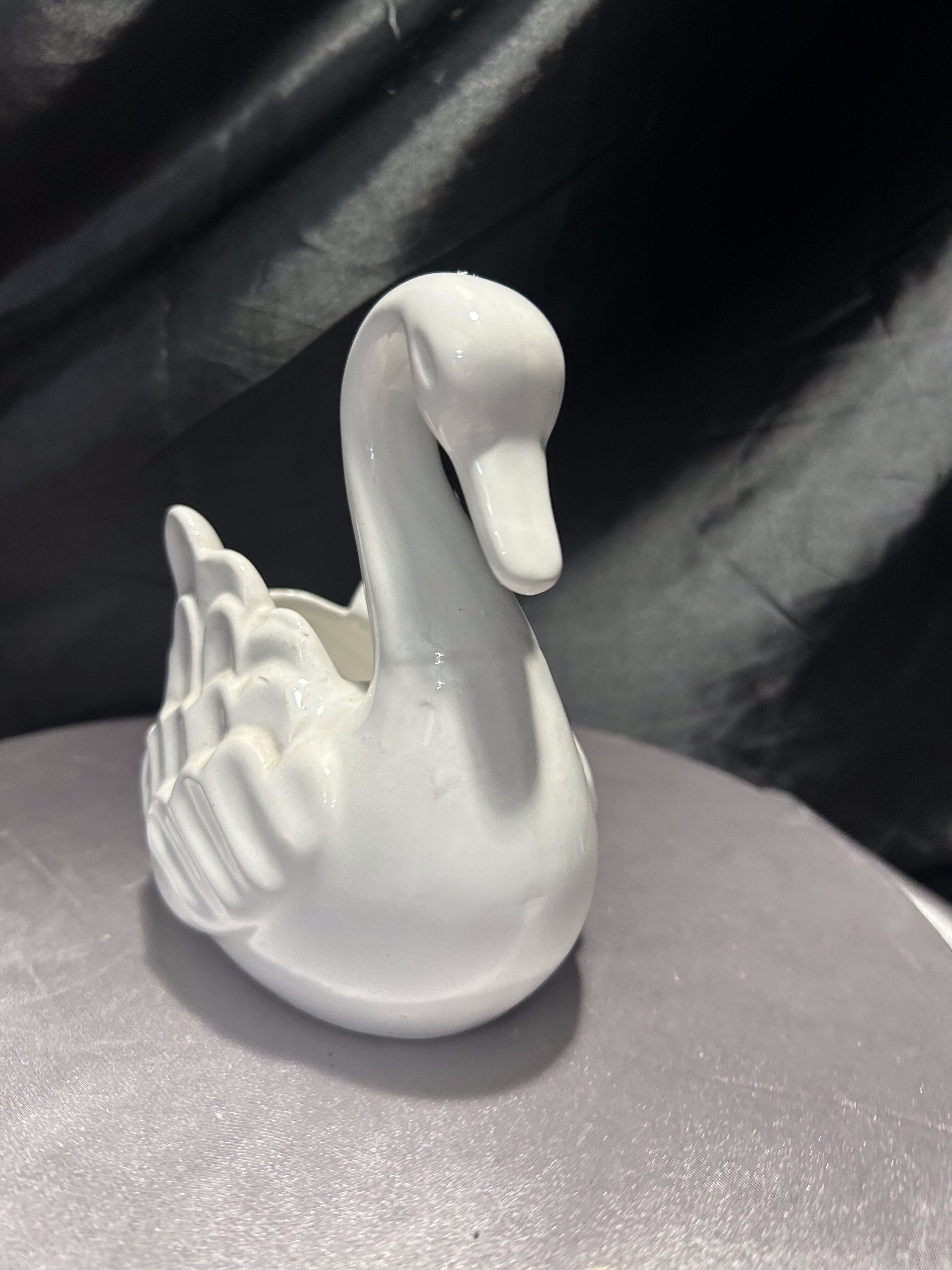 – Dekoracyjna figurka łabędzia z białej ceramiki