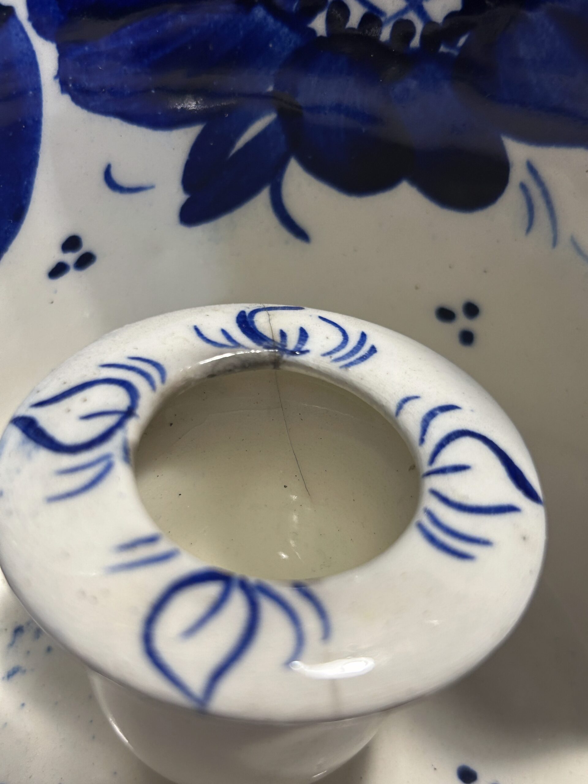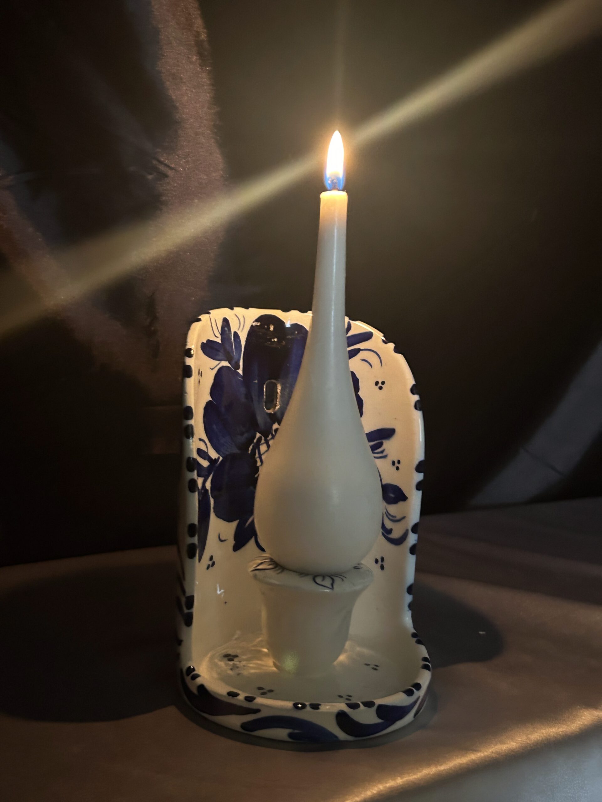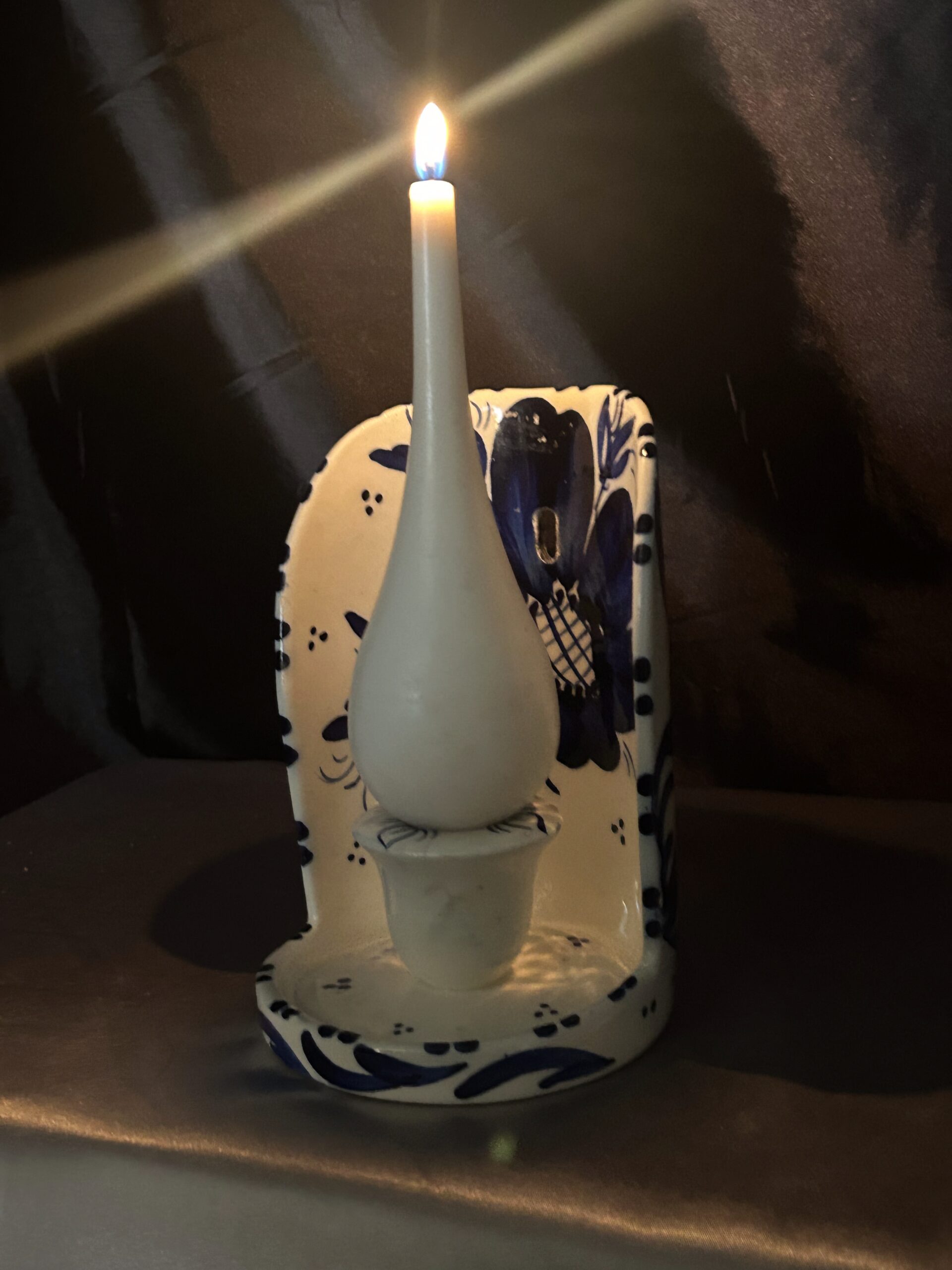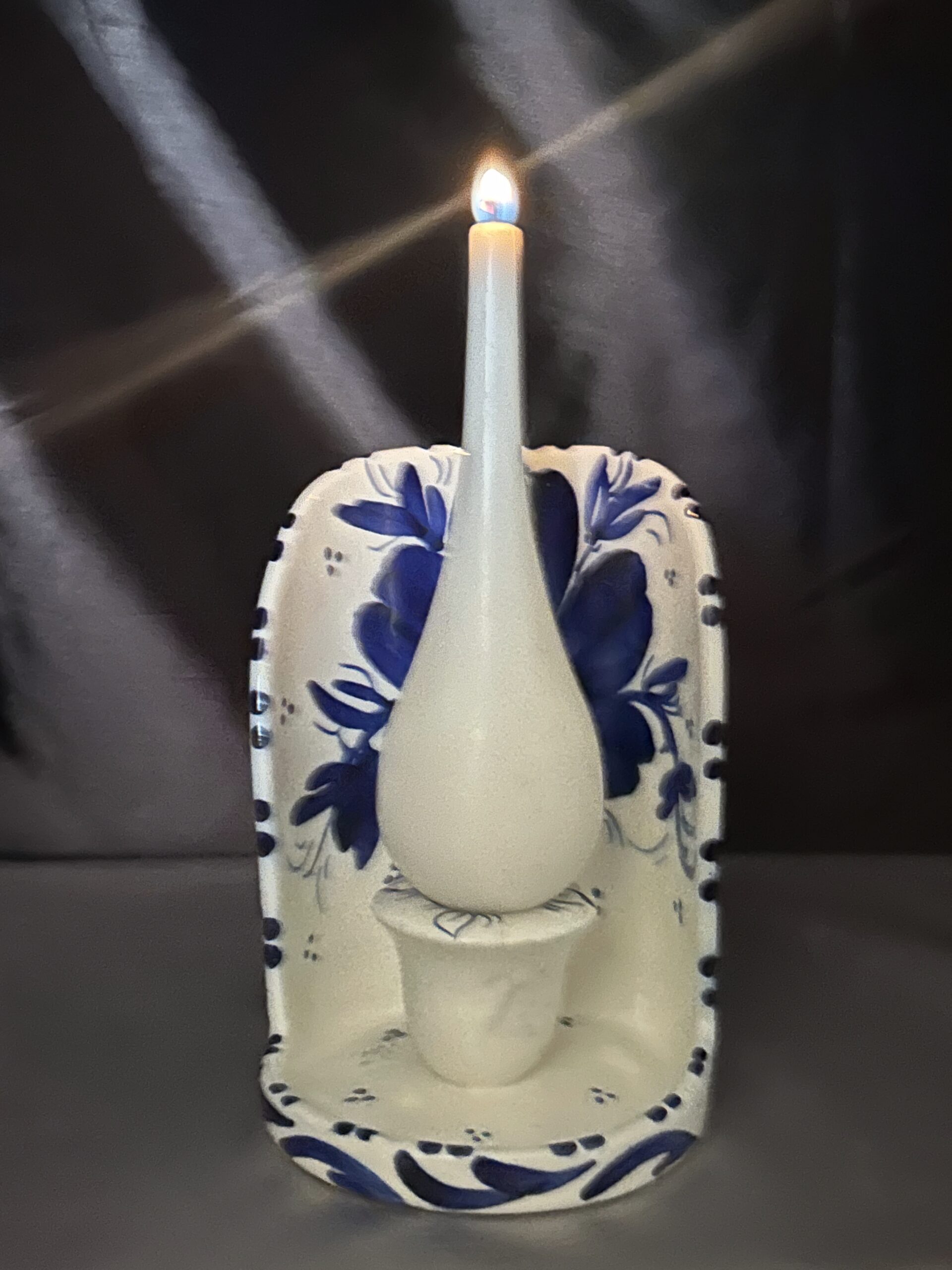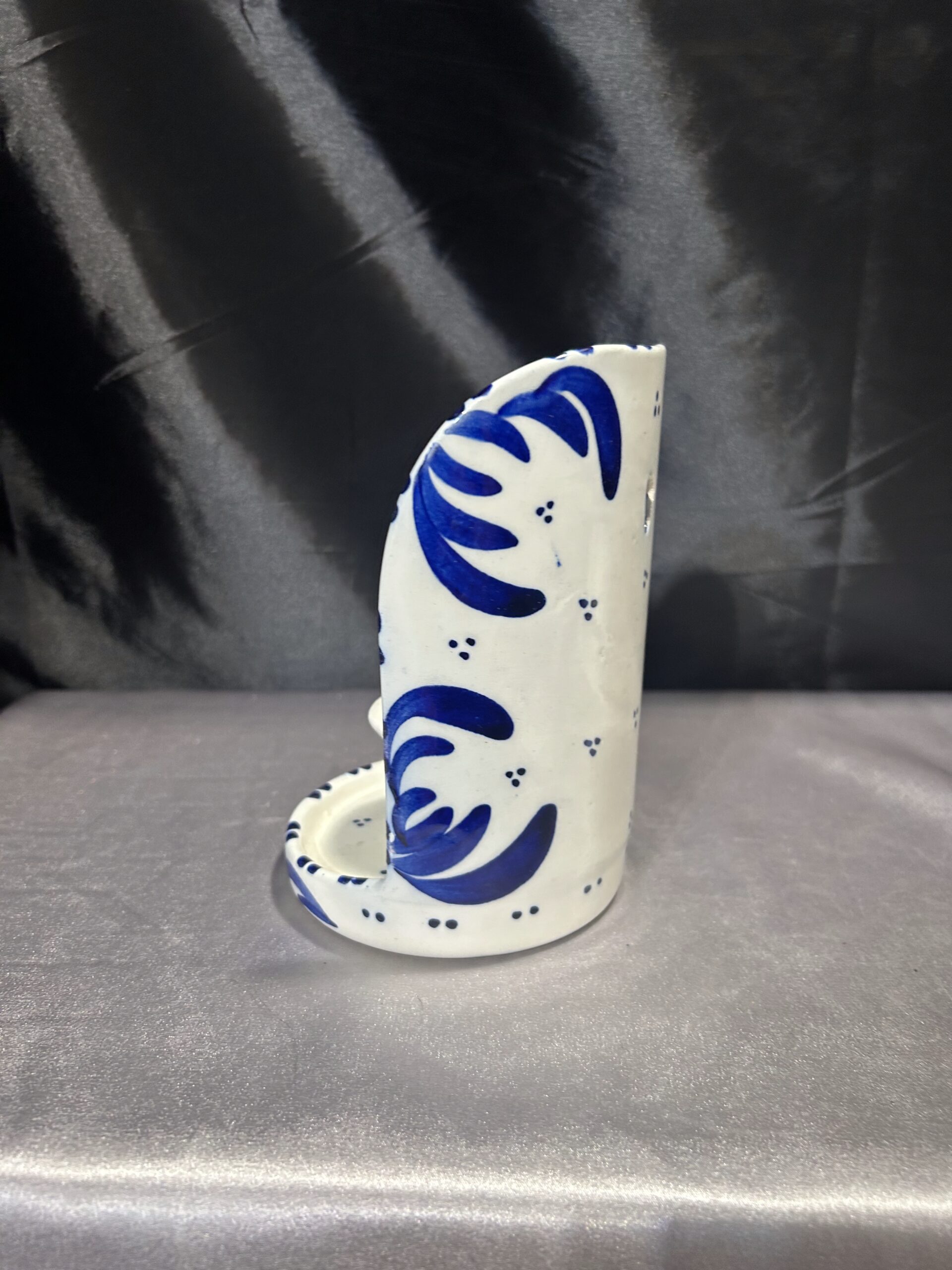 - Ceramiczny świecznik ścienny – biało-niebieski wzór z kwiatami