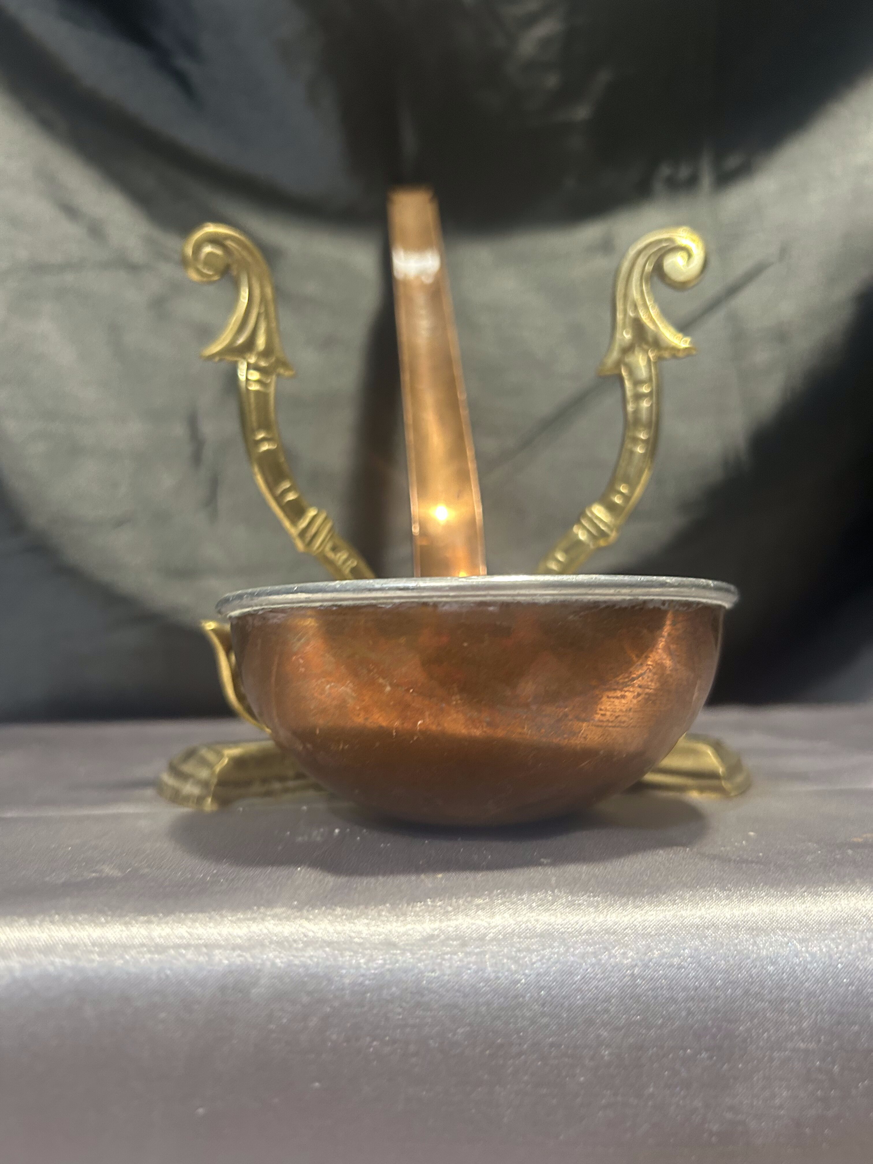 Ta sygnowana miedziana chochla to wyjątkowy przedmiot łączący w sobie estetykę i funkcjonalność. Jej klasyczna forma i ręczne wykonanie sprawiają, że może pełnić zarówno rolę praktycznego narzędzia, jak i dekoracyjnej ozdoby kuchennej. Doskonała do ekspozycji lub użytkowania przy wyjątkowych okazjach.